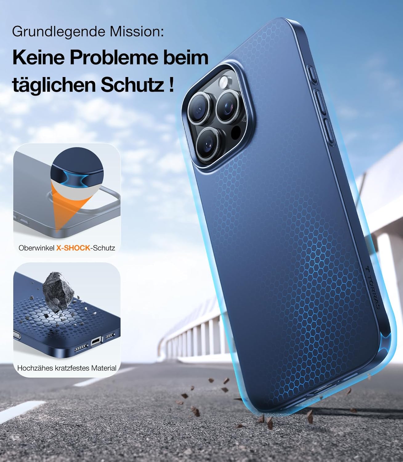 • Тънък, но предлагащ силна защита: Този калъф за iPhone 17 Pro е изработен от високоякостен материал Bayer, който е 1,5 пъти по-здрав от обикновения поликарбонат (PC). Независимо дали е в ежедневието или по време на неочаквани инциденти, този калъф надеждно защитава телефона ви. Защитата на камерата с височина 1,5 мм и защитата на ръбовете с височина 1,2 мм предпазват телефона ви от драскотини и удари.