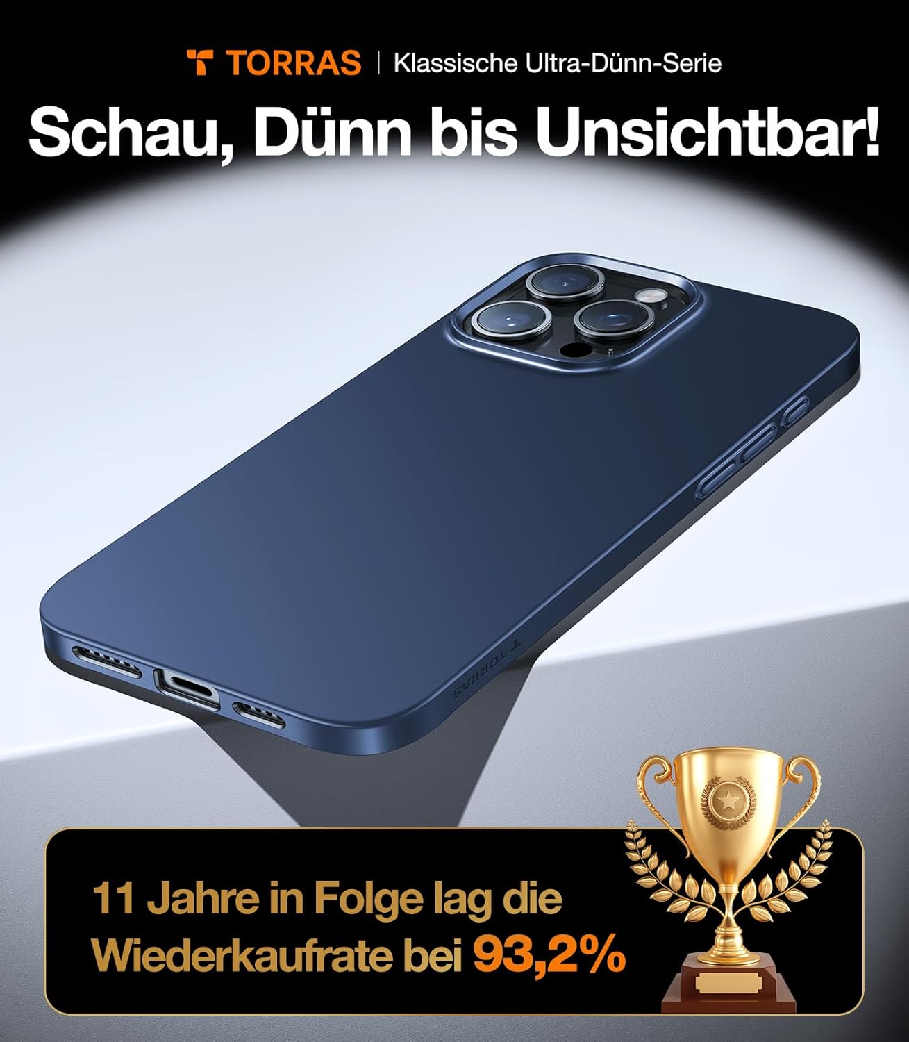 • Най-тънкият калъф в индустрията, перфектна комбинация от класика и иновация: В продължение на много години серията TORRAS Ultra-Thin се радва на голяма популярност с над 8,7 милиона клиенти и процент на повторно закупуване от 93,2%. Ултратънкият калъф за iPhone 17 Pro все още се отличава с популярния тънък дизайн и е съвместим с функцията MagSafe. Това е ултратънък калъф с магнитна функционалност, който предлага максимален комфорт.