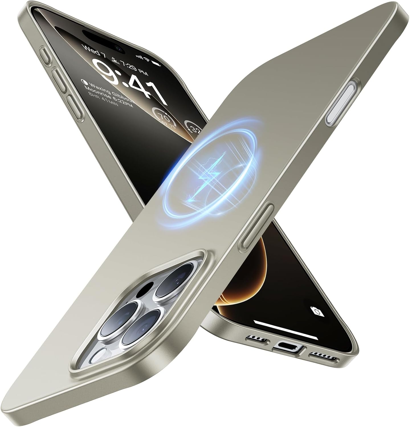 Ултратънък калъф за телефон TORRAS за iPhone 16 Pro, за MagSafe, № 1 с магнитна сила, удароустойчив, устойчив на надраскване, кадифен захват, тънък, със стойка за камера, сив