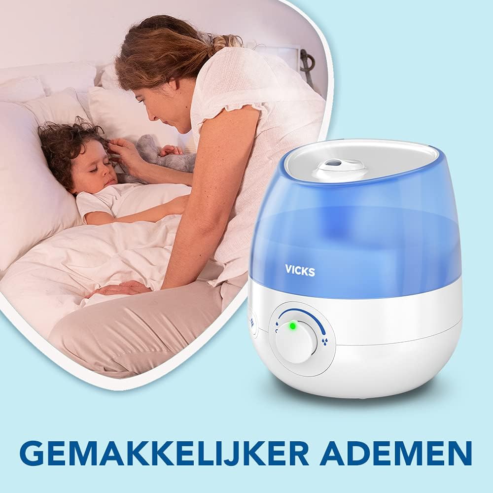 Ултразвуков овлажнител Vicks Mini Cool Mist (компактен, тих, за по-добър сън, кашлица и настинка, комфорт, етерични масла, влажност, помещения до 15 м2) VUL525