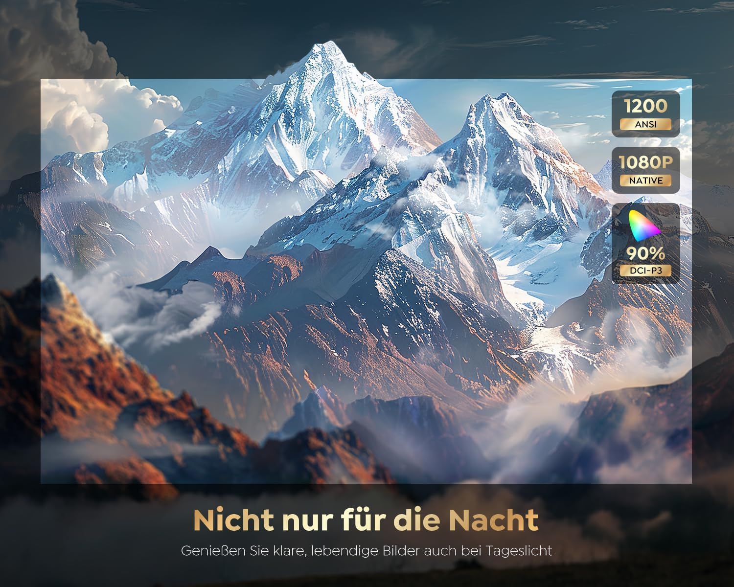 • 【Поддръжка на 4K проектор с 1200 ANSI】В сравнение с обикновените 1080P проектори на пазара, таванният монтаж на проектор K12 има 50% по-висока яркост, изображението остава ясно и остро, така че можете да се насладите на зашеметяващо визуално изживяване по всяко време. Няма нужда умишлено да създавате тъмна среда. Прецизните стъклени лещи гарантират, че изображението е равномерно разпределено, богато на слоеве и цветовете са по-наситени. Идеален за домашно кино/на открито. (Забележка: видеоклиповете с етикет 4K се показват с оригинална резолюция 1080P, която често се нарича „поддържана 4K“)