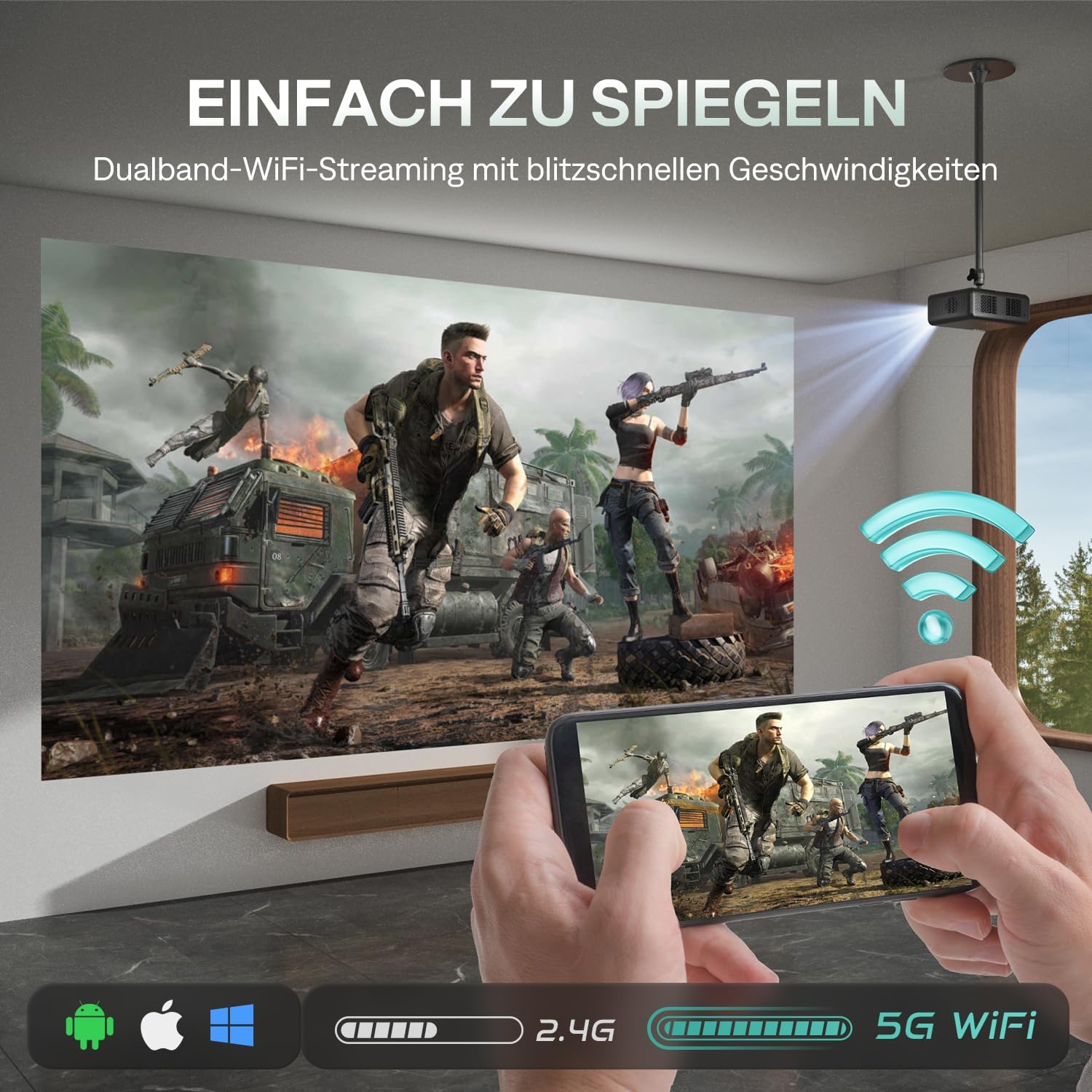 • Bluetooth remote control with one-click: Enjoy full control with the dual mode remote control of the Aurzen EAZZE D1 Pro, which supports both Bluetooth and infrared functions. Whether you use it remotely with infrared or remotely with Bluetooth, you can control your projector from any position - no direct aiming required. Whether you use it as a movie projector in the bedroom, a smart projector in the living room, or as a portable projector for an outdoor movie night, just sit back and enjoy hassle-free one-click access to your favorite content.