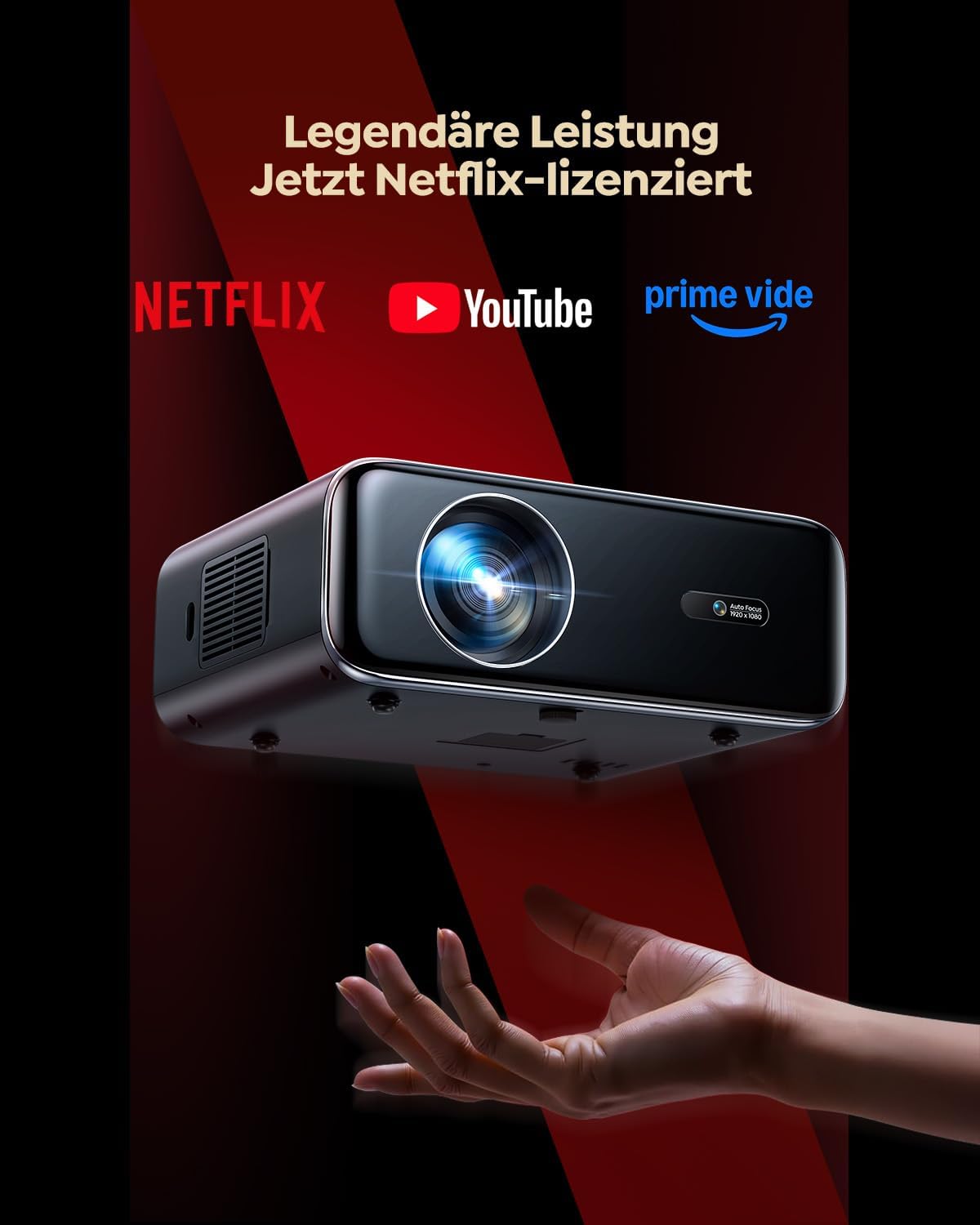 Умен проектор с Netflix, Dolby Audio, WiMiUS 1000 ANSI автофокус/6D корекция на трапецовидно изкривяване LED проектор с поддръжка на 4K домашно кино, WiFi6 Bluetooth Full HD 1080P проектор за външен дневен проектор за...