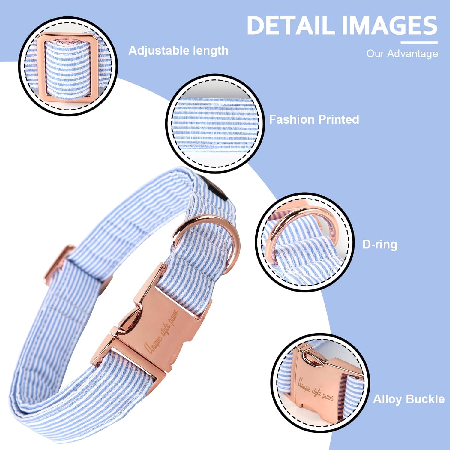 Unique style paws е марка, която хората обичат, с различни цветове и издръжливи катарами. Нашийникът е изработен от множество слоеве дизайнерска копринена материя. Ние използваме всички наши продукти върху собствените си домашни любимци, членове на семейството, и гарантираме за качеството им. Защото домашните любимци са членове на нашето семейство и ние трябва да се грижим за безопасността на пухкавите бебета. Въпреки че моите ръчно изработени продукти са здрави, нито един нашийник или каишка не е неразрушим. За безопасността на вашия домашен любимец препоръчваме редовно да проверявате нашийника си за признаци на износване. Не ги препоръчвайте за кученца, които дърпат много или преследват, при интензивна ежедневна употреба.