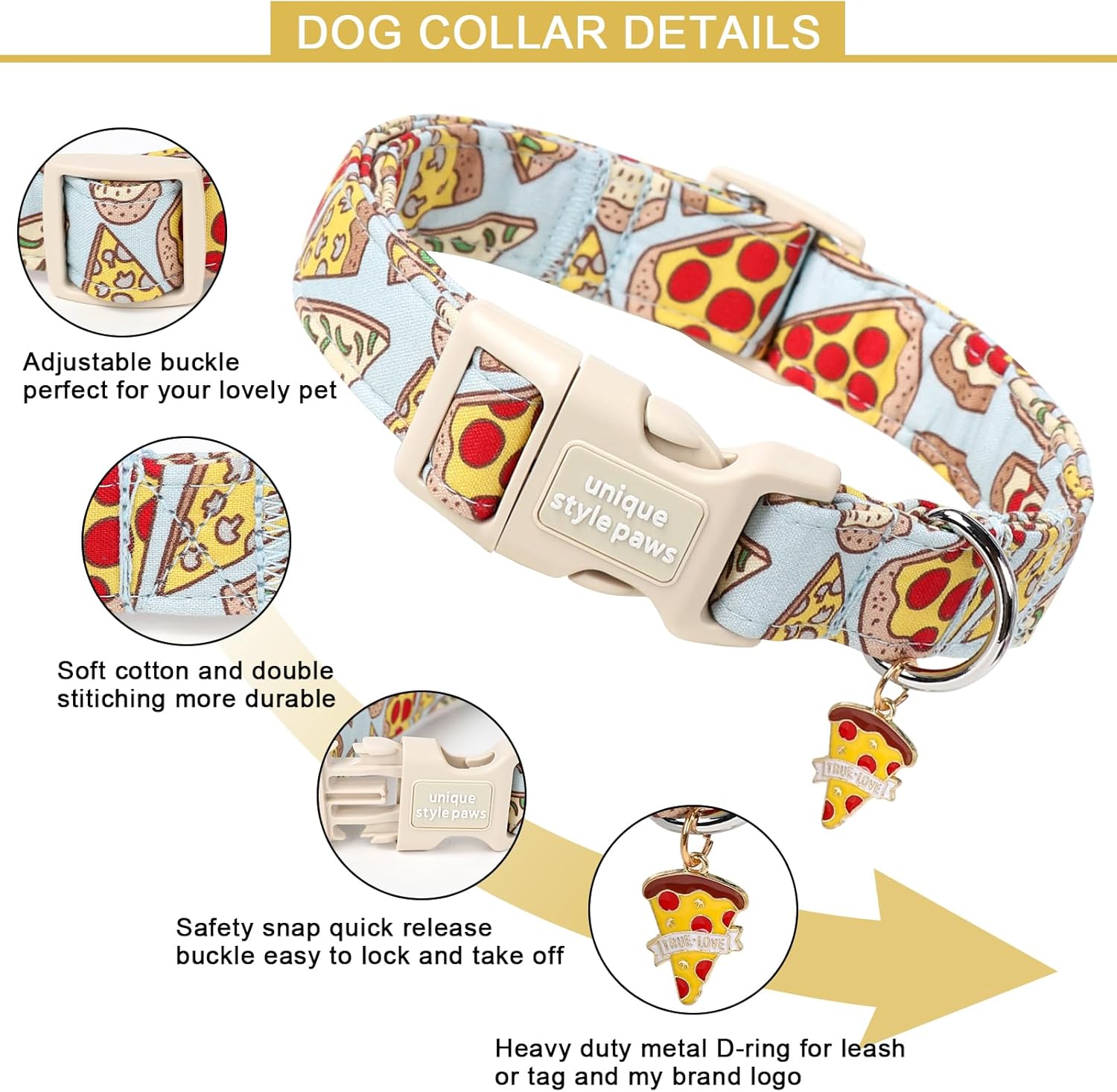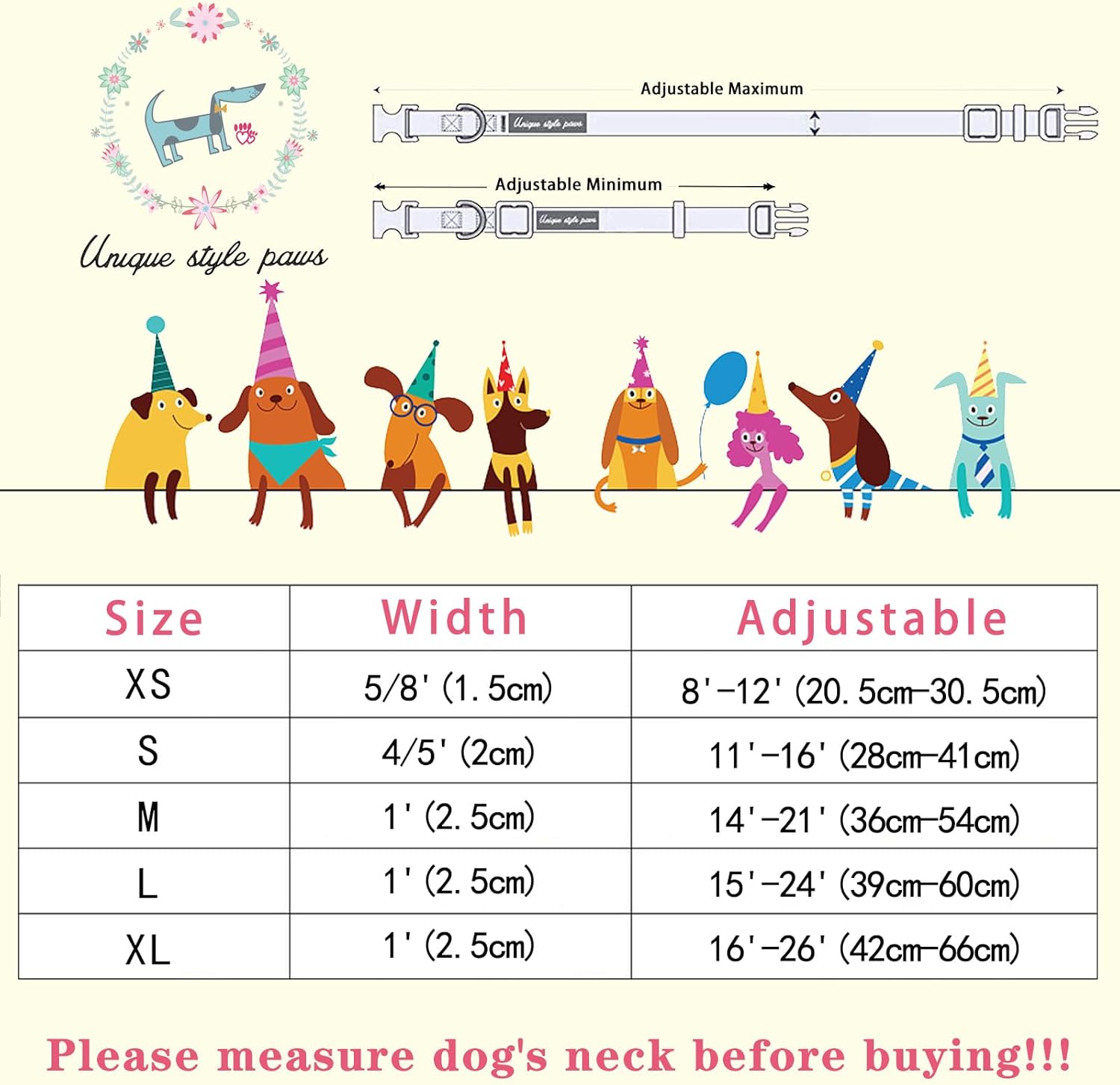 Unique style paws е марка, която хората обичат, с различни цветове и издръжливи катарами. Нашийникът е изработен от множество слоеве дизайнерска копринена материя. Ние използваме всички наши продукти върху собствените си домашни любимци, членове на семейството, и гарантираме за качеството им. Защото домашните любимци са членове на нашето семейство и ние трябва да се грижим за безопасността на пухкавите бебета. Въпреки че моите ръчно изработени продукти са здрави, нито един нашийник или каишка не е неразрушим. За безопасността на вашия домашен любимец препоръчваме редовно да проверявате нашийника си за признаци на износване. Не ги препоръчвайте за кученца, които дърпат много или преследват, при интензивна ежедневна употреба.