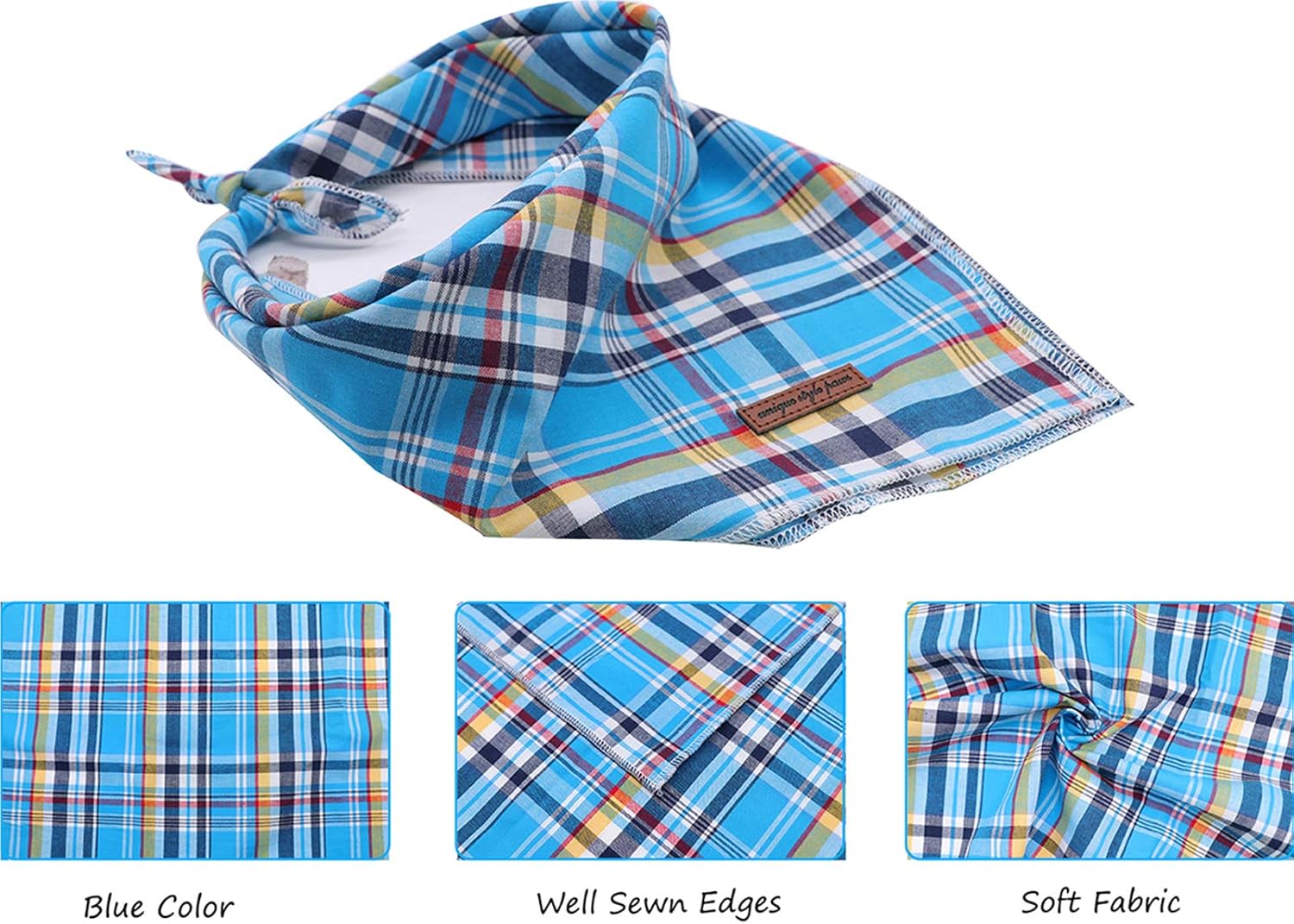 • Висококачествен материал: Изработен от чист памук, което го прави идеалният материал за вашите кучешки шалове. Шаловете за кучета са ръчно изработени в квадратна форма като традиционните връзки, след което са сгънати диагонално, навити на руло и завързани с възел. Размерите варират от изключително малки до изключително големи. Двойният слой осигурява дълъг експлоатационен живот.