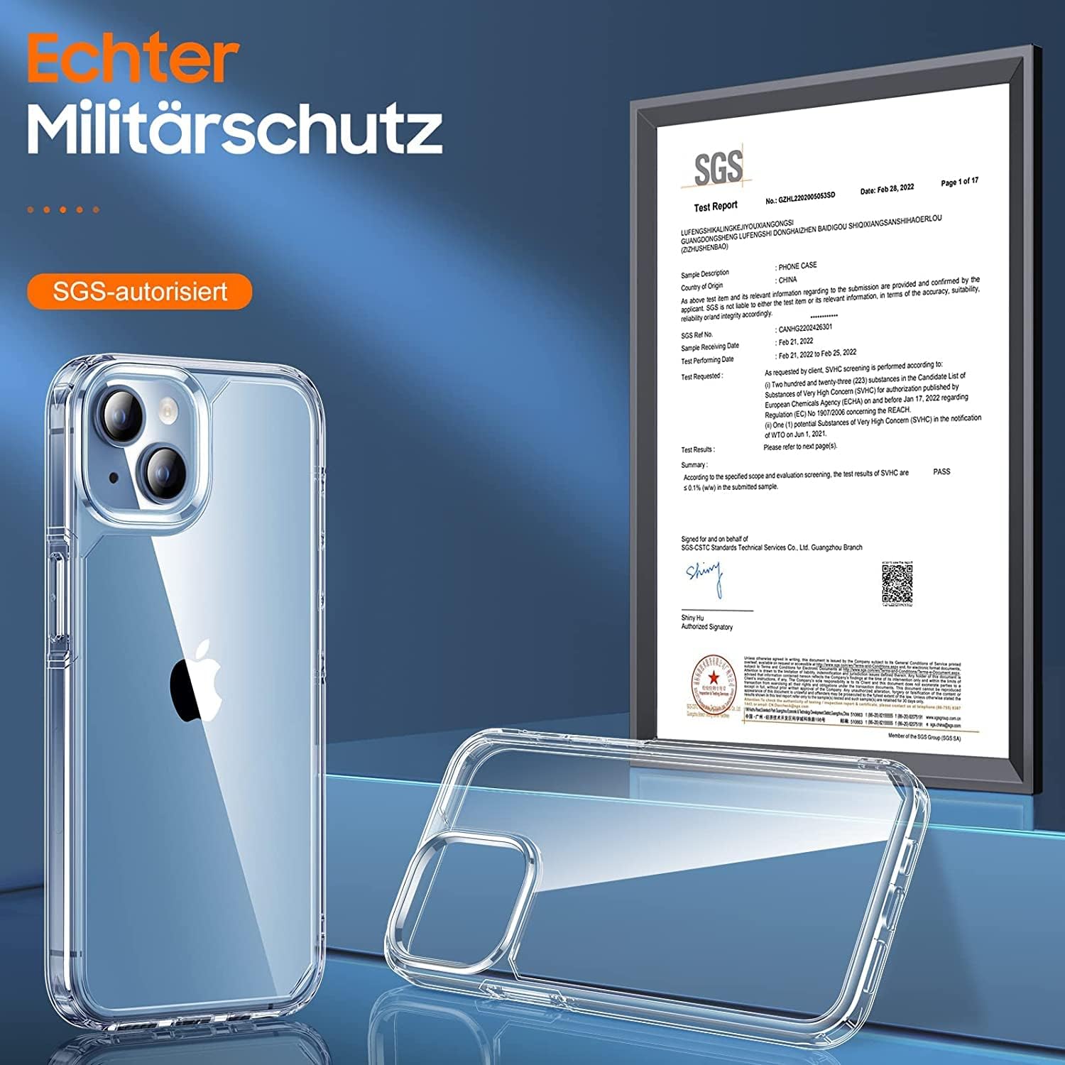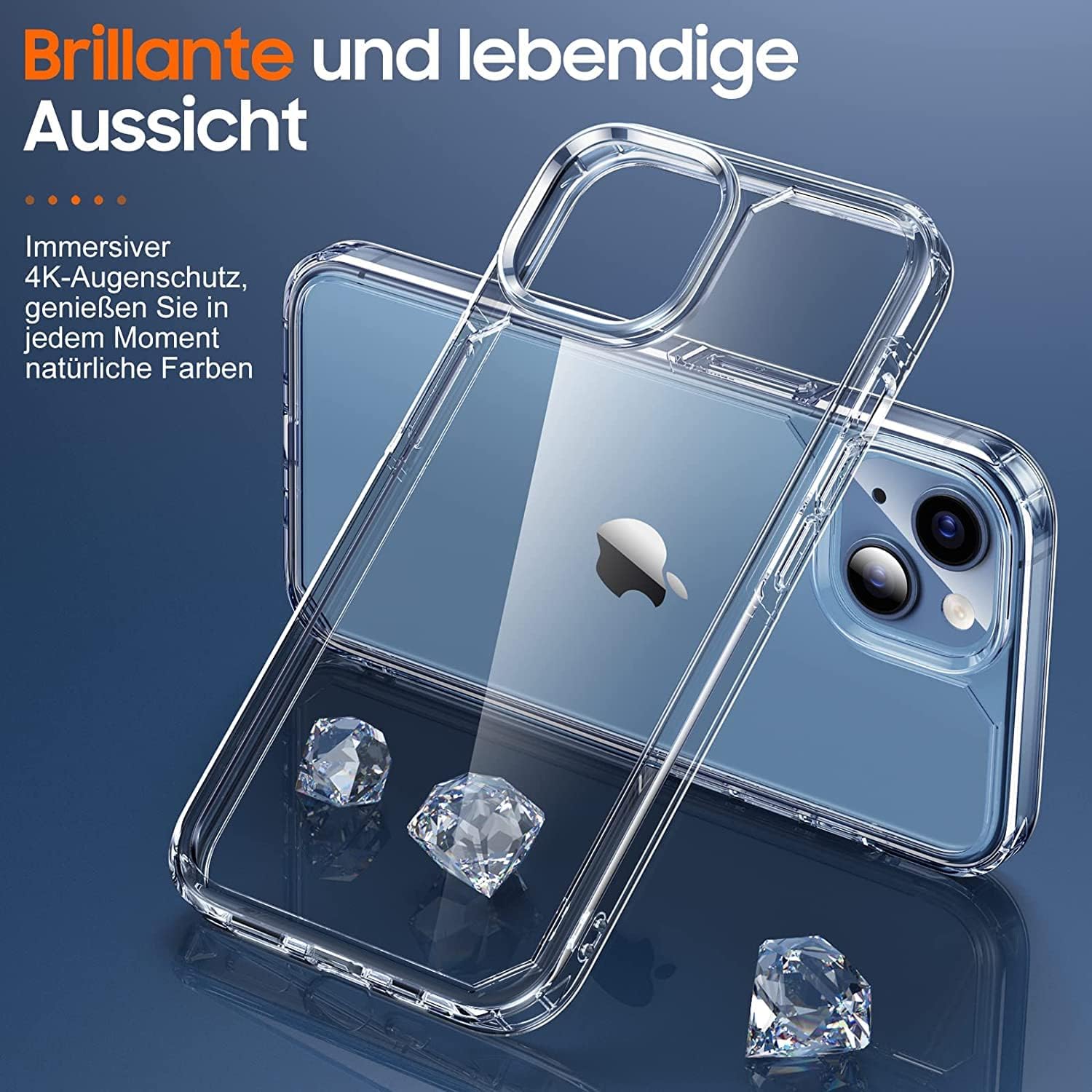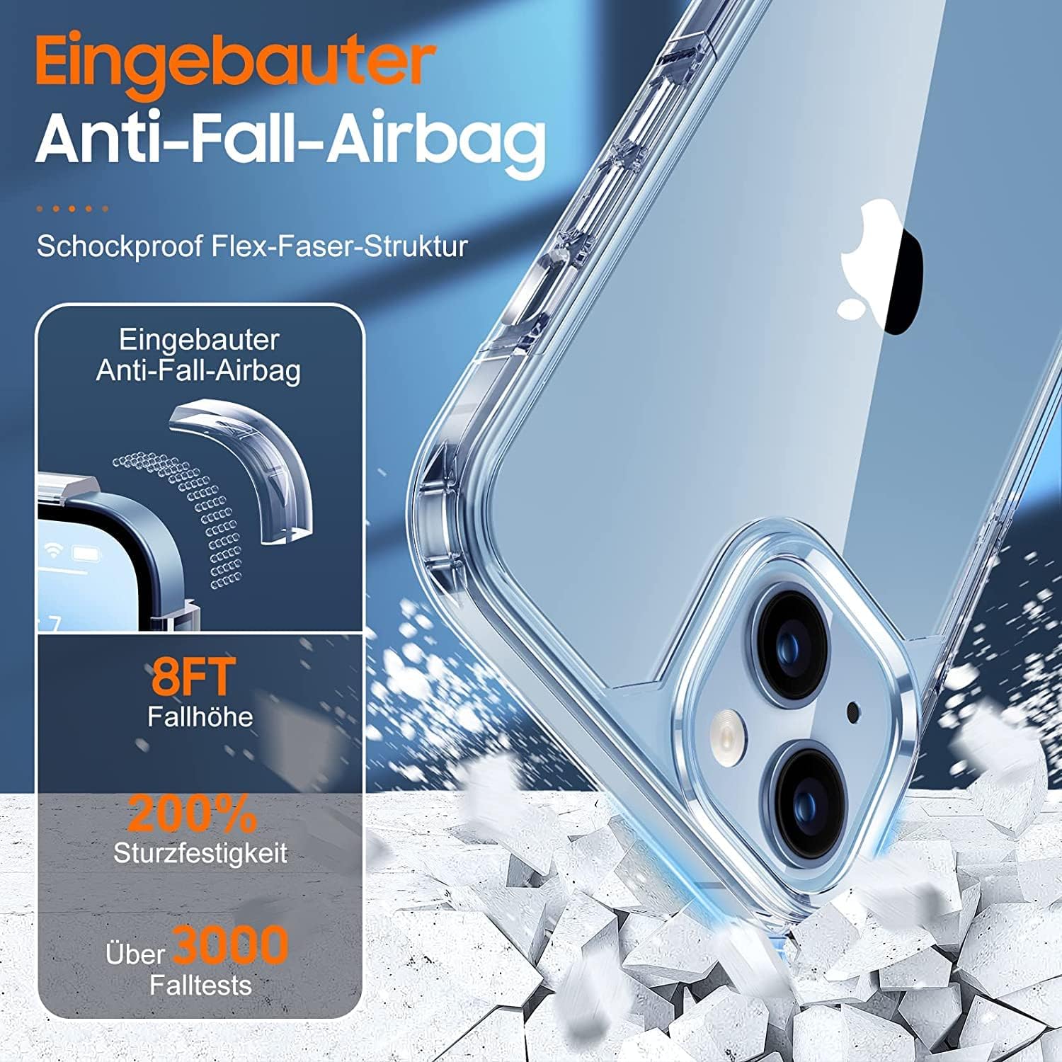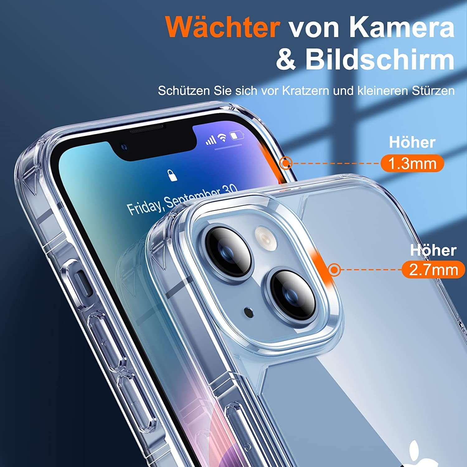 UniqueMe калъф за iPhone 14 Plus, комплект 5 в 1, калъф за мобилен телефон за iPhone 14 Plus, защитен калъф от всички страни, 1 калъф за мобилен телефон и 2 протектора за екран и 2 протектора за камера, прозрачен