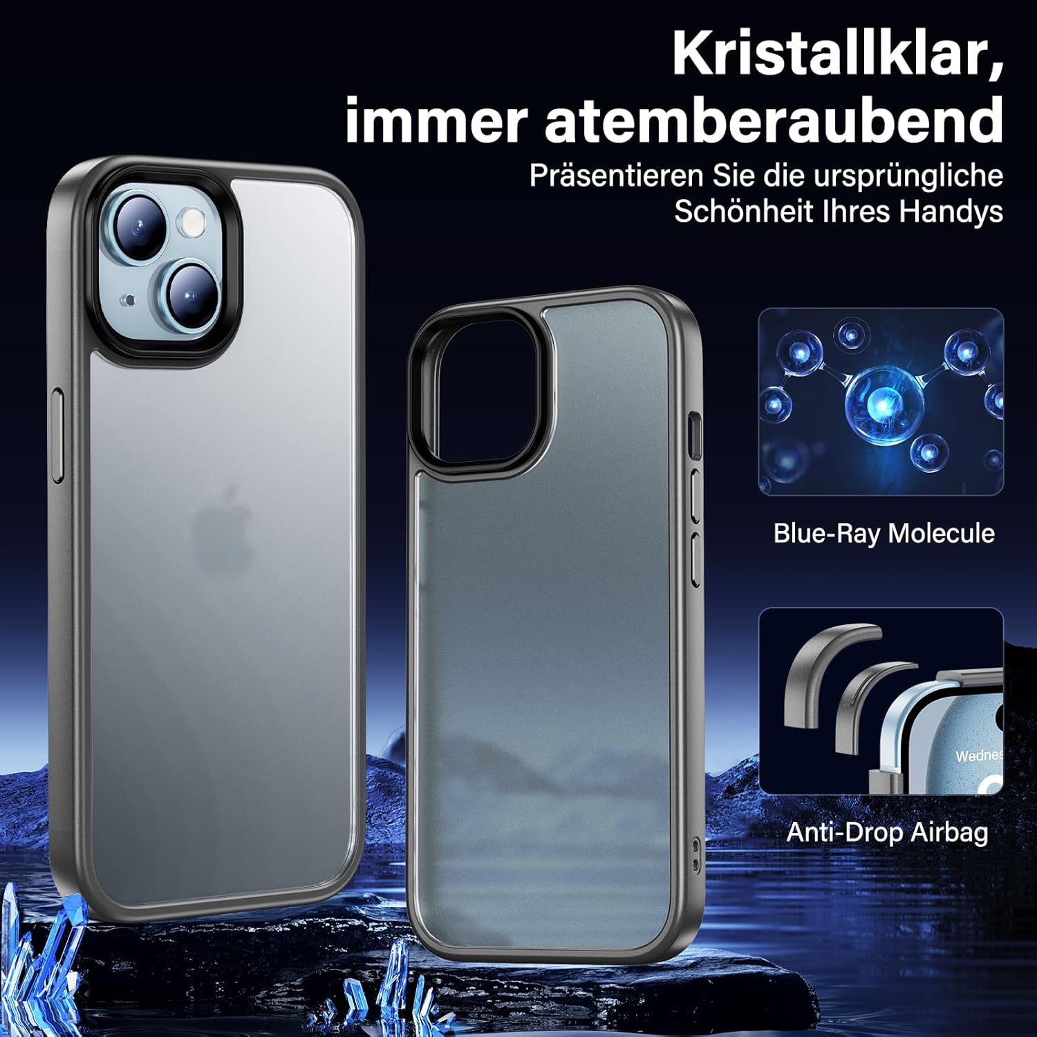 UniqueMe калъф за iPhone 15, комплект 5 в 1, калъф за мобилен телефон за iPhone 15, защитен калъф от всички страни, 1 калъф за мобилен телефон и 2 протектора за екран и 2 протектора за камера, матово сив