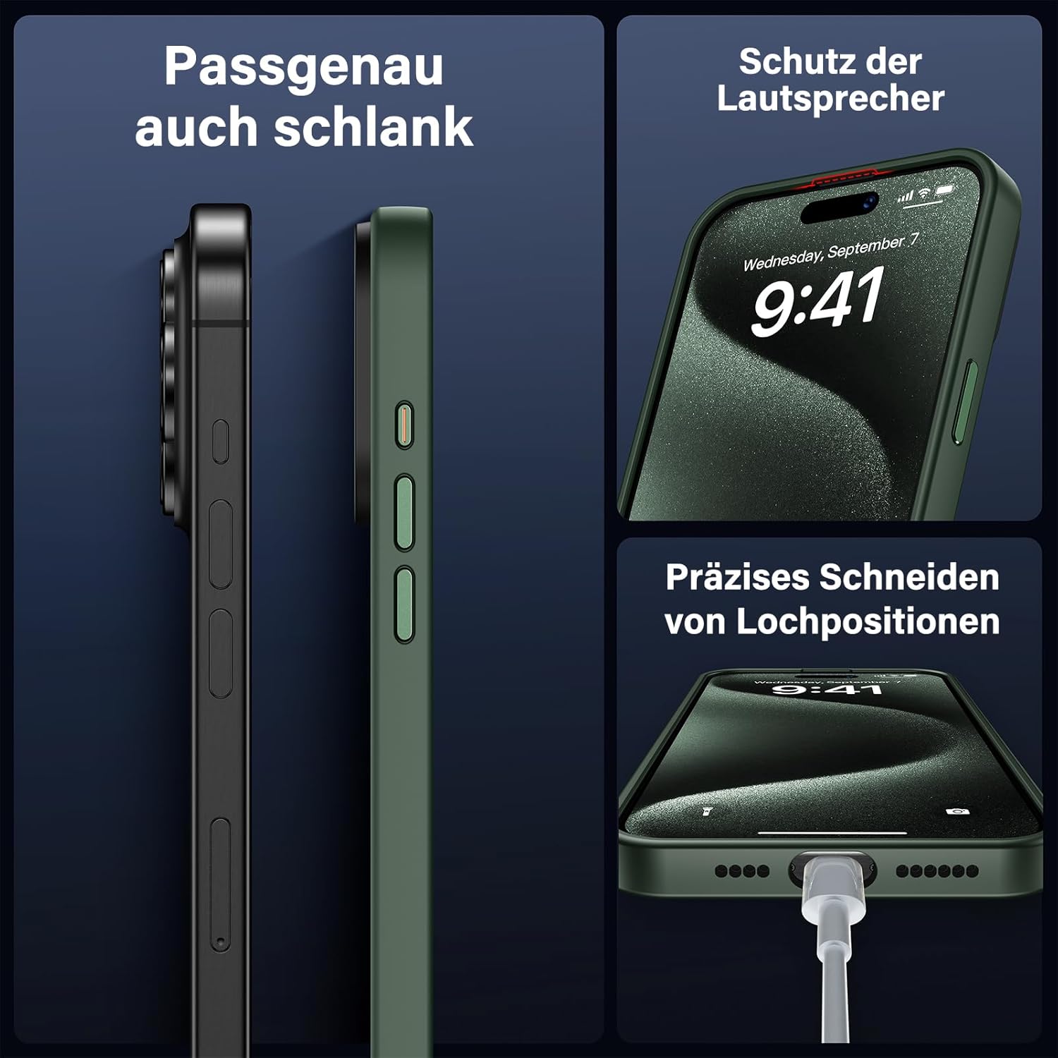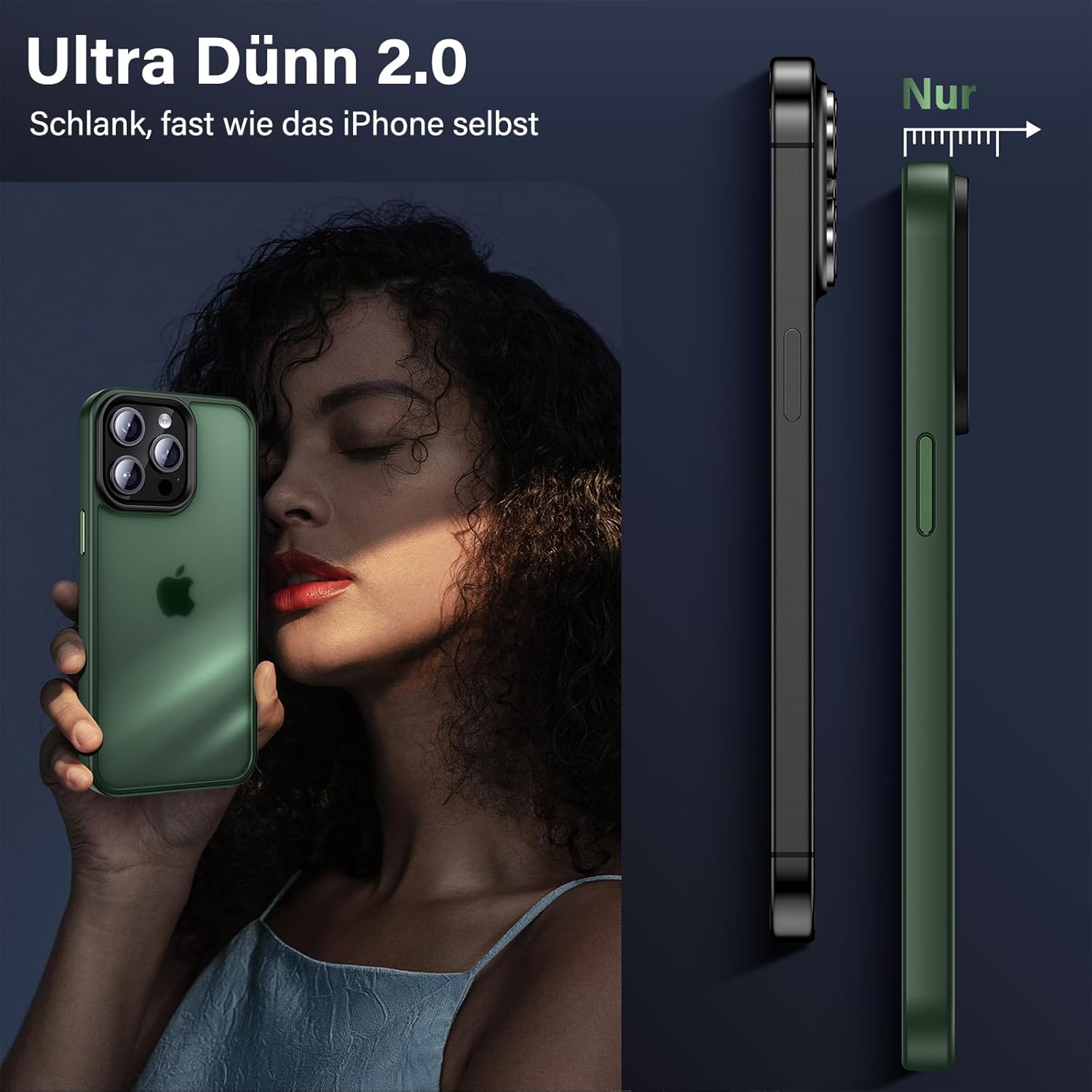 UniqueMe калъф за iPhone 15 Pro, комплект 5 в 1, калъф за мобилен телефон за iPhone 15 Pro, защитен калъф от всички страни, 1 калъф за мобилен телефон и 2 протектора за екран и 2 протектора за камера, матово зелен