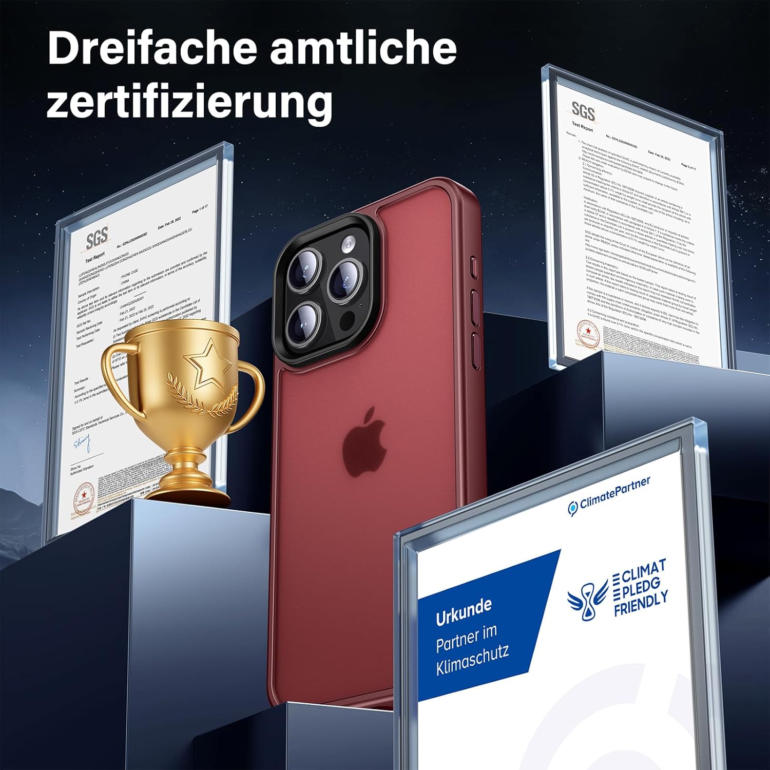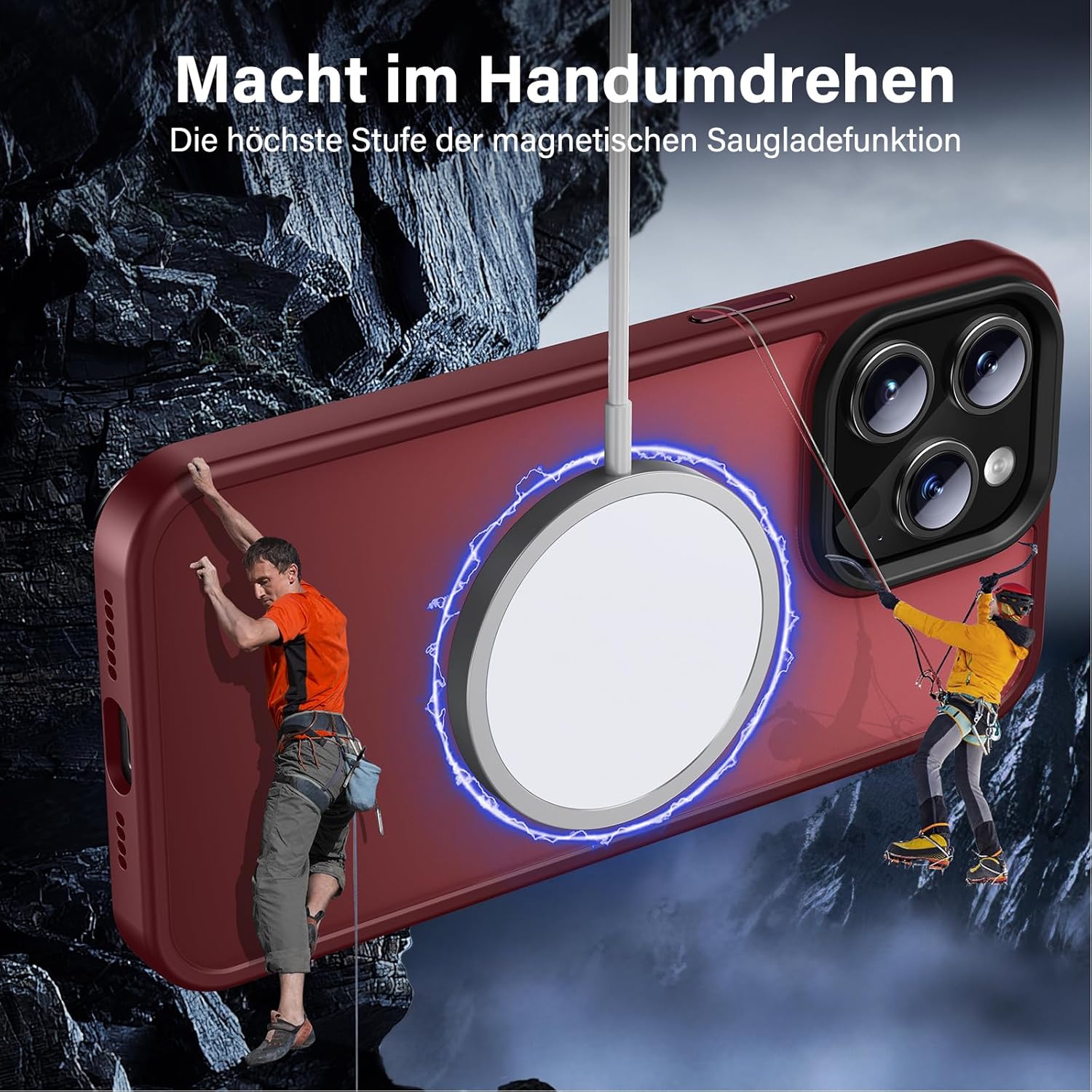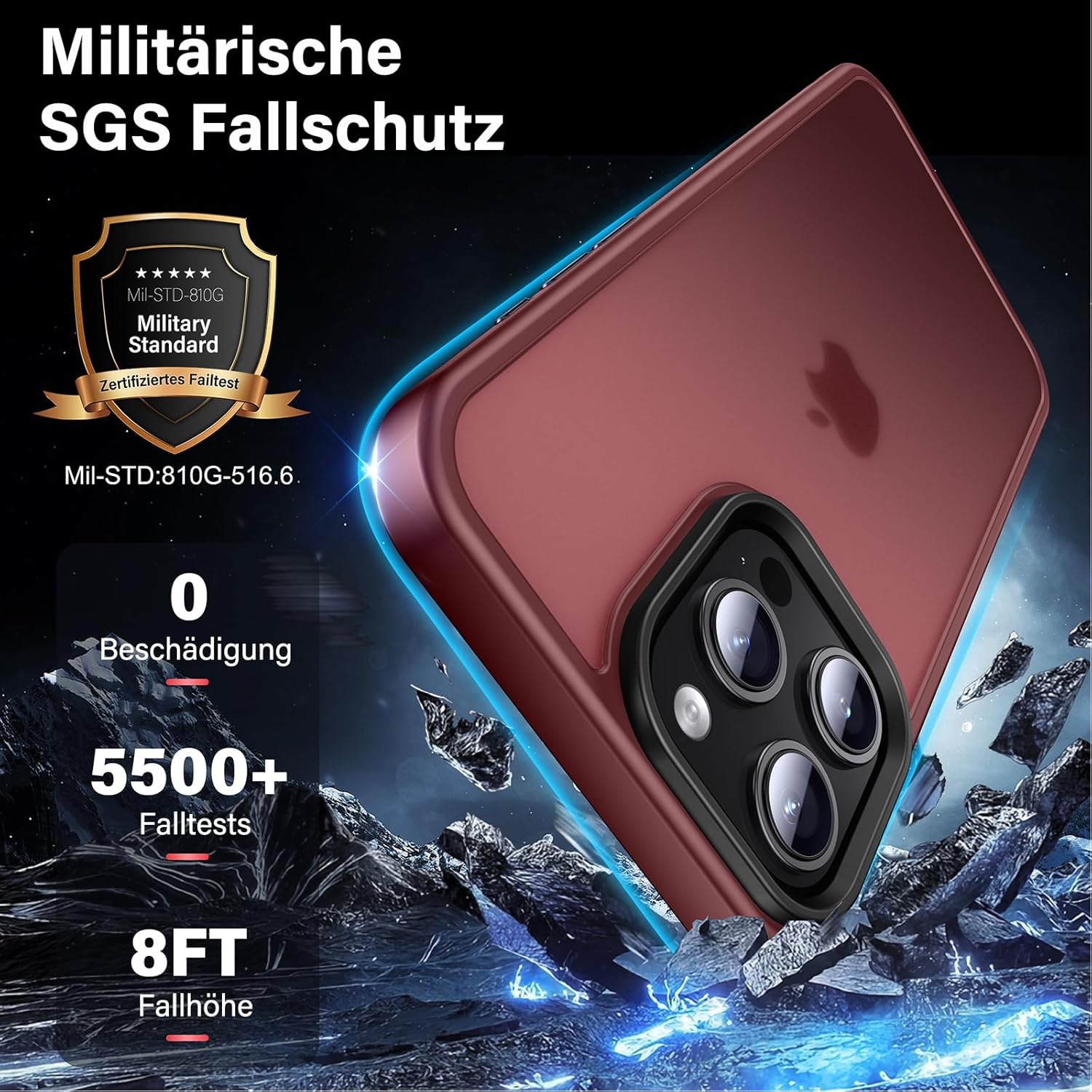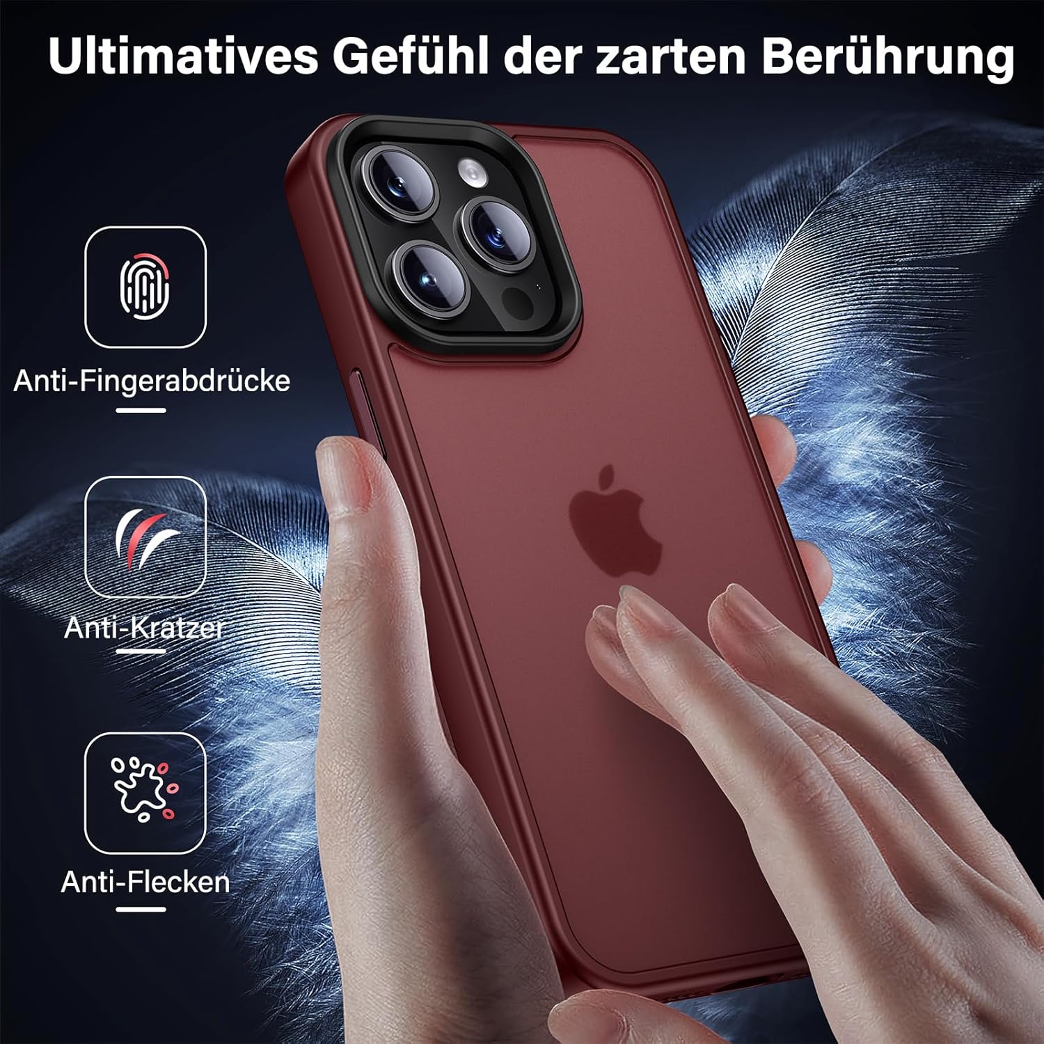 UniqueMe калъф за iPhone 15 Pro Max, комплект 5 в 1, калъф за мобилен телефон за iPhone 15 Pro Max, защитен калъф от всички страни, 1 калъф за мобилен телефон и 2 протектора за екран и 2 протектора за камера, матово червен