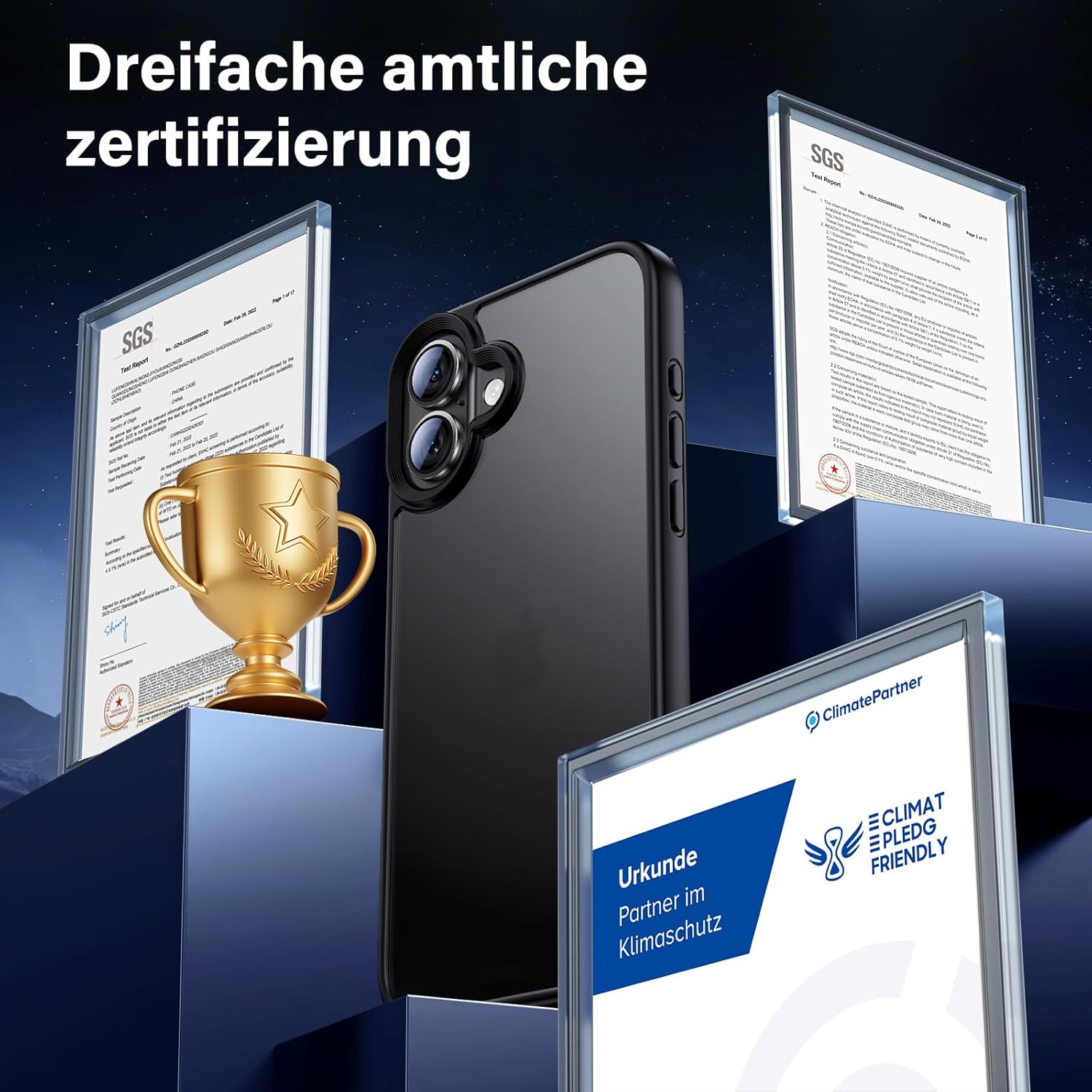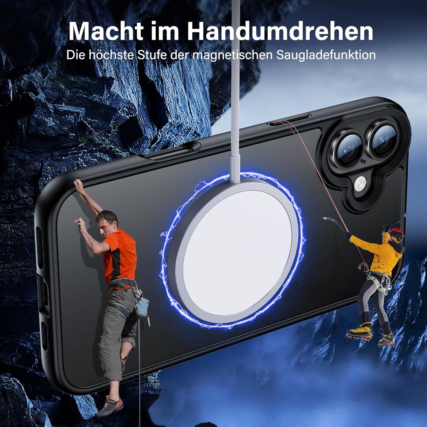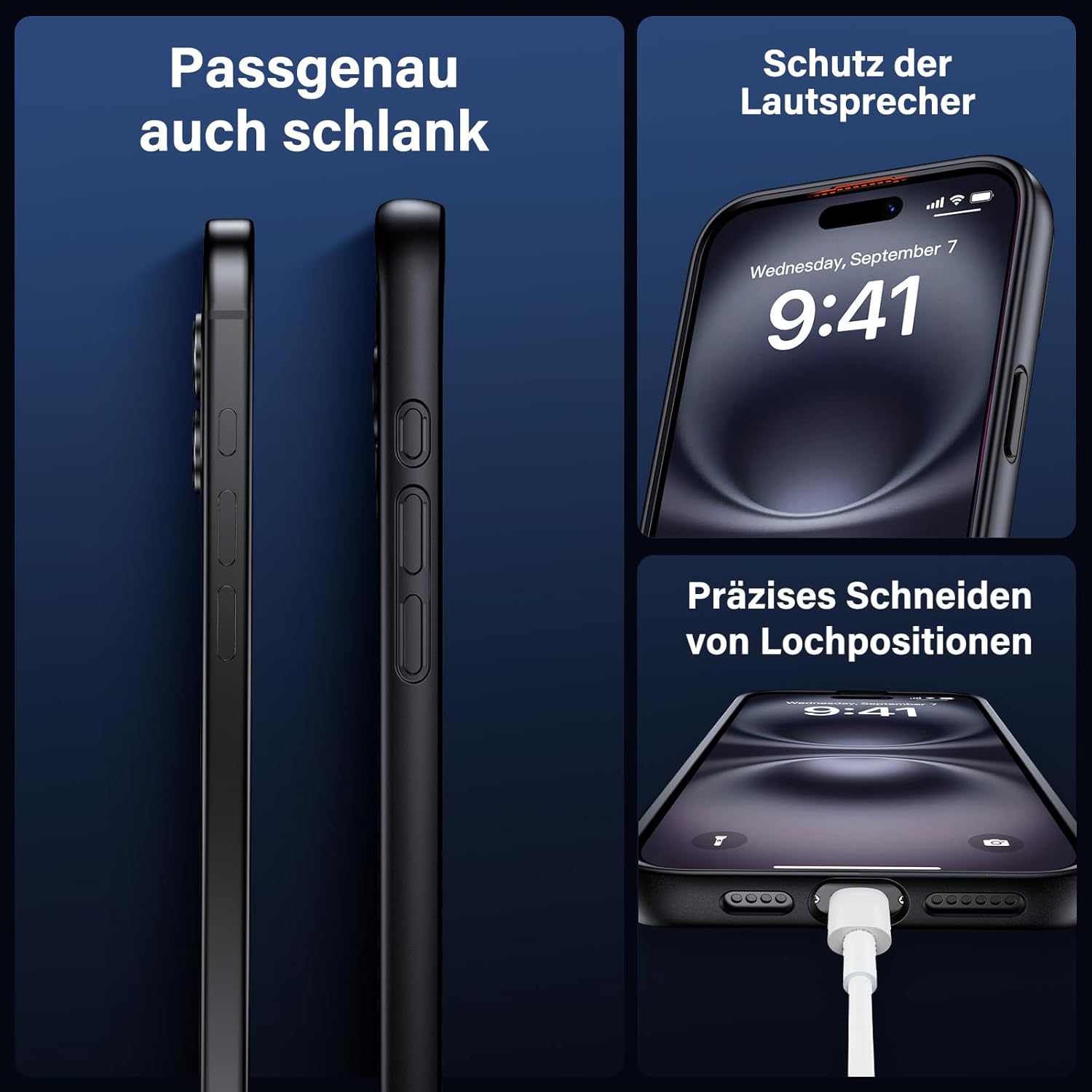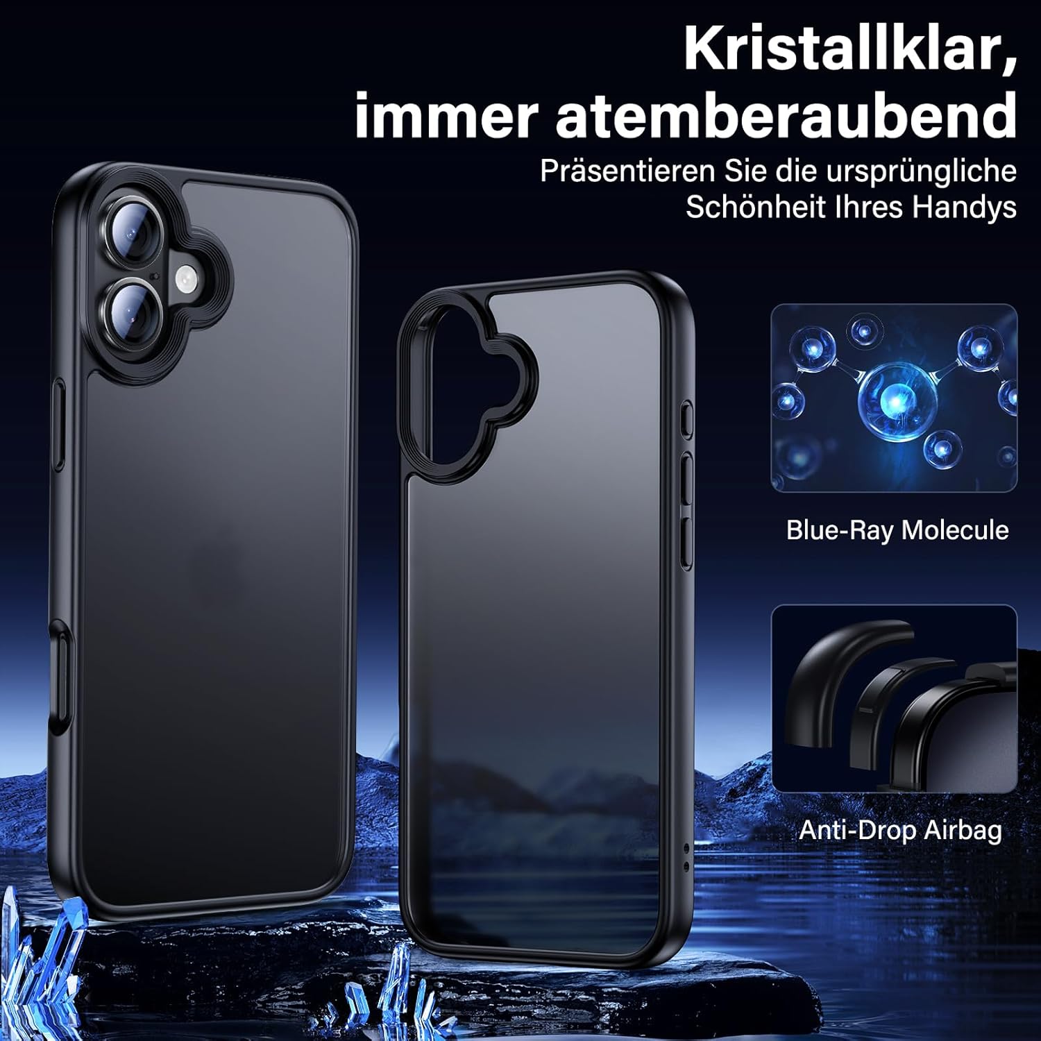 UniqueMe калъф за iPhone 16, комплект 5 в 1, калъф за мобилен телефон за iPhone 16, защитен калъф от всички страни, 1 калъф за мобилен телефон и 2 протектора за екран и 2 протектора за камера, черен