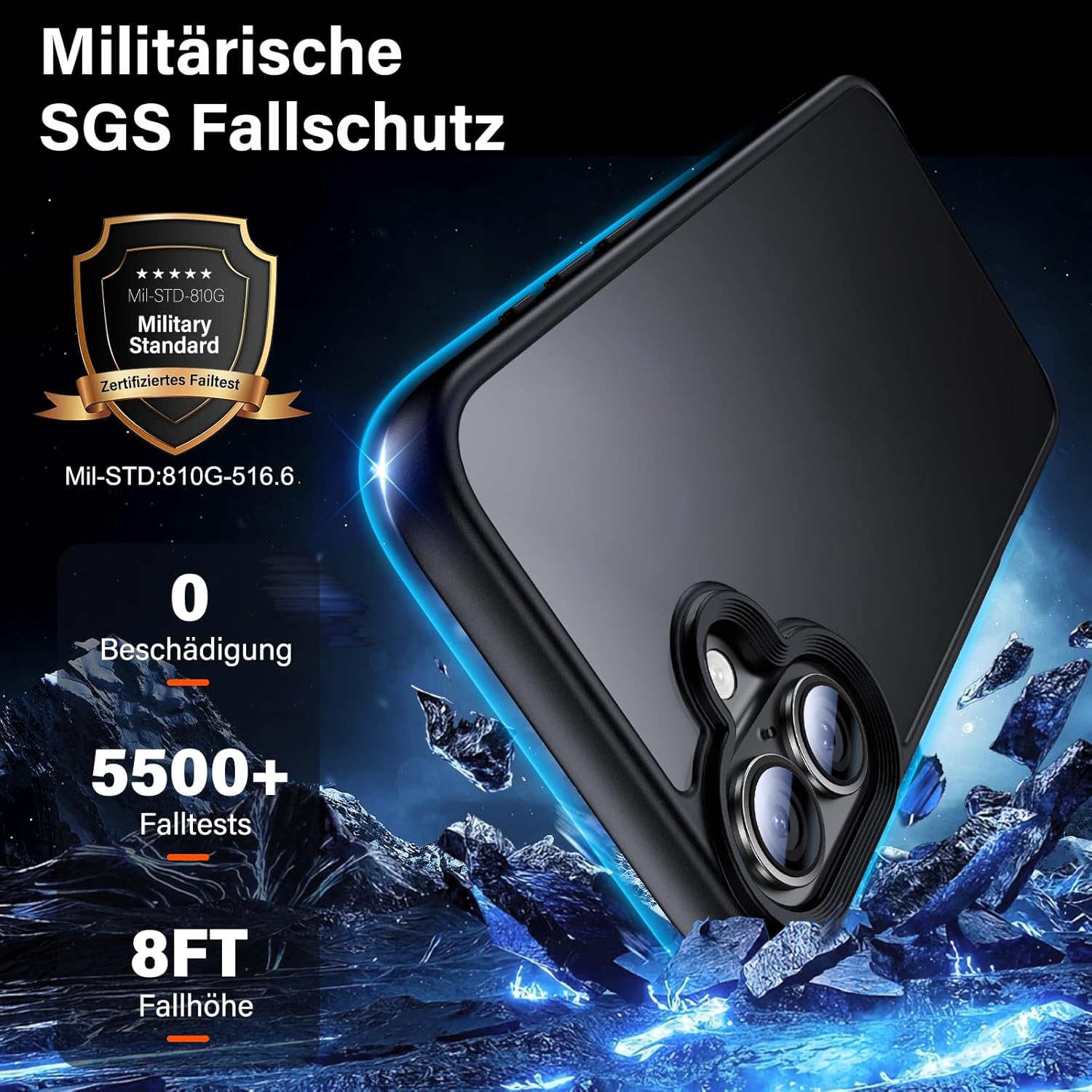 • 8-футова военна защита: този калъф за мобилен телефон за iPhone 17 е изработен от висококачествен, уникален антишоков дизайн на всичките четири ъгъла на калъфа и предпазва телефона ви от случайни падания, удари и драскотини.