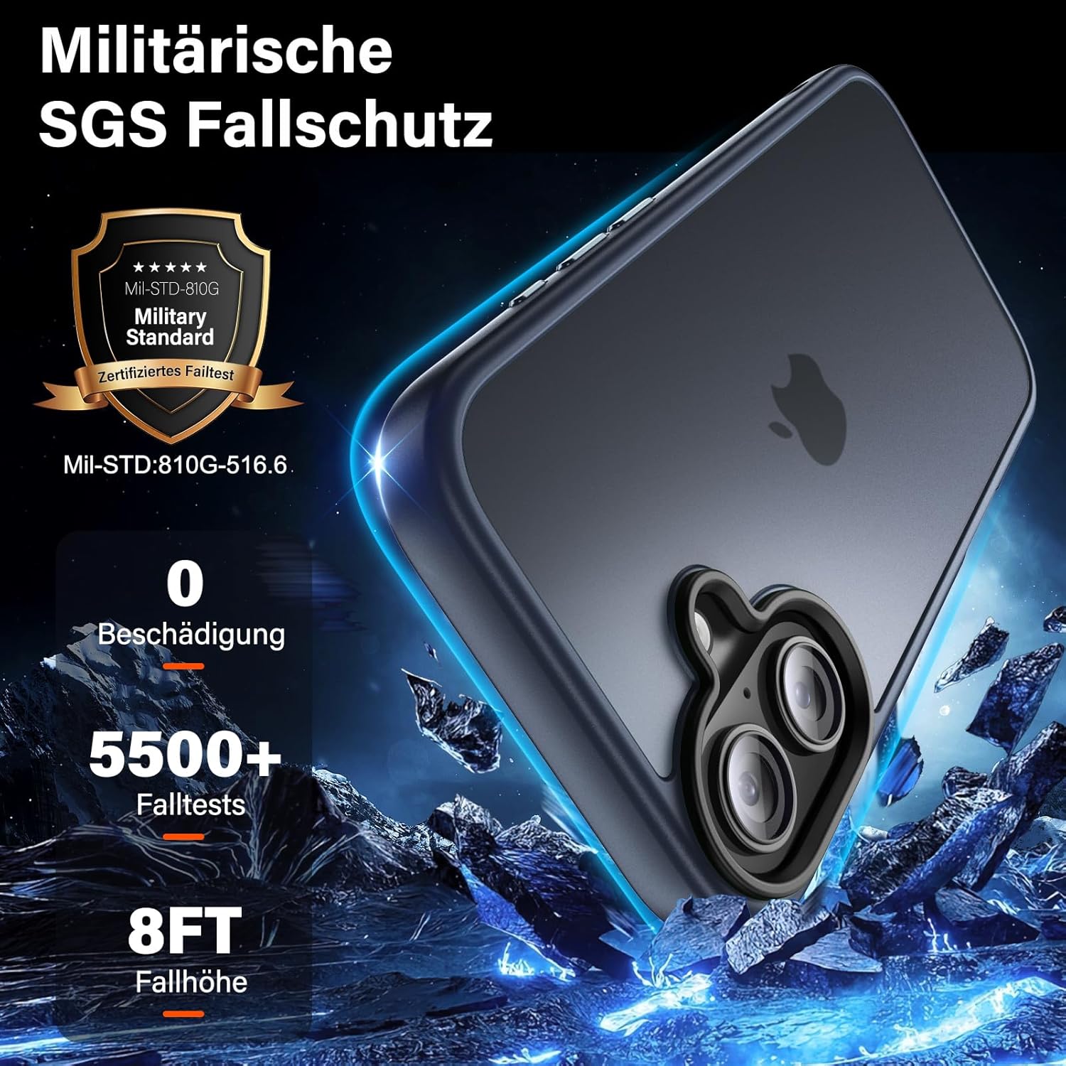 • 8-футова военна защита: този калъф за мобилен телефон за iPhone 17 е изработен от висококачествен, уникален антишоков дизайн на всичките четири ъгъла на калъфа и предпазва телефона ви от случайни падания, удари и драскотини.
