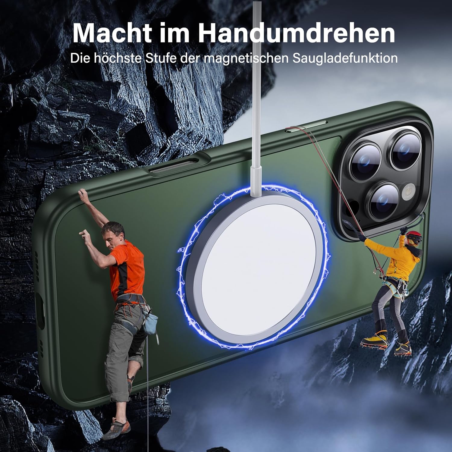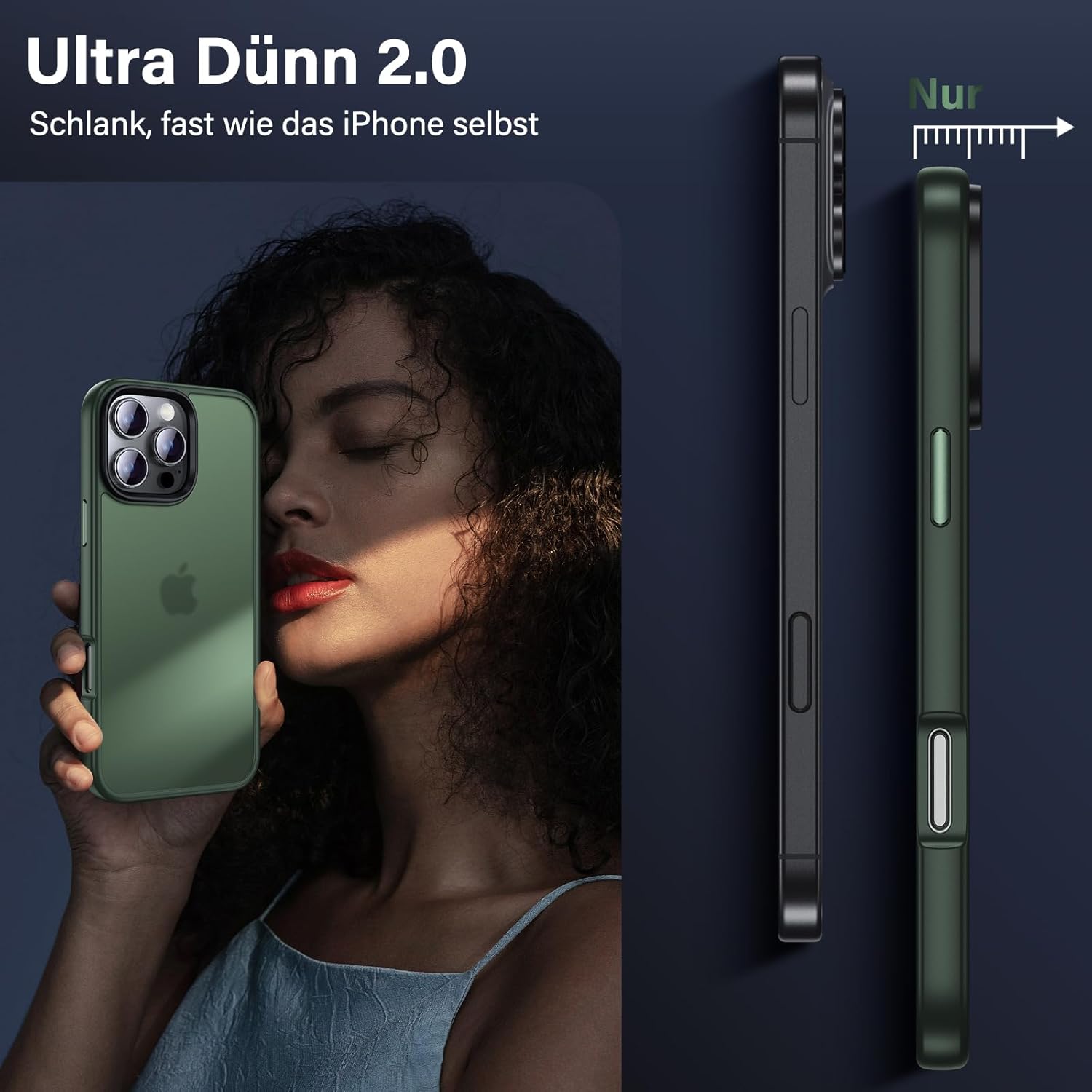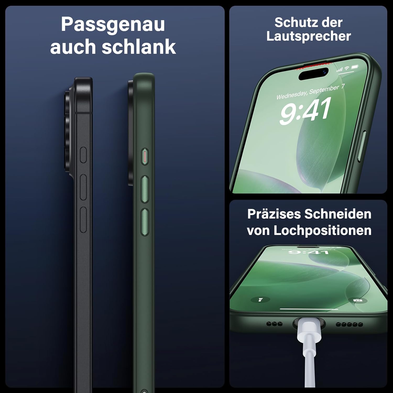 UniqueMe калъф за iPhone 16 Pro, комплект 5 в 1, калъф за мобилен телефон за iPhone 16 Pro, защитен калъф от всички страни, 1 калъф за мобилен телефон и 2 протектора за екран и 2 протектора за камера, матово зелен