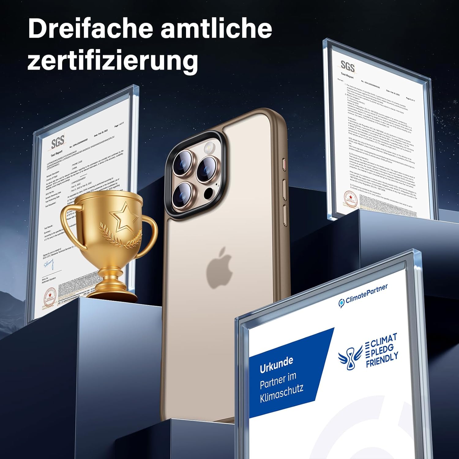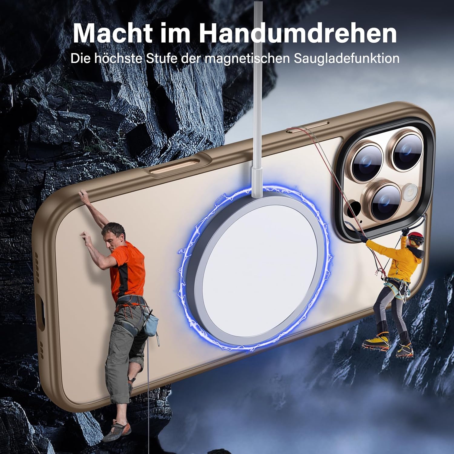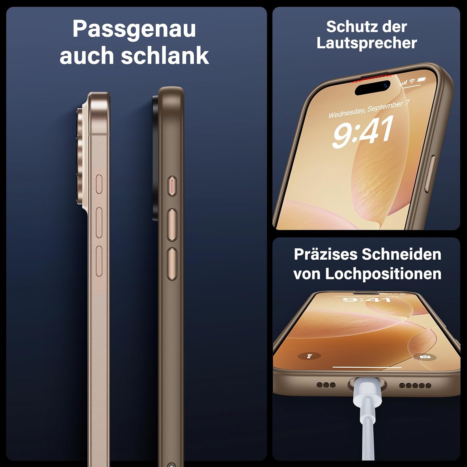 UniqueMe калъф за iPhone 16 Pro, комплект 5 в 1, калъф за мобилен телефон за iPhone 16 Pro, защитен калъф от всички страни, 1 калъф за мобилен телефон и 2 протектора за екран и 2 протектора за камера, матово златист