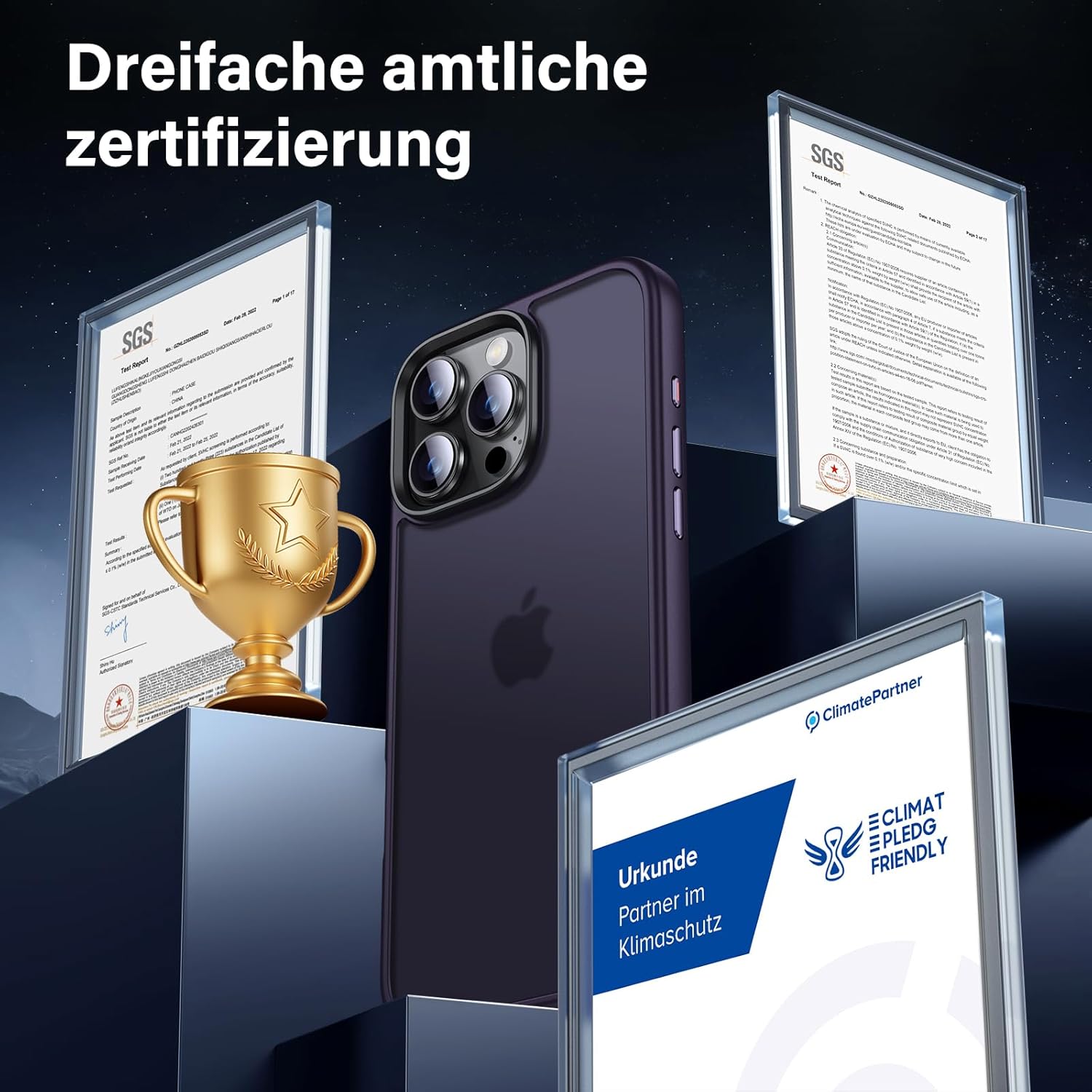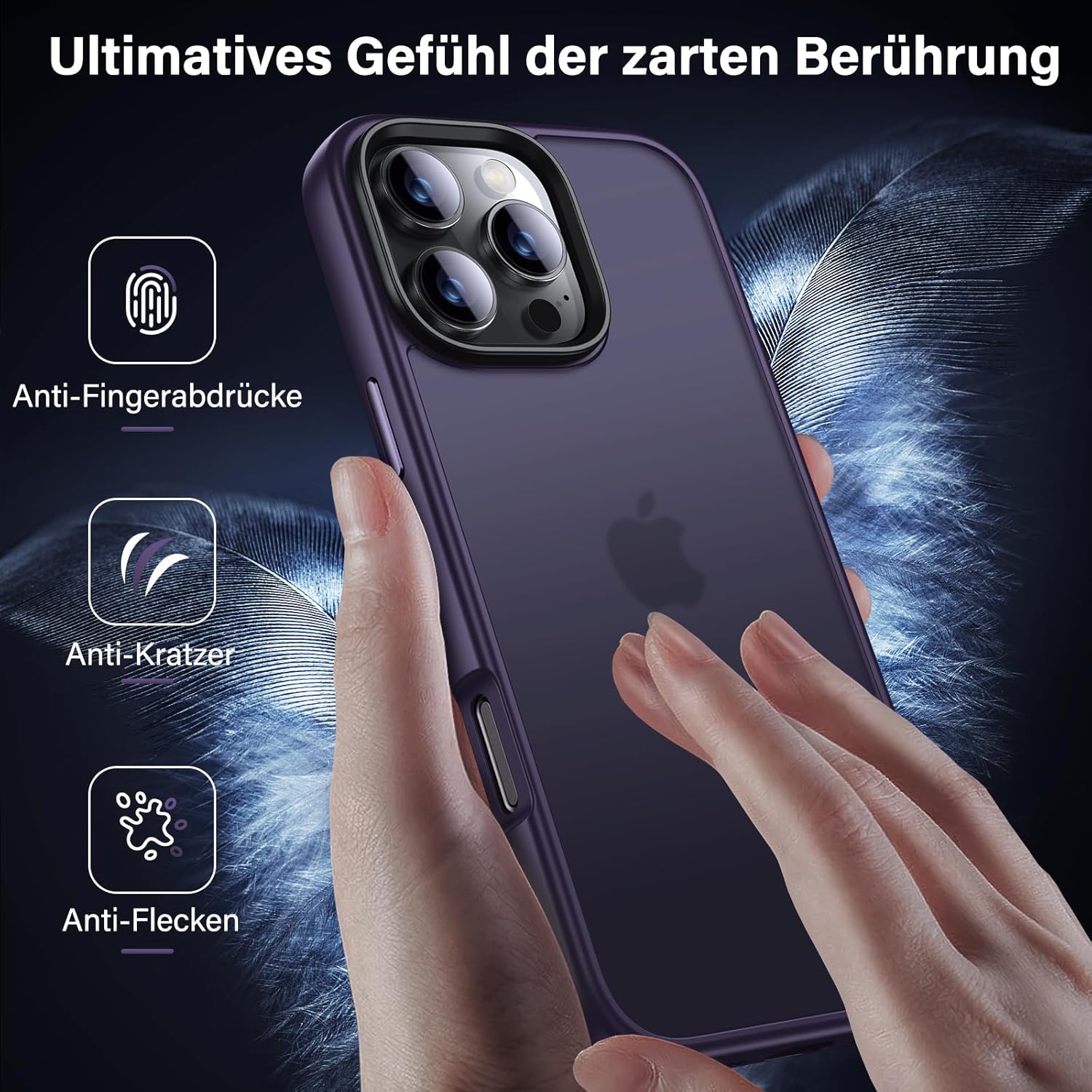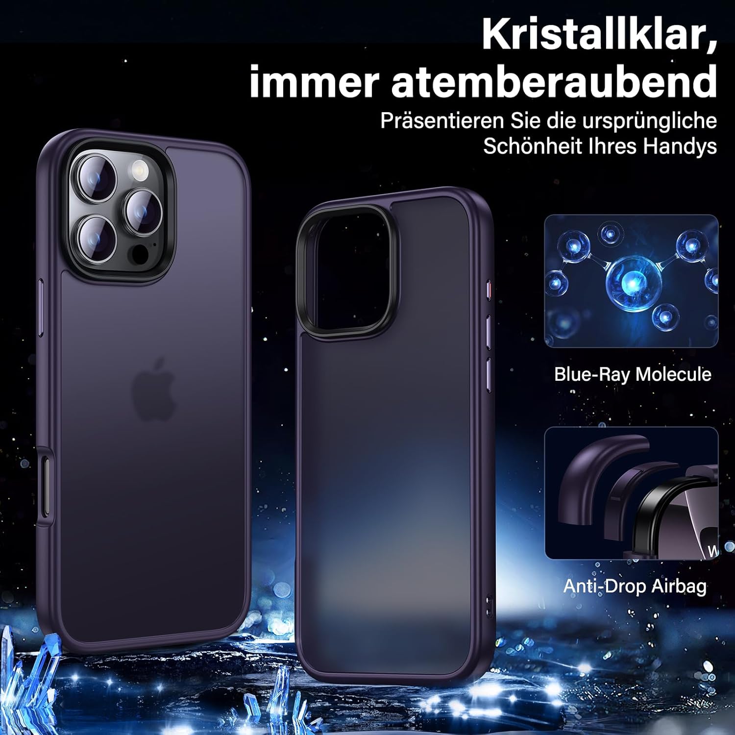 UniqueMe калъф за iPhone 16 Pro Max, комплект 5 в 1, калъф за мобилен телефон за iPhone 16 Pro Max, защитен калъф от всички страни, 1 калъф за мобилен телефон и 2 протектора за екран и 2 протектора за камера, матово лилав