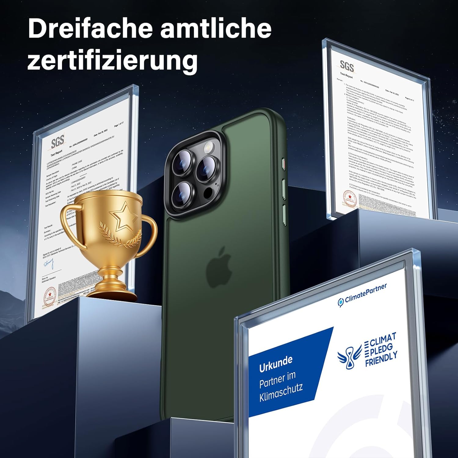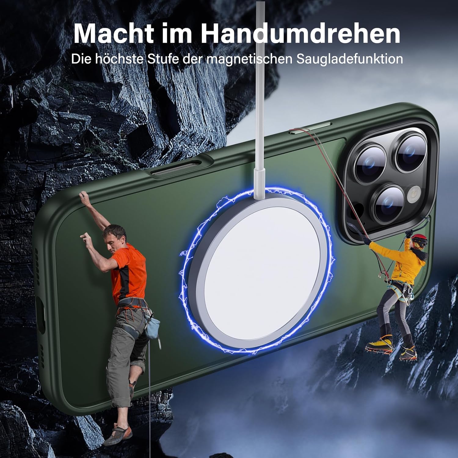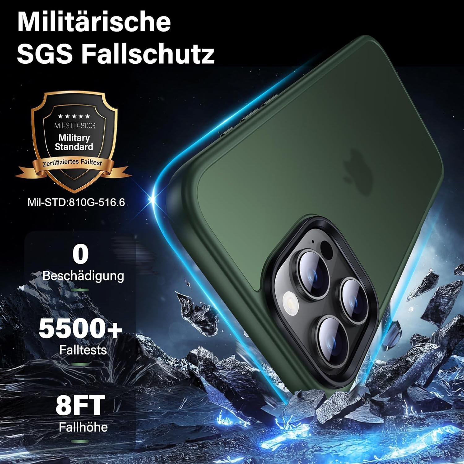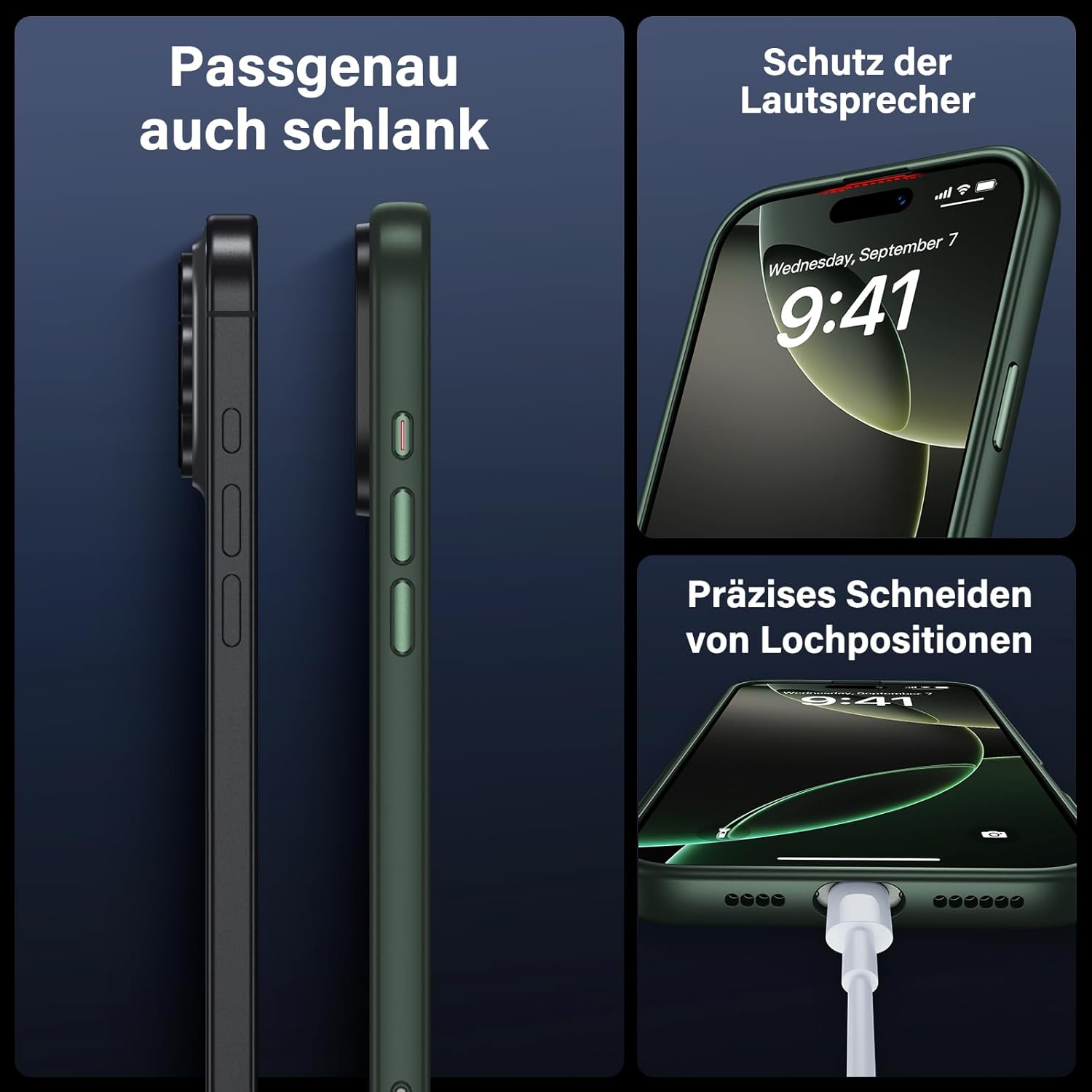UniqueMe калъф за iPhone 16 Pro Max, комплект 5 в 1, калъф за мобилен телефон за iPhone 16 Pro Max, защитен калъф от всички страни, 1 калъф за мобилен телефон и 2 протектора за екран и 2 протектора за камера, матово зелен