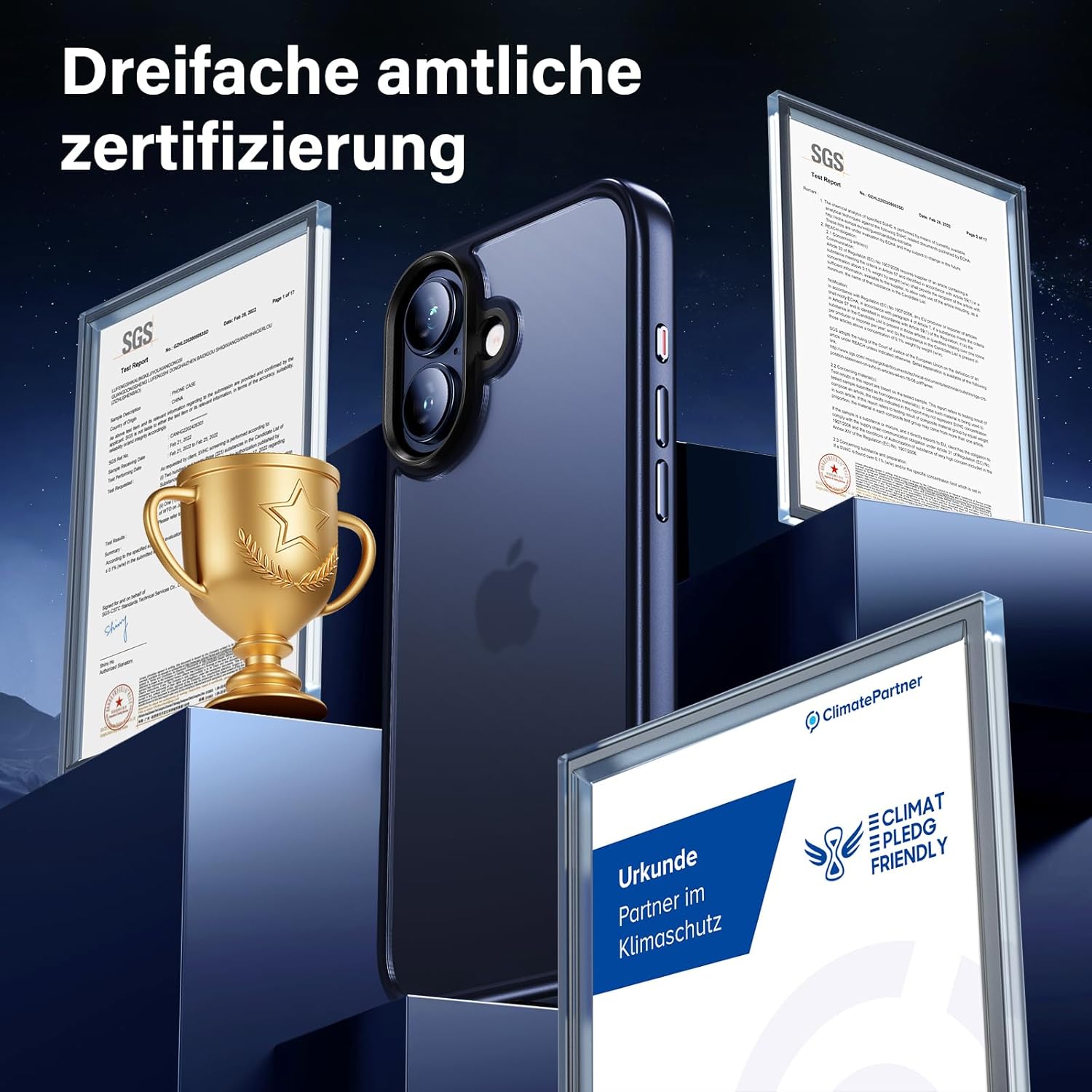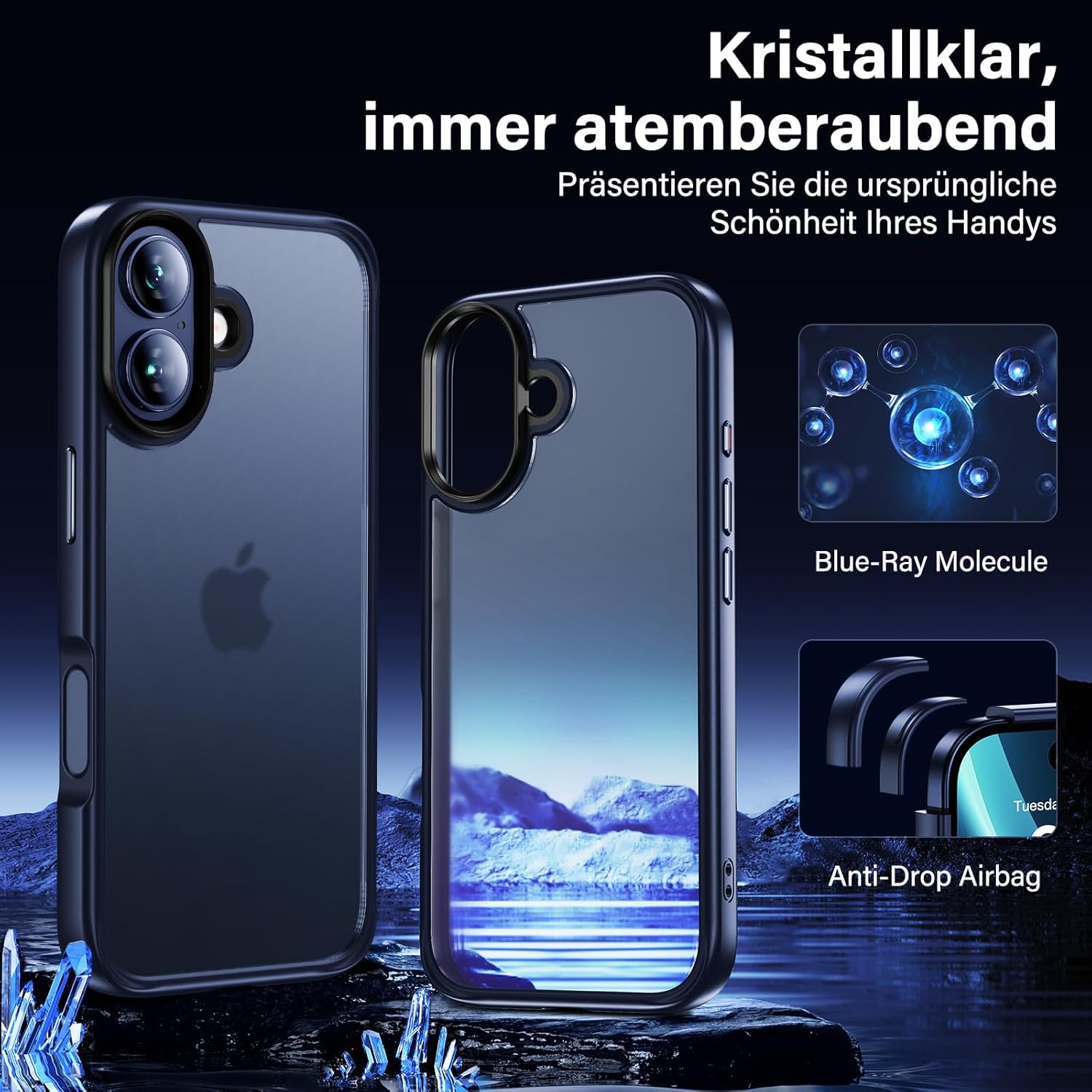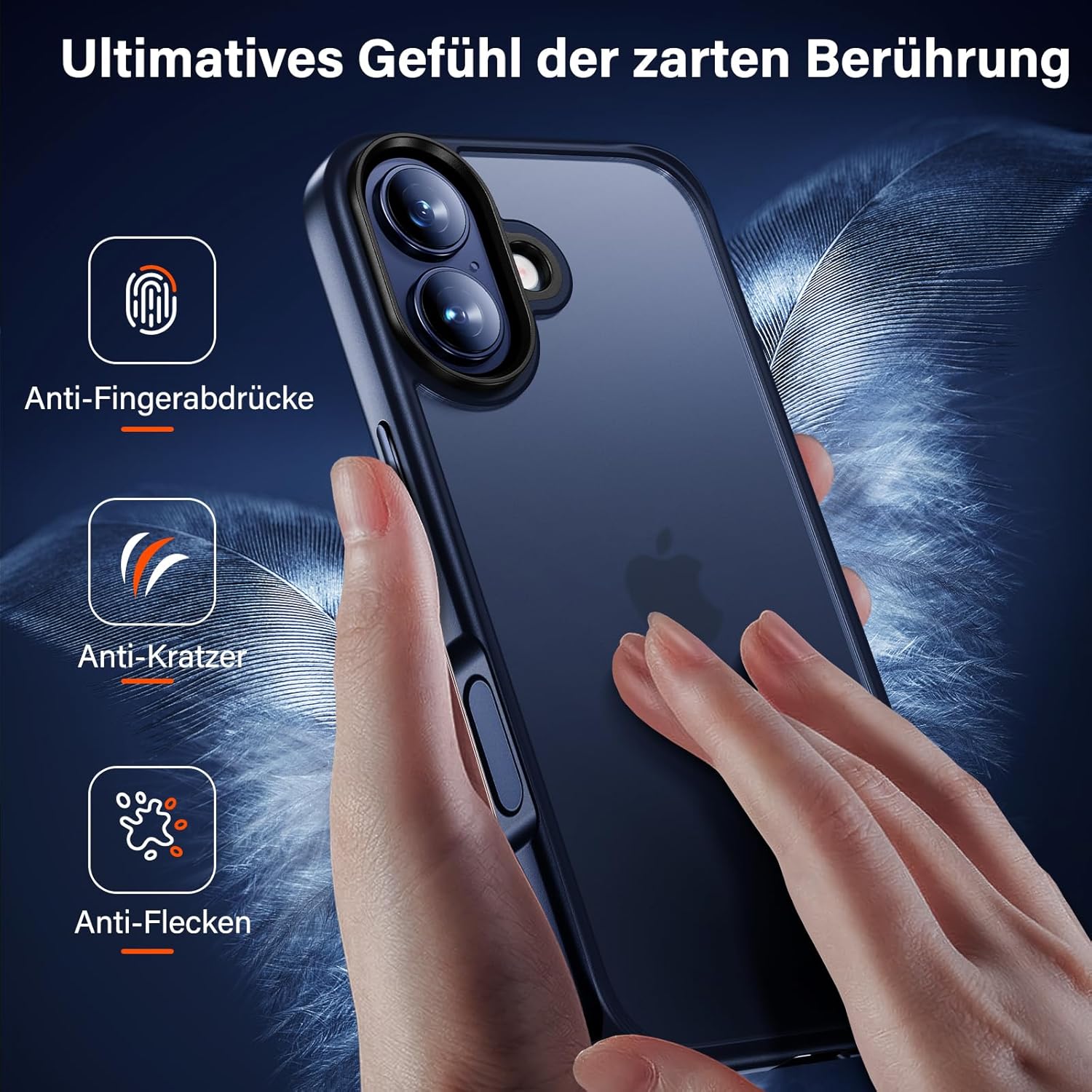 UniqueMe калъф за iPhone 17 - Калъф за мобилен телефон за iPhone 17, комплект 5 в 1, защитен калъф за цялостна защита, 1 калъф за мобилен телефон, 2 протектора за екран и 2 протектора за камера - матово син