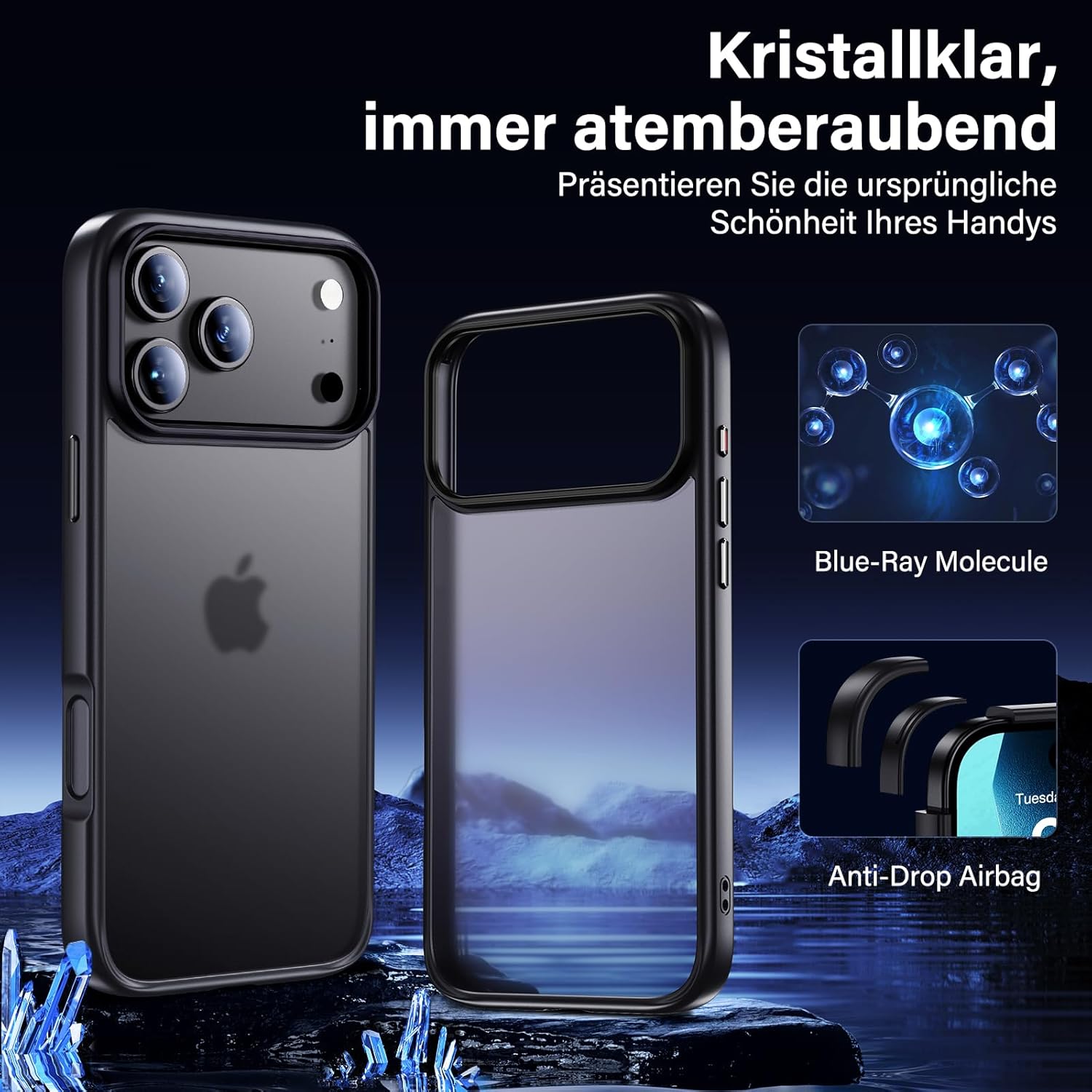 • Блестящ като кристал: Кейсът UniqueMe за iPhone 17 е изработен от високопропусклив молекулярен материал с нано антиоксидантен слой и технология против пожълтяване, за да запази калъфа ви да изглежда като нов и чист.