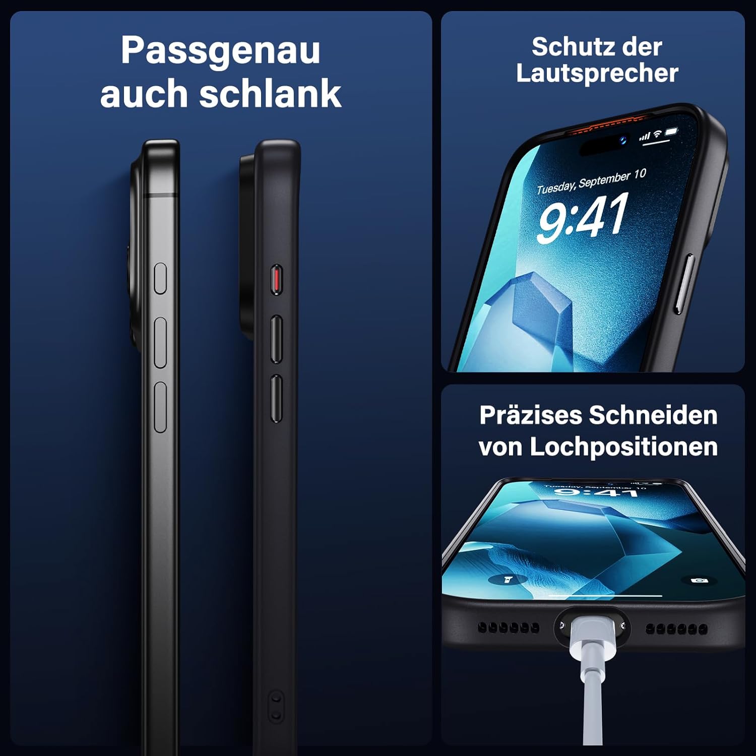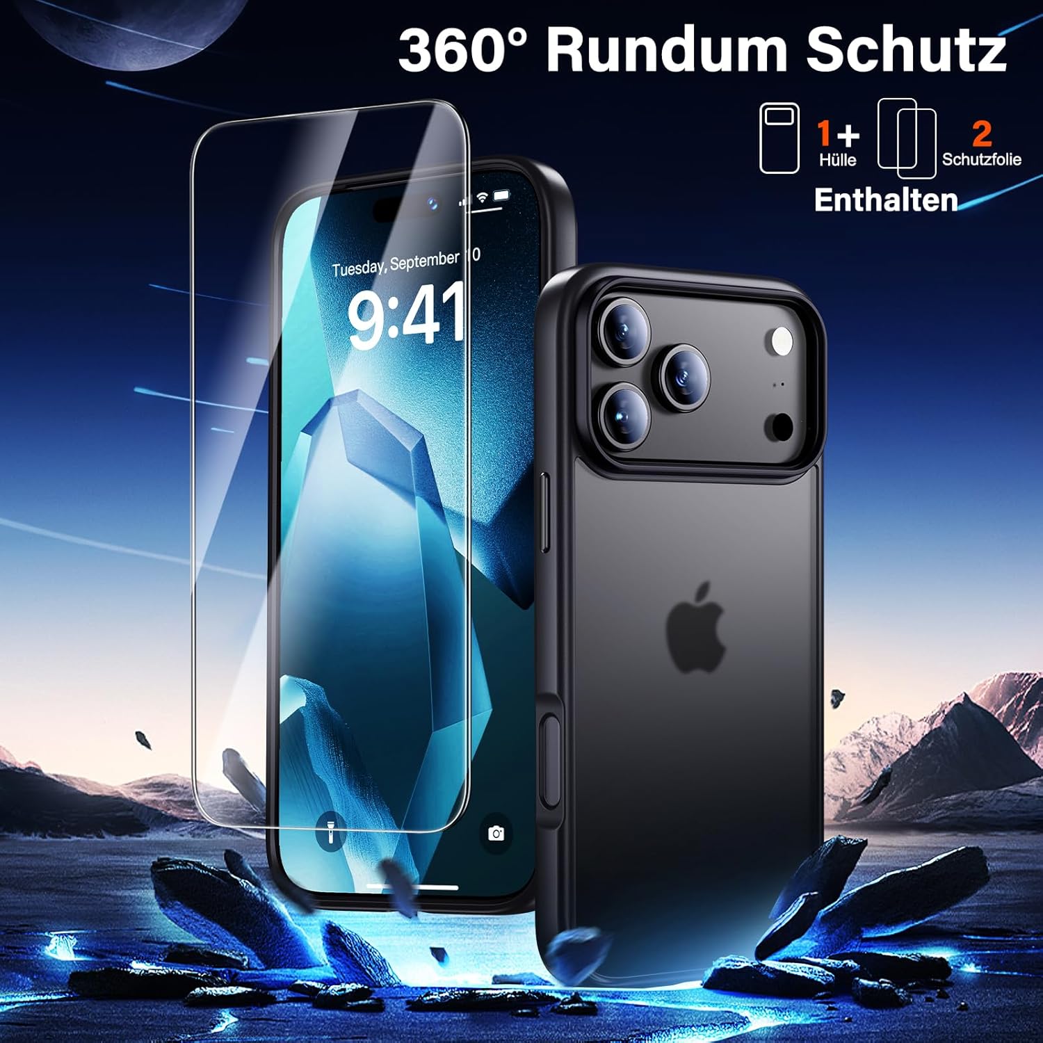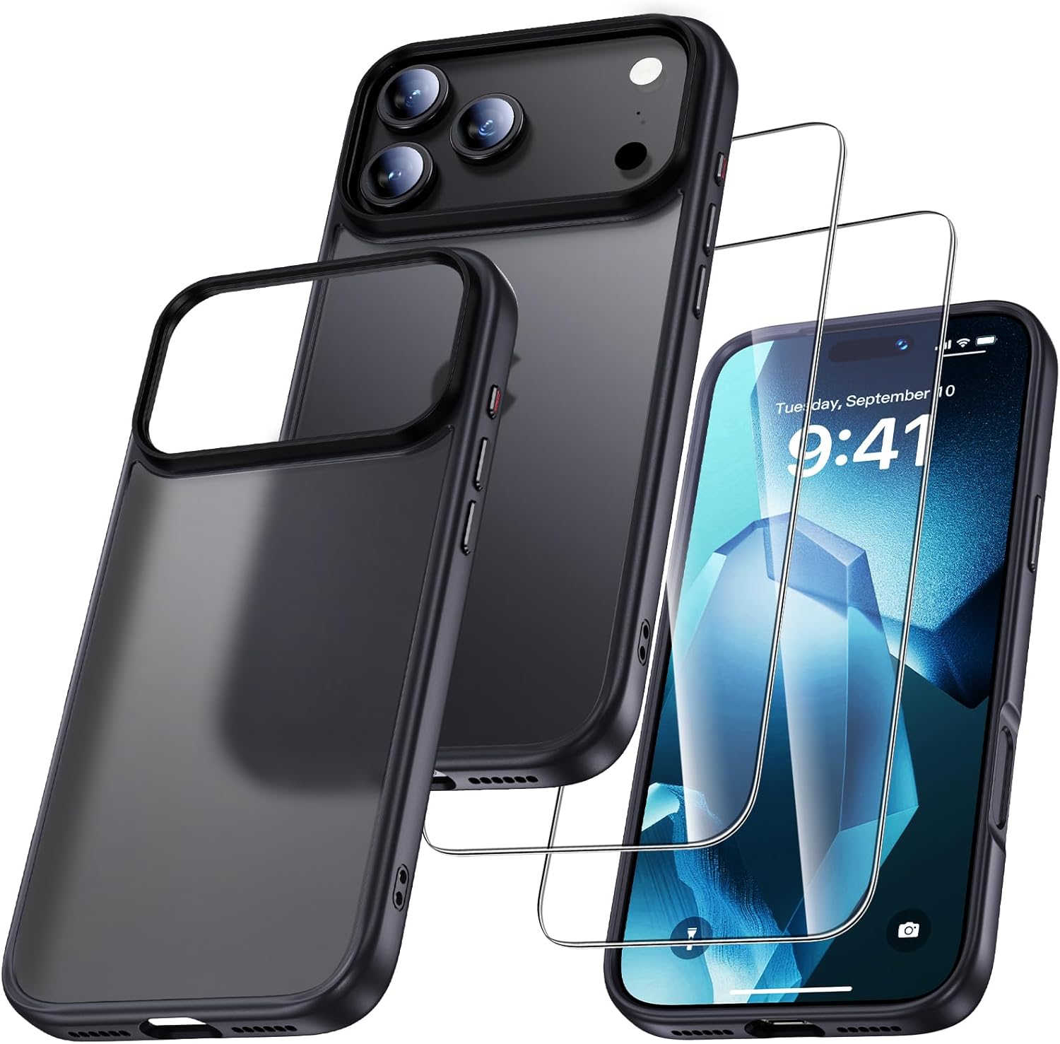 UniqueMe калъф за iPhone 17 Pro - калъф за мобилен телефон за iPhone 17 Pro, комплект калъфи за цялостна защита, защитен калъф, 1 калъф за мобилен телефон и 2 протектора за екран - матово черно