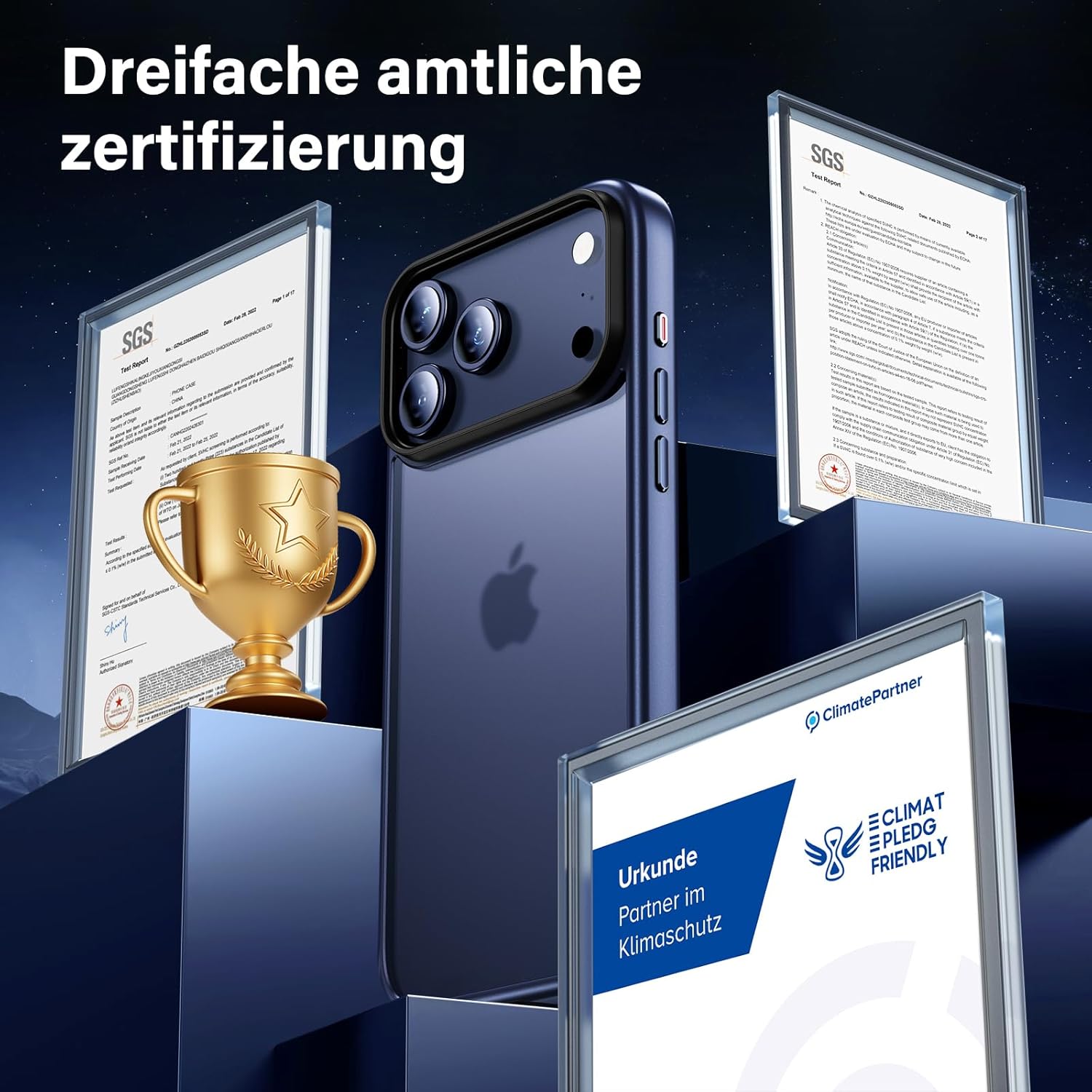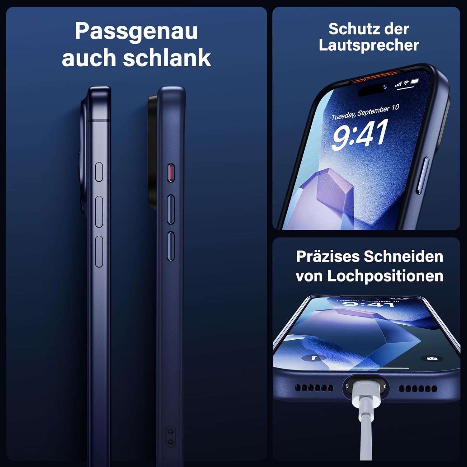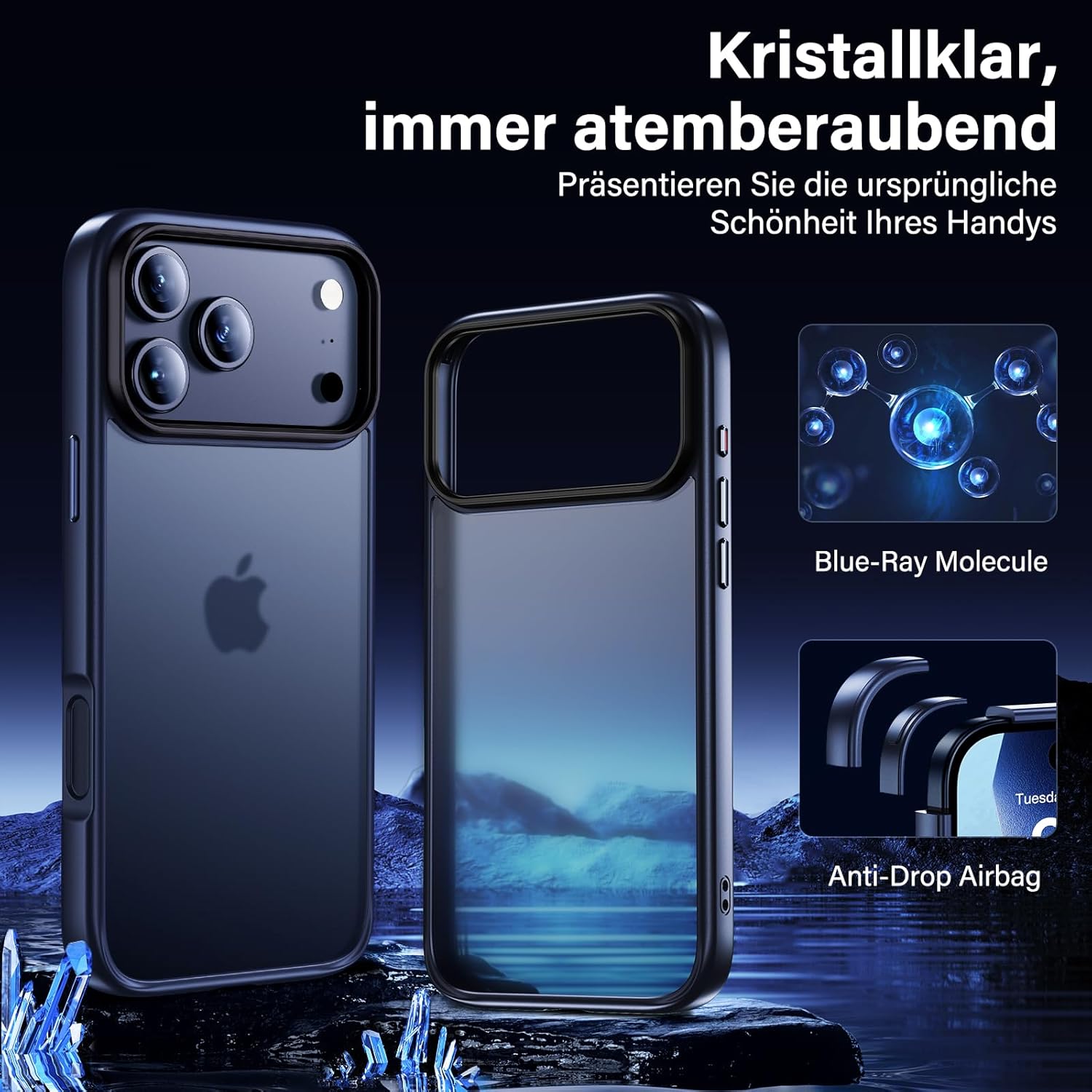 UniqueMe калъф за iPhone 17 Pro - калъф за мобилен телефон за iPhone 17 Pro, комплект калъфи за цялостна защита, защитен калъф, 1 калъф за мобилен телефон и 2 протектора за екран - матово син