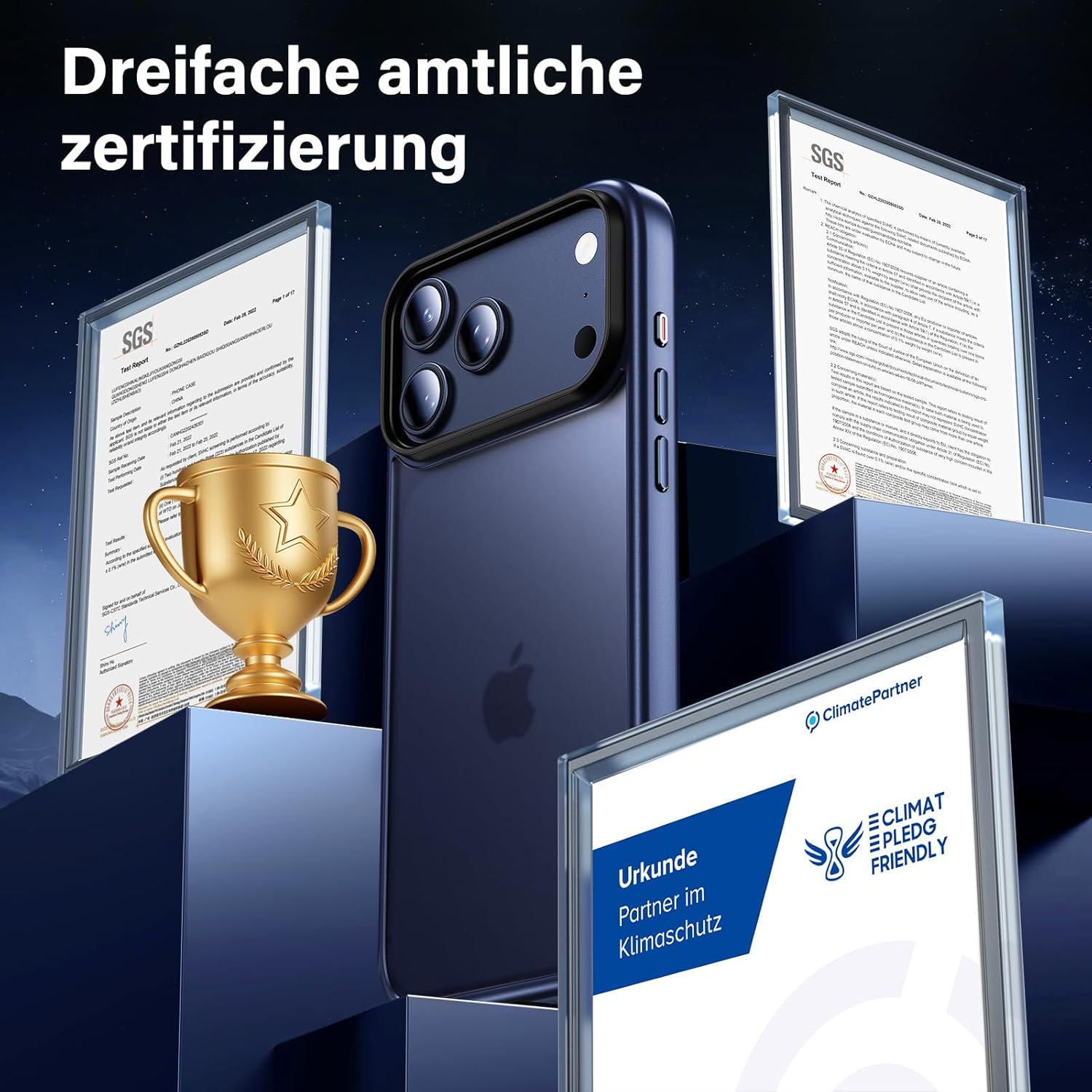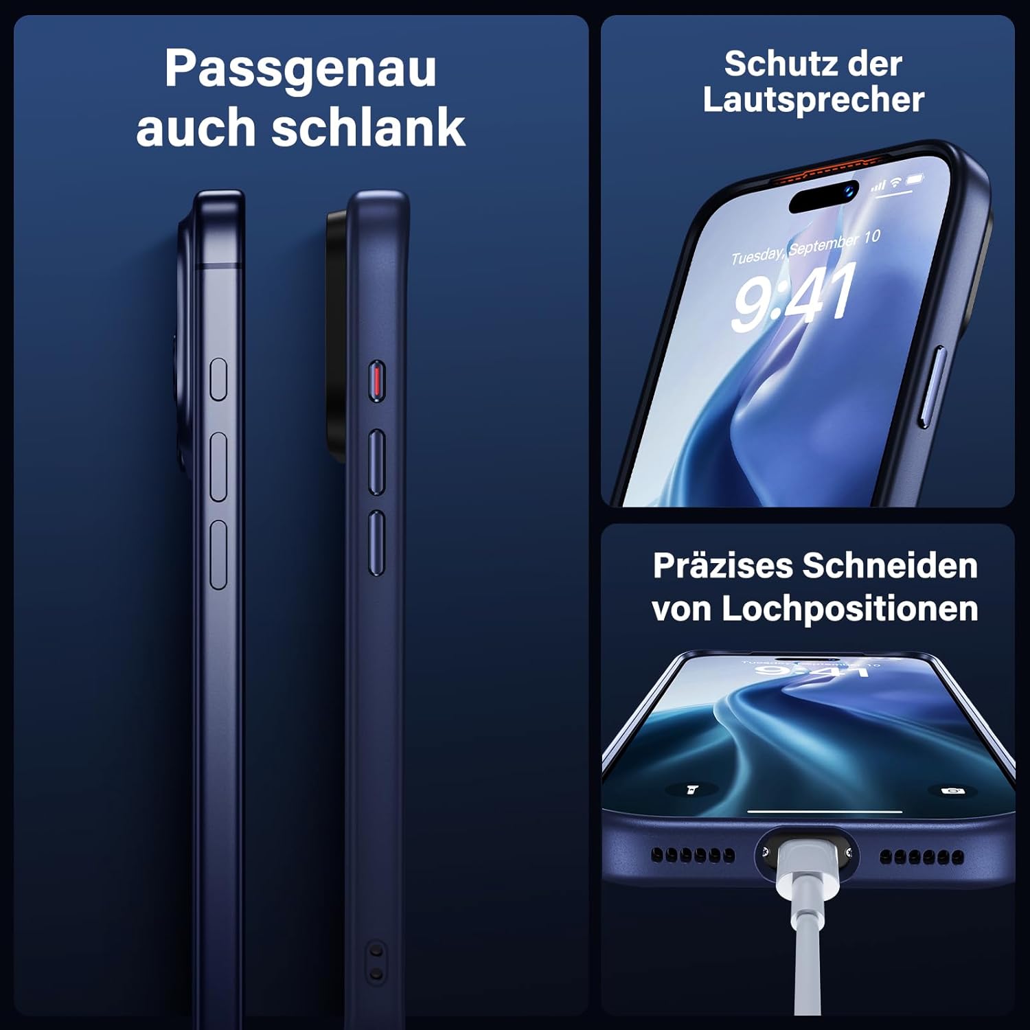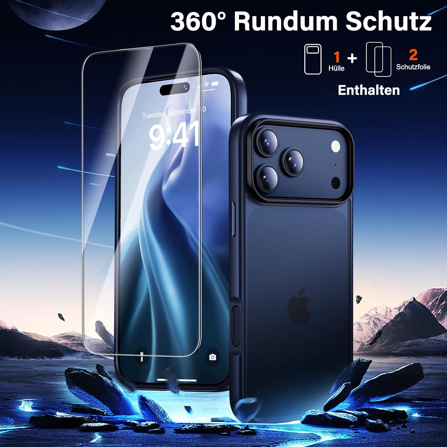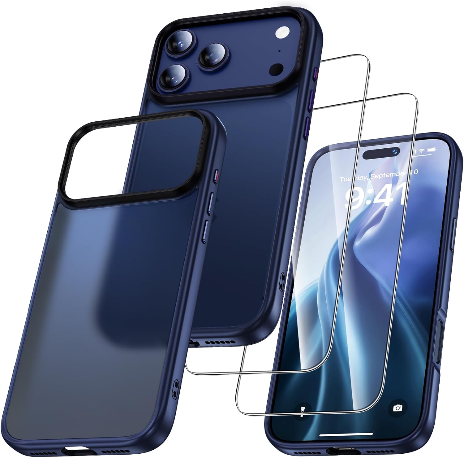 UniqueMe калъф за iPhone 17 Pro Max - калъф за мобилен телефон за iPhone 17 Pro Max, комплект калъфи за цялостна защита, защитен калъф, 1 калъф за мобилен телефон и 2 протектора за екран - матово син