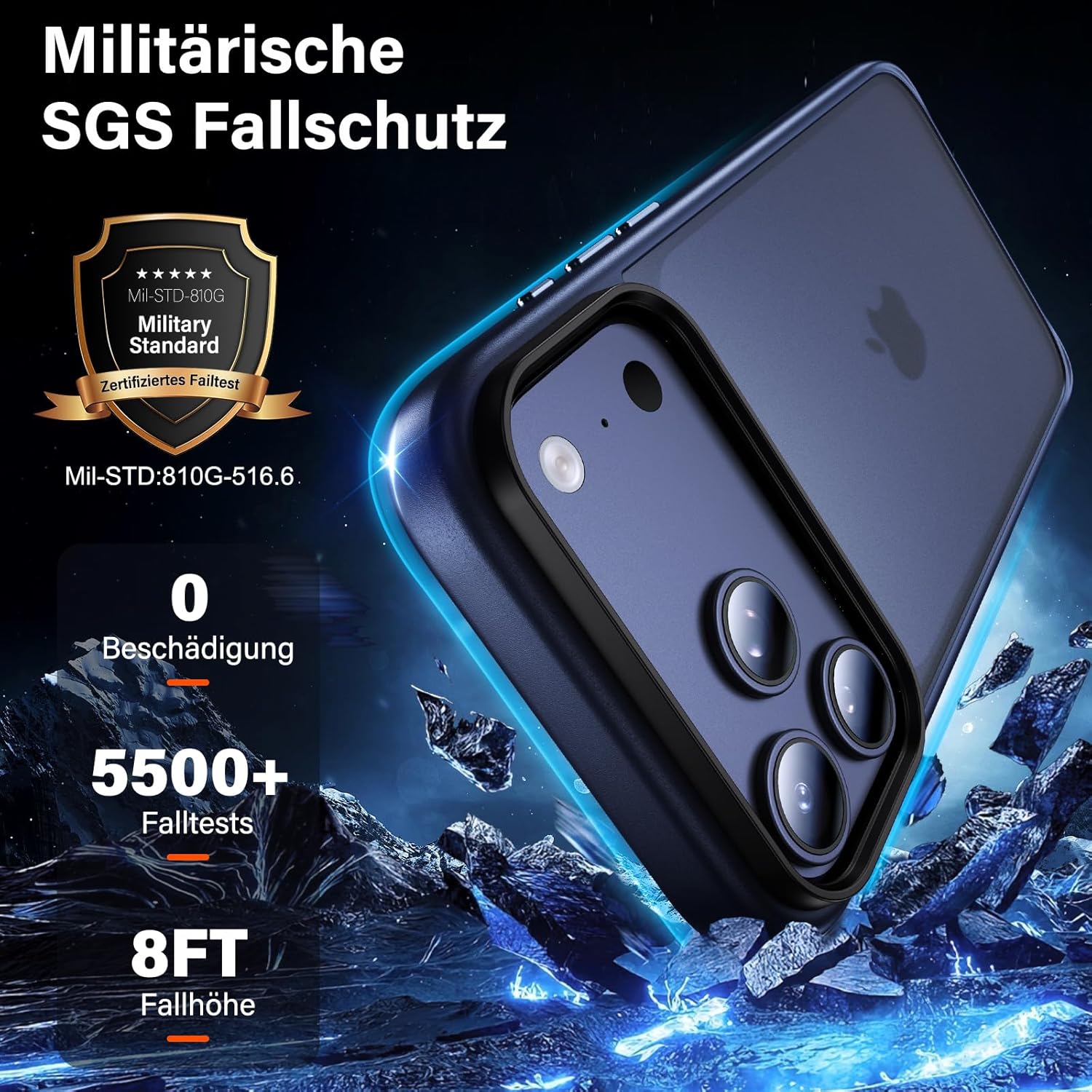 • 8-футова военна защита: този калъф за мобилен телефон за iPhone 17 е изработен от висококачествен, уникален антишоков дизайн на всичките четири ъгъла на калъфа и предпазва телефона ви от случайни падания, удари и драскотини.
