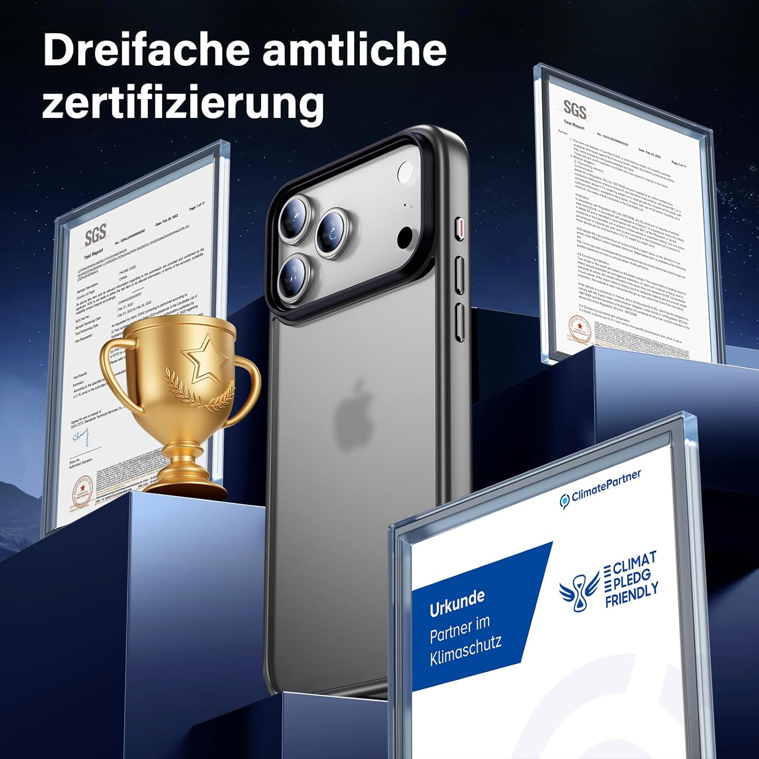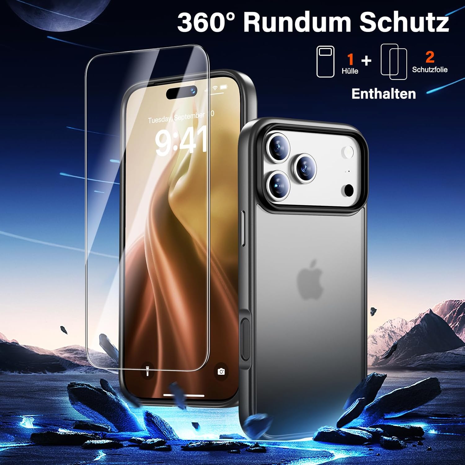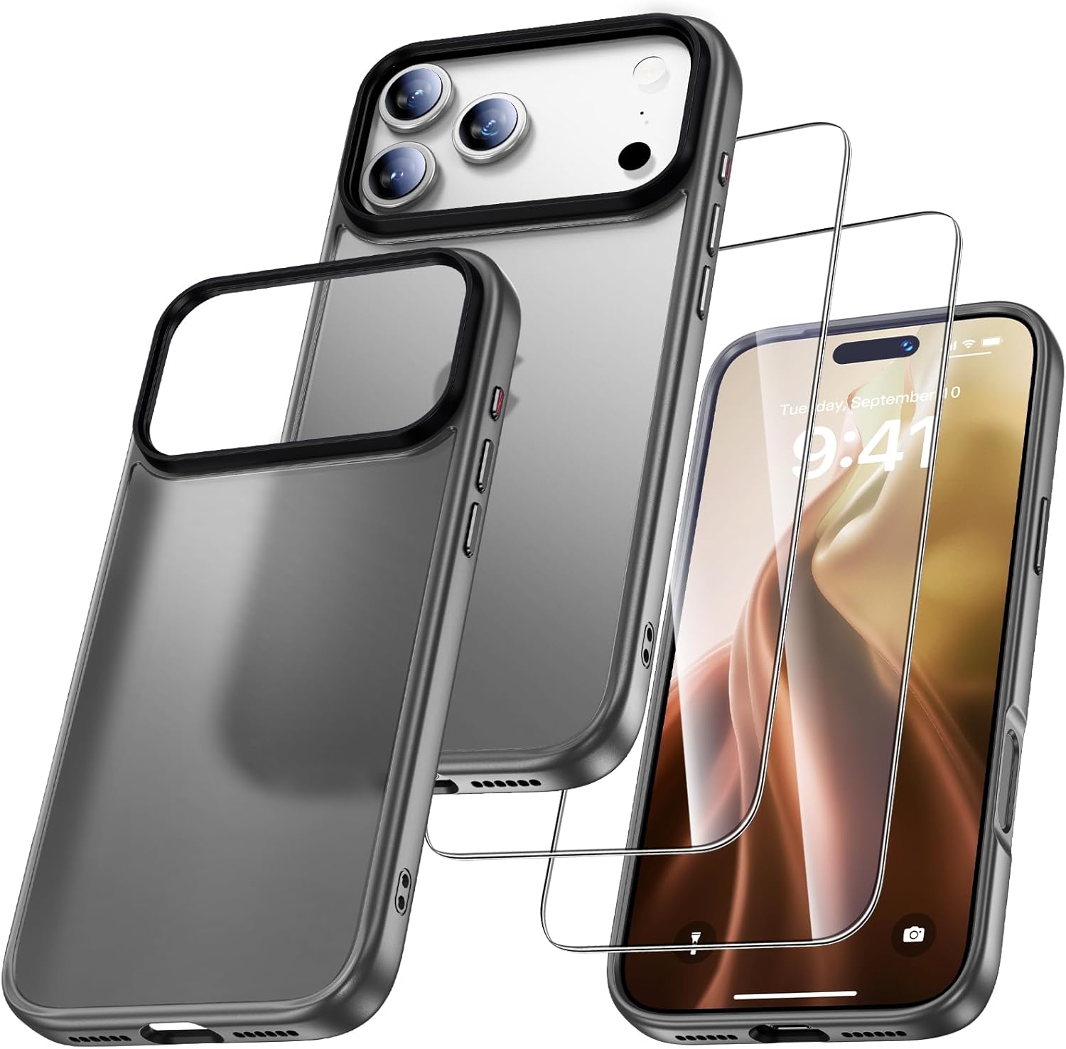 UniqueMe калъф за iPhone 17 Pro Max - калъф за мобилен телефон за iPhone 17 Pro Max, комплект калъфи за цялостна защита, защитен калъф, 1 калъф за мобилен телефон и 2 протектора за екран - матово сив