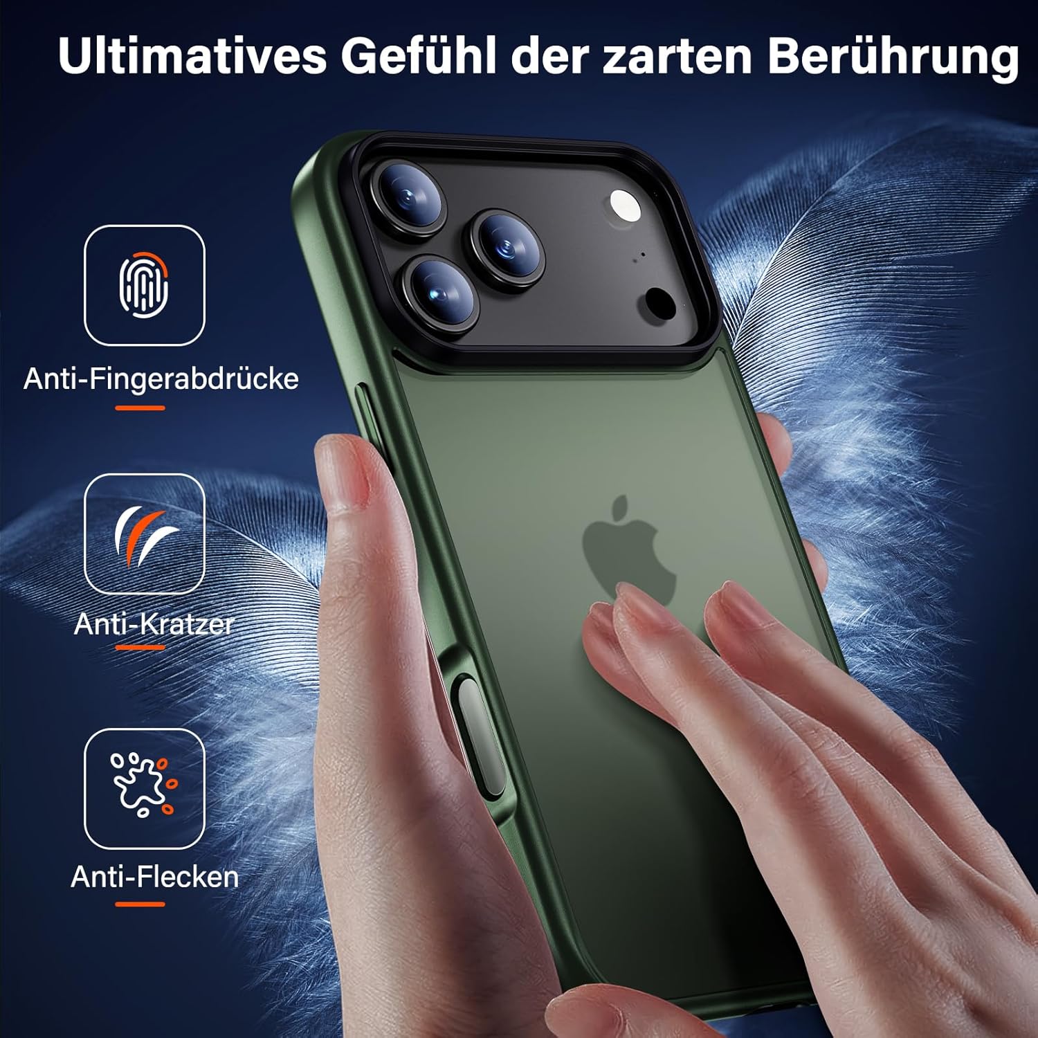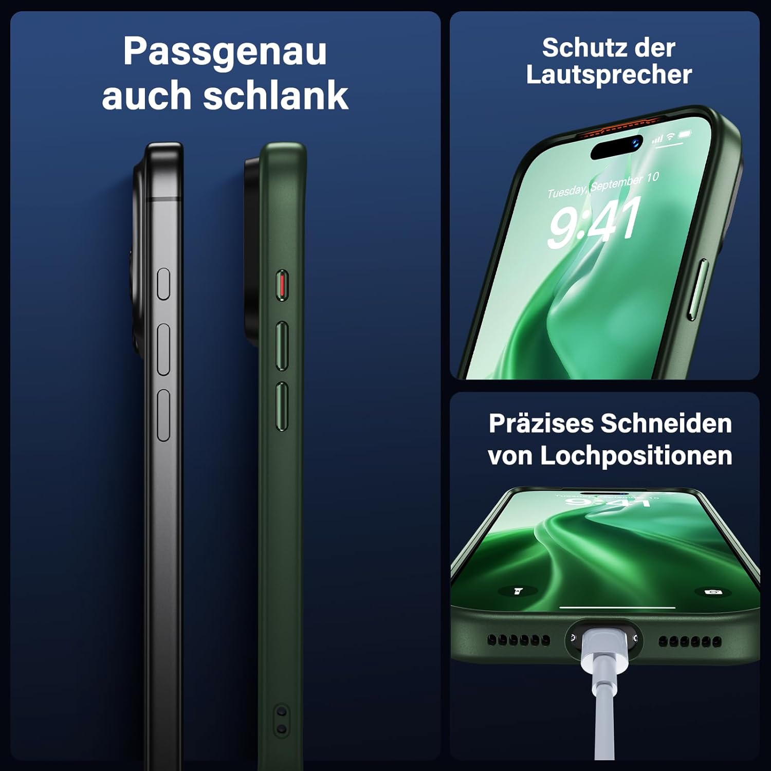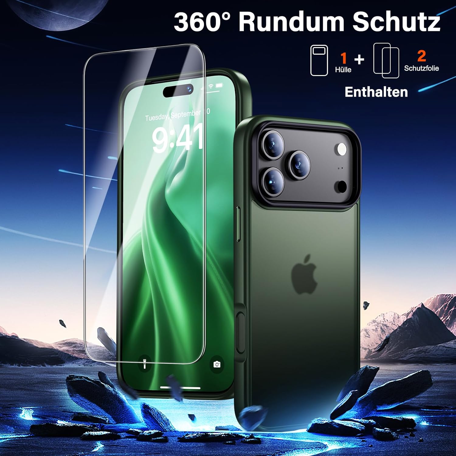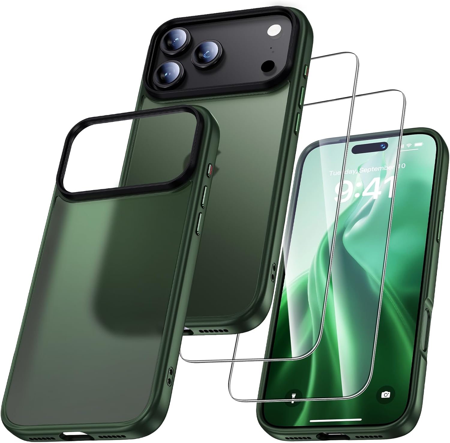UniqueMe калъф за iPhone 17 Pro Max - калъф за мобилен телефон за iPhone 17 Pro Max, комплект калъфи за цялостна защита, защитен калъф, 1 калъф за мобилен телефон и 2 протектора за екран - матово зелен