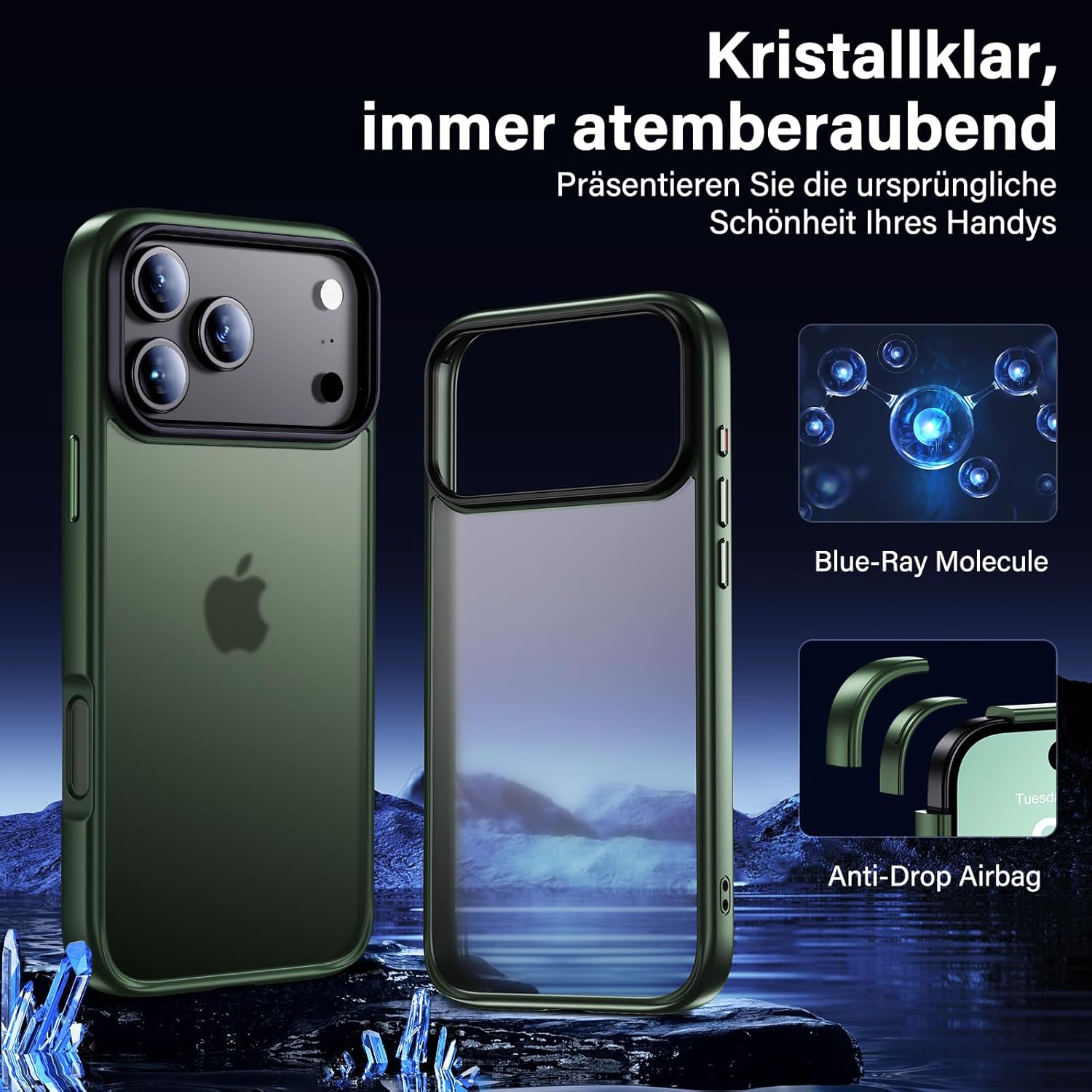 • Блестящ като кристал: Кейсът UniqueMe за iPhone 17 е изработен от високопропусклив молекулярен материал с нано антиоксидантен слой и технология против пожълтяване, за да запази калъфа ви да изглежда като нов и чист.