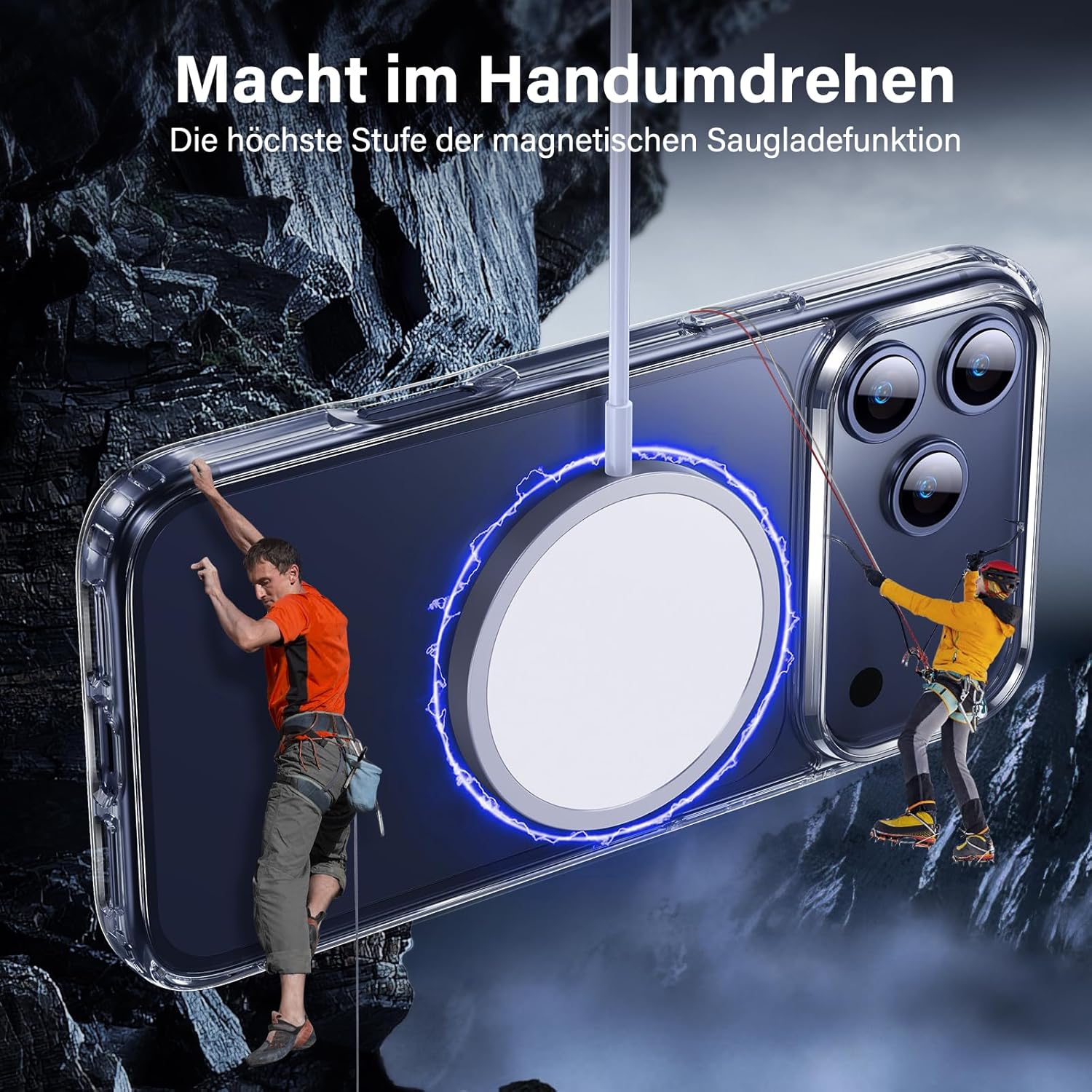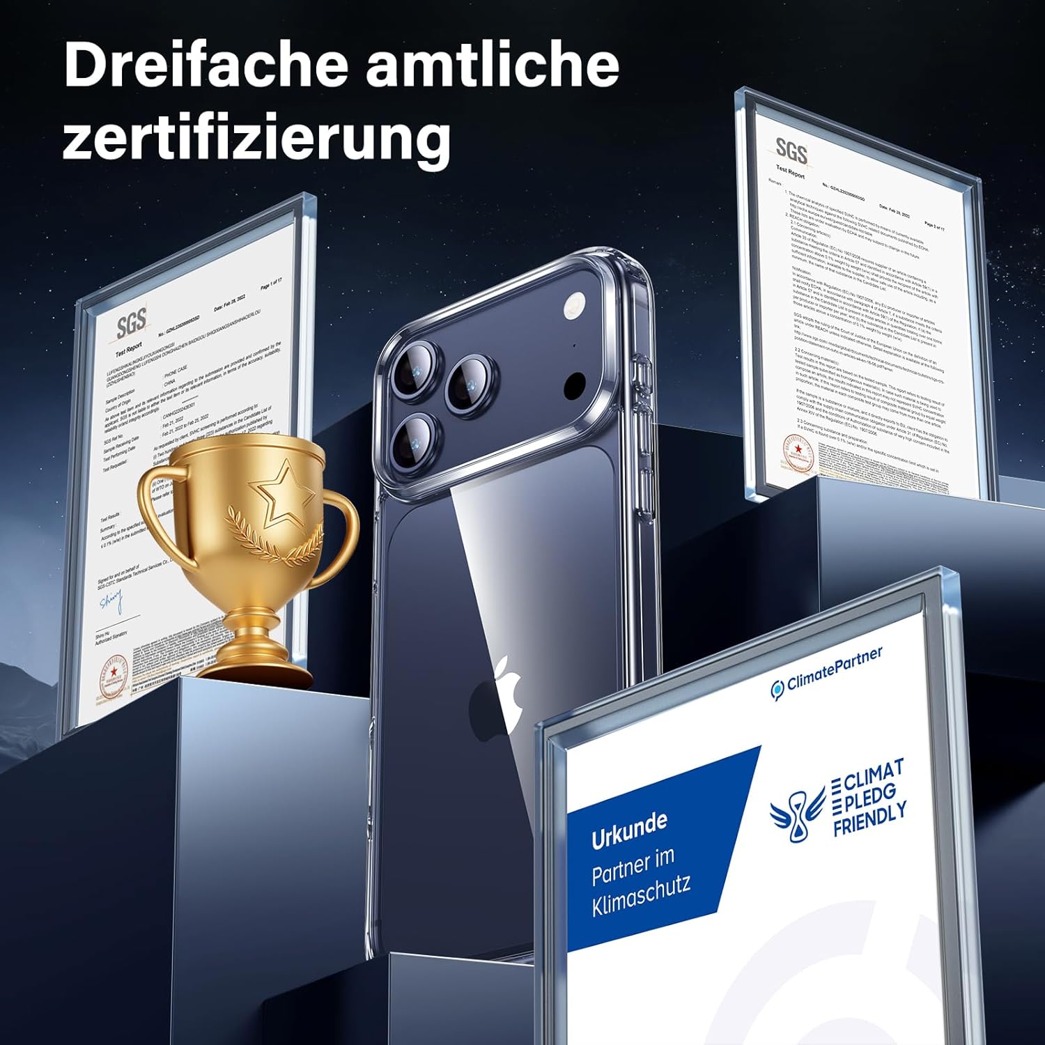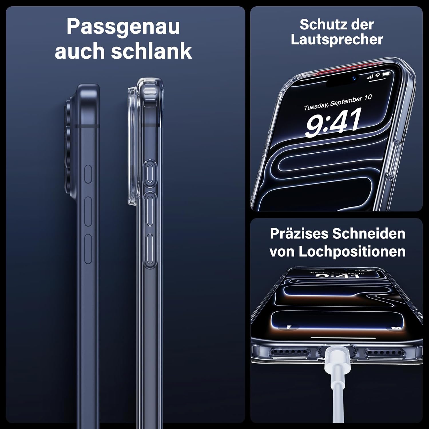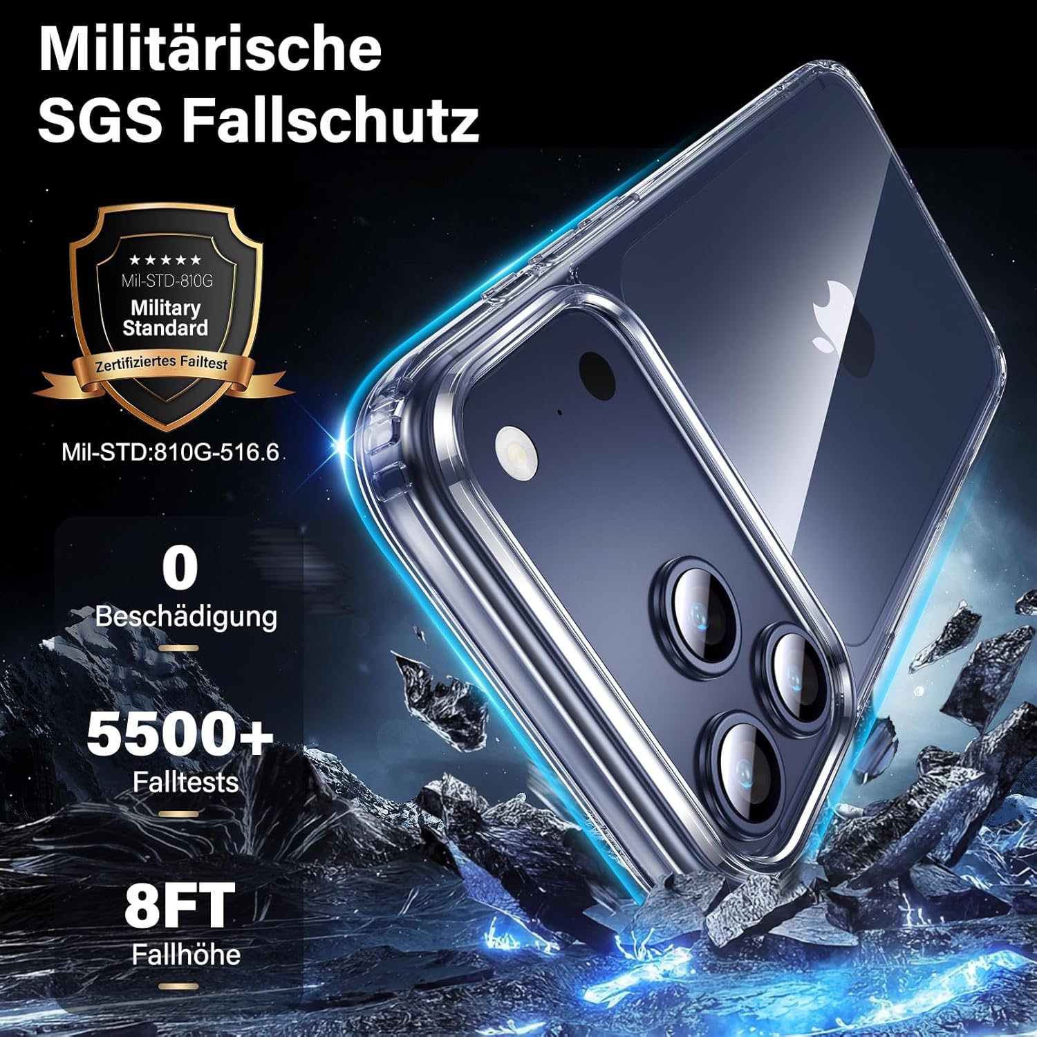 UniqueMe калъф за iPhone 17 Pro Max - калъф за мобилен телефон за iPhone 17 Pro Max, комплект калъфи за цялостна защита, защитен калъф, 1 калъф за мобилен телефон и 2 протектора за екран - прозрачен