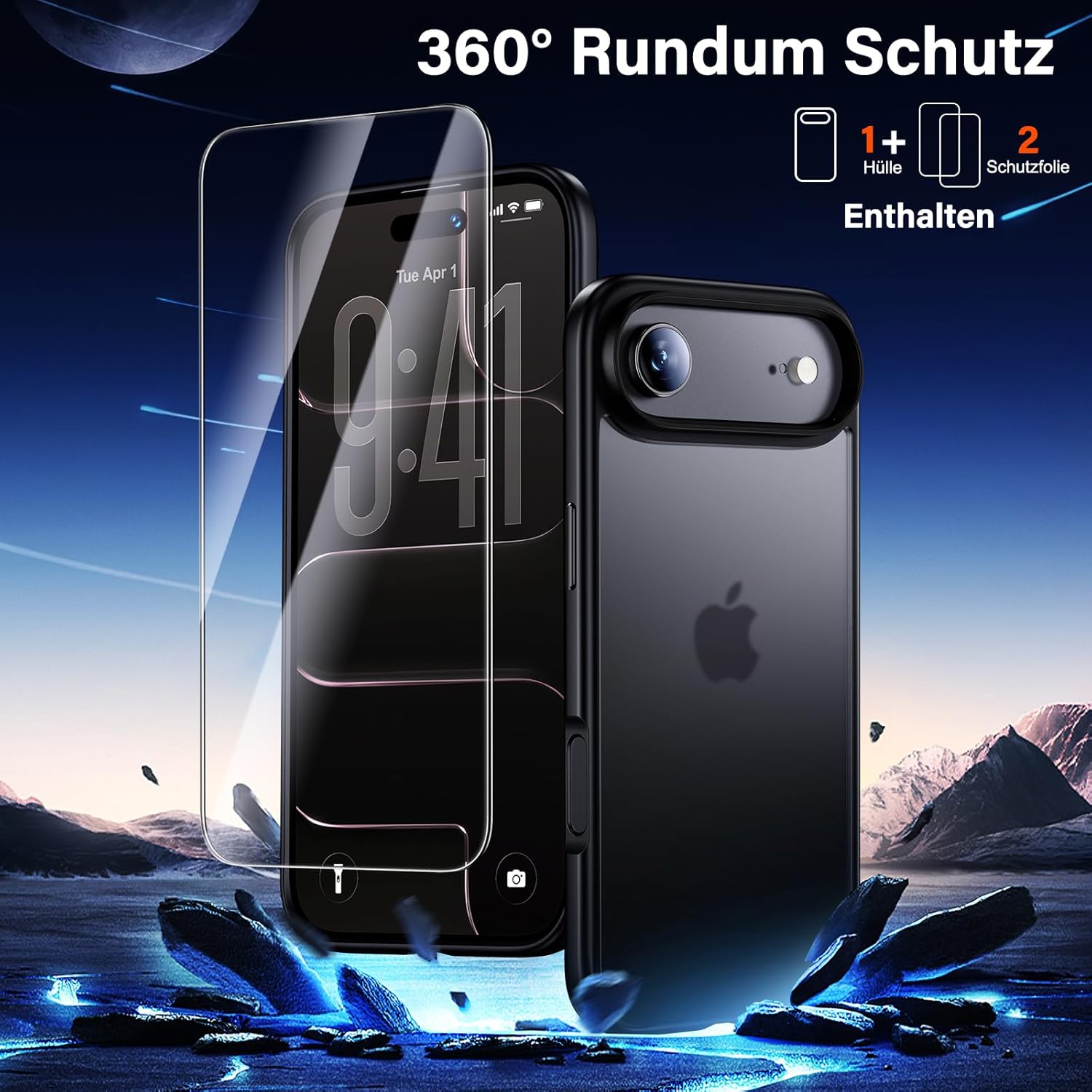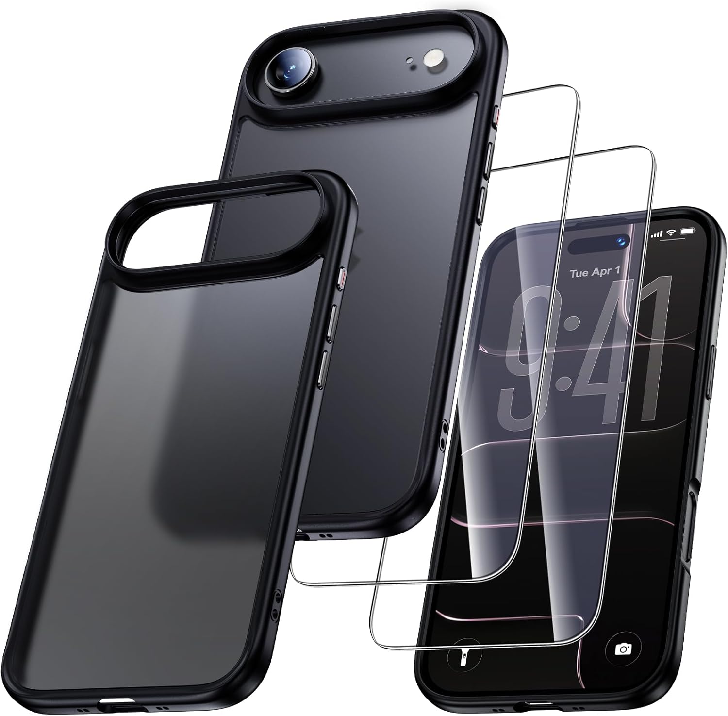 UniqueMe за 17 Air калъф - калъф за мобилен телефон за 17 Air, комплект 5 в 1, защитен калъф за цялостна защита, 1 калъф за мобилен телефон, 2 протектора за екран и 2 протектора за камера - матово черно