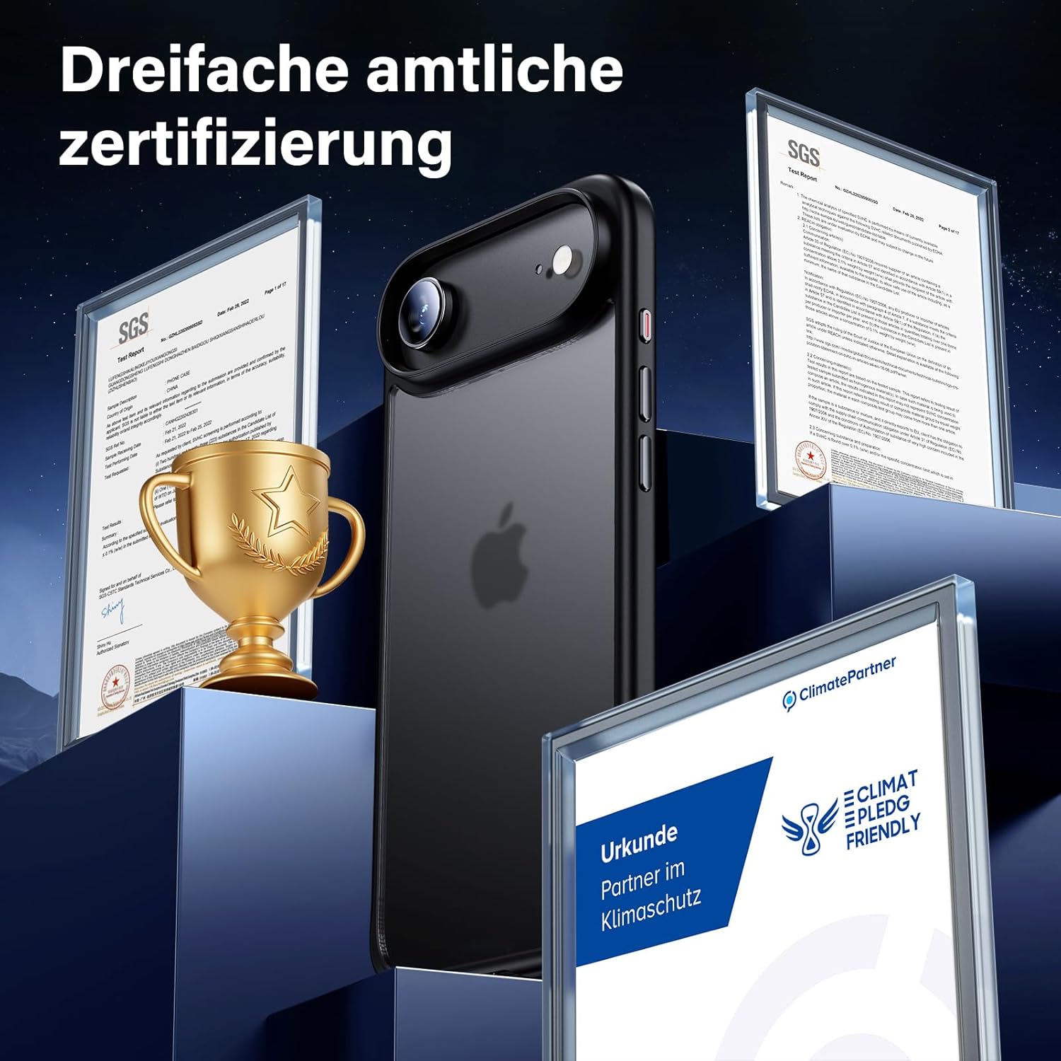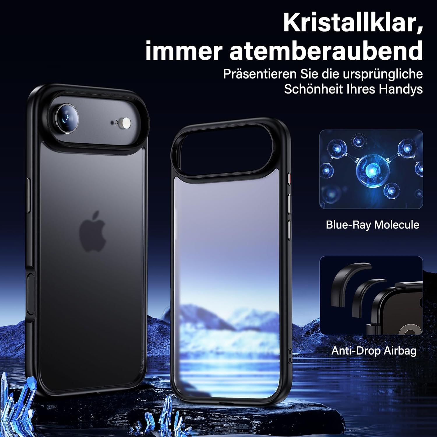 • 8-футова военна защита: този калъф за мобилен телефон за iPhone 17 е изработен от висококачествен, уникален антишоков дизайн на всичките четири ъгъла на калъфа и предпазва телефона ви от случайни падания, удари и драскотини.