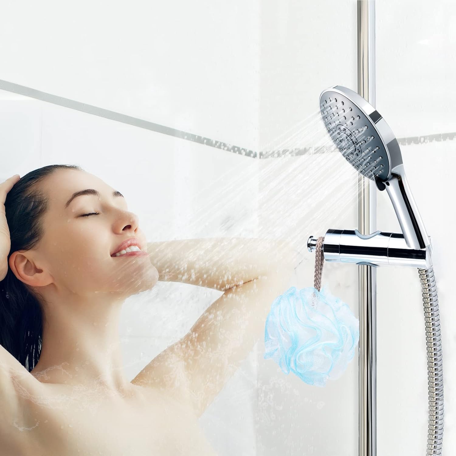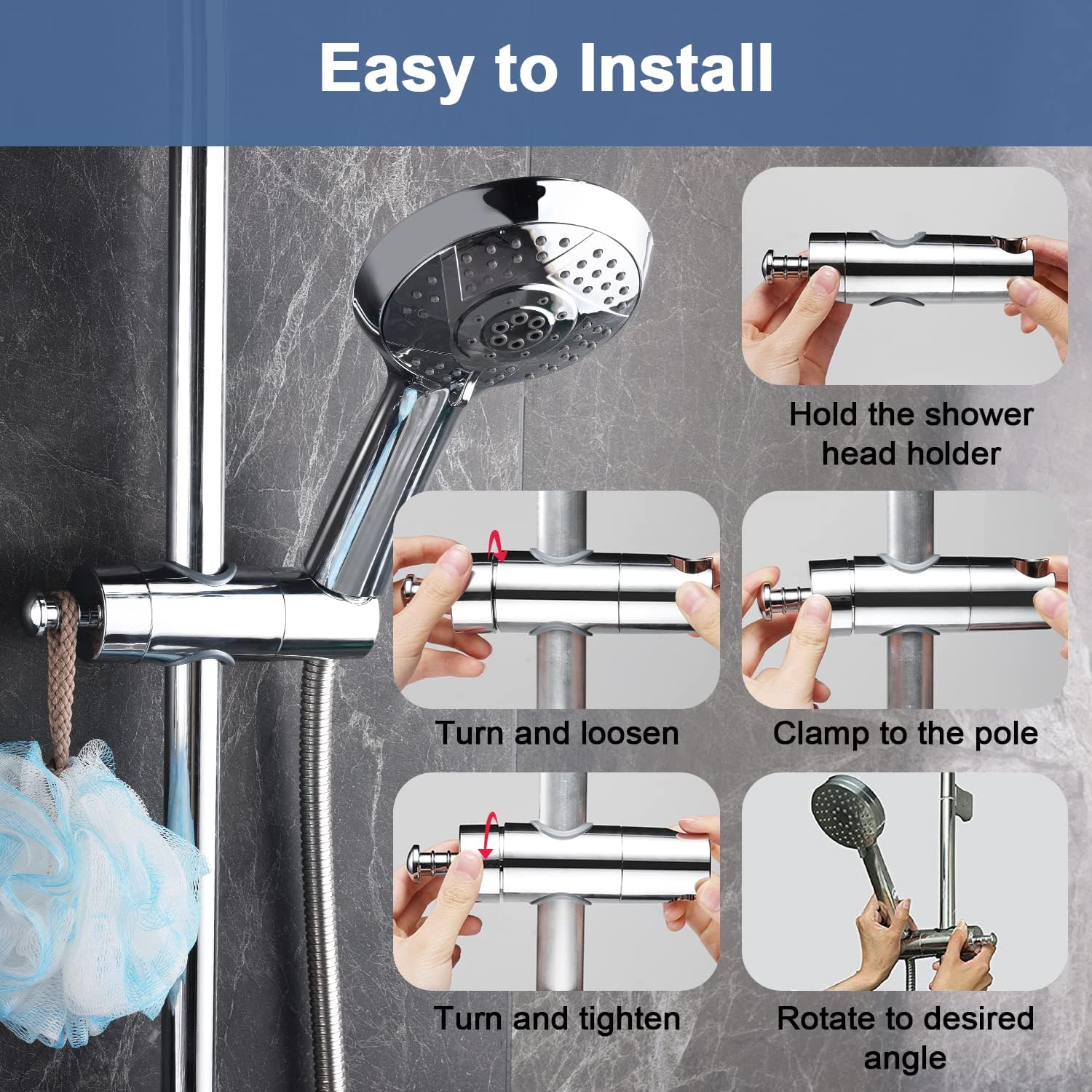 • Здрав и висококачествен: здрав и издръжлив, с красив външен вид, държачът за душ изглежда семпъл, но е изработен от висококачествен ABS материал. Изработен от хром, той има добър, ярък завършек и удължава издръжливостта си, като е тестван 20 000 пъти.