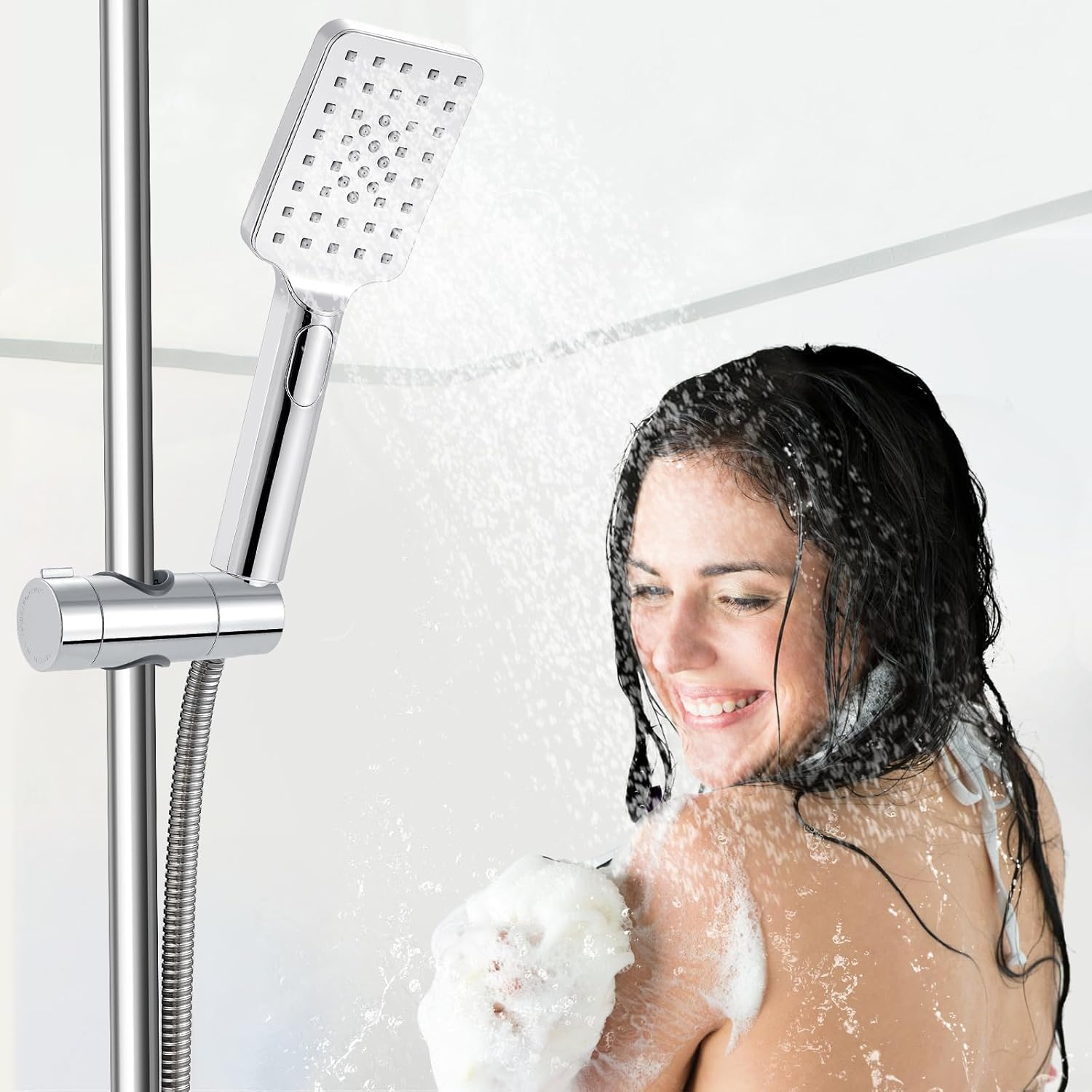 • Здрав и висококачествен: здрав и издръжлив, с красив външен вид, държачът за душ изглежда семпъл, но е изработен от висококачествен ABS материал. Изработен от хром, той има добър, ярък завършек и удължава издръжливостта си, като е тестван 20 000 пъти.