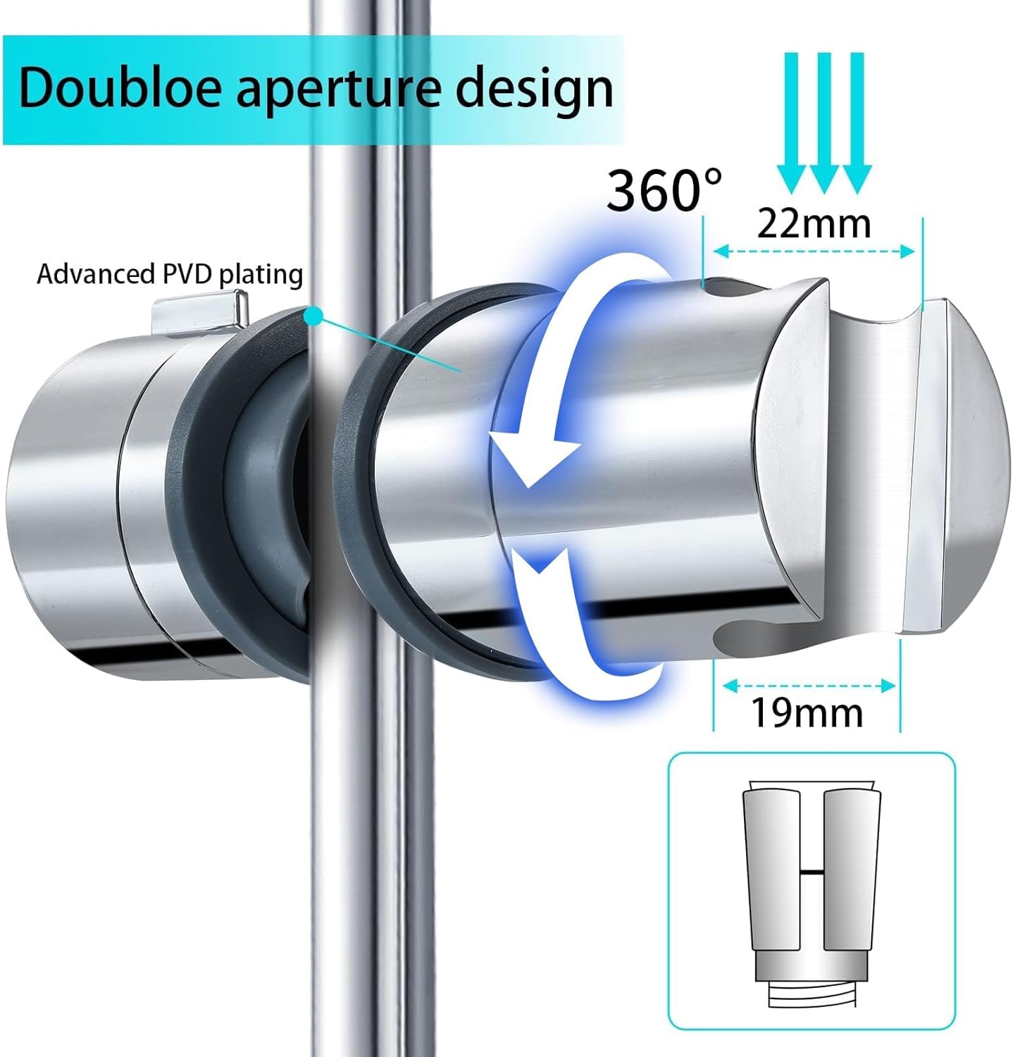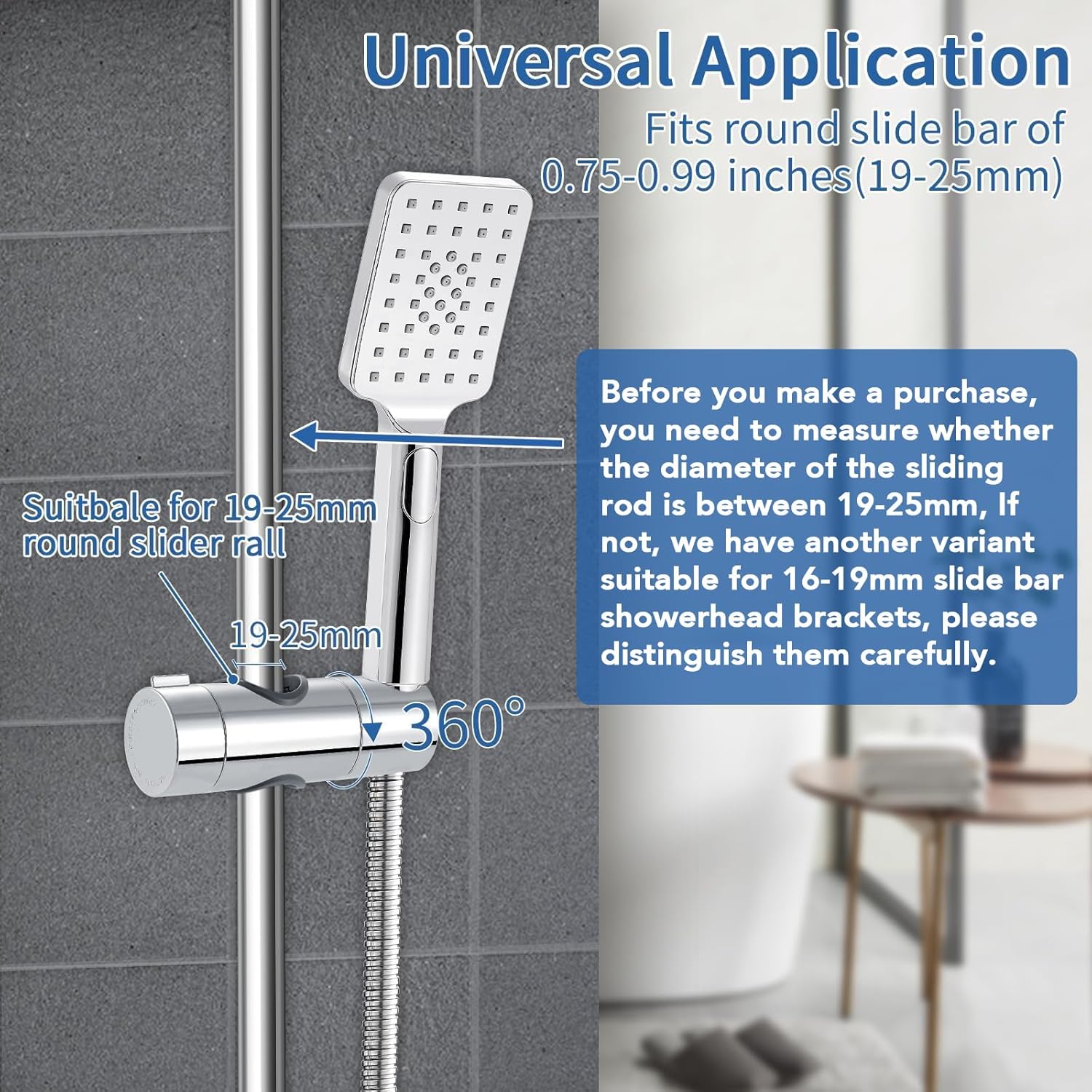 Универсален държач за ръчен душ Joyoldelf, регулируем държач за душ, въртящ се на 360° държач за душ за плъзгаща се дръжка, външен диаметър 18-25 мм, ABS пластмаса, хромиран