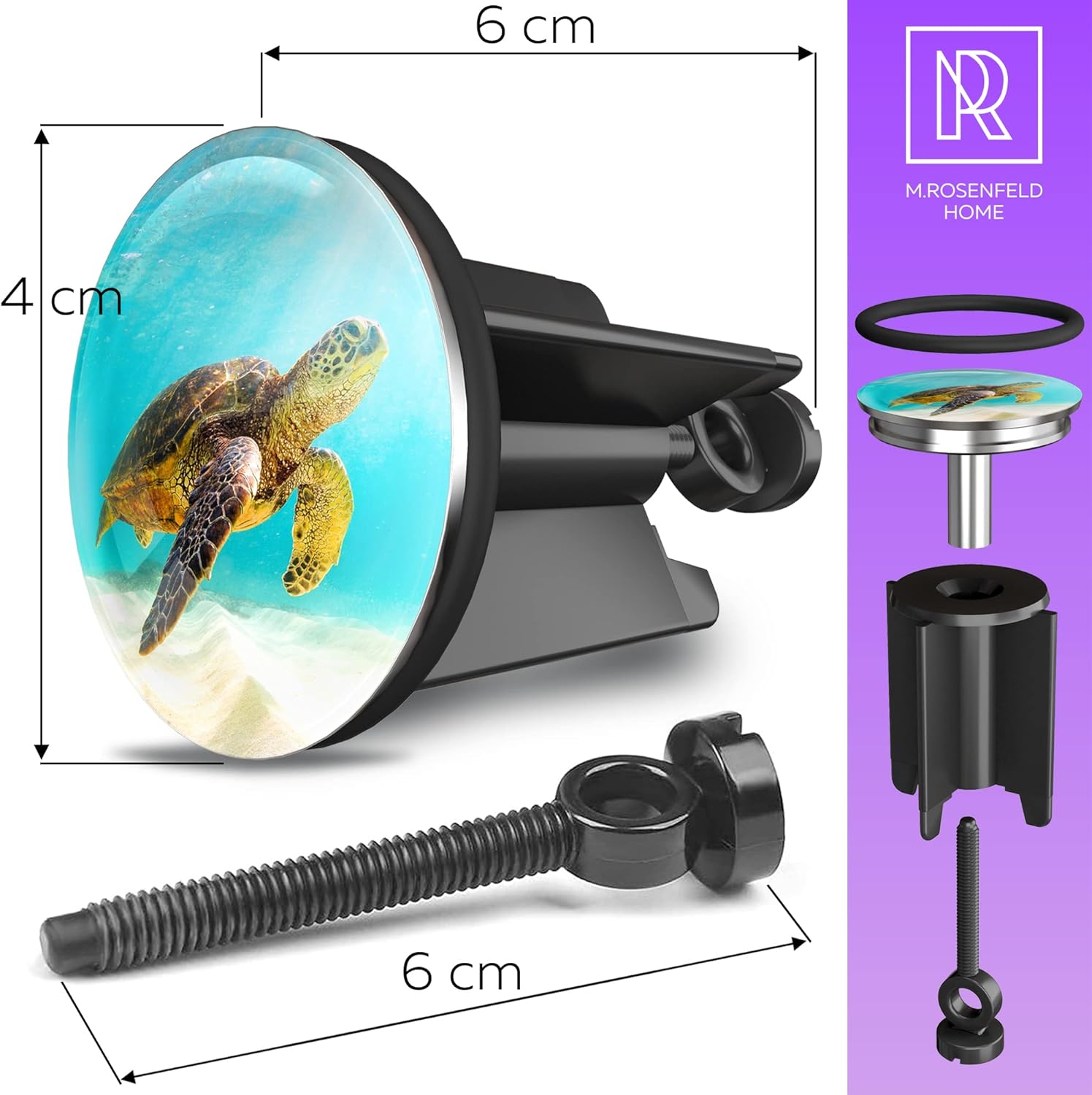 Универсален тапа за мивка 40 мм с мотив костенурка - Хромирана тапа за сифон "Turtle" - Изработена от месинг, Универсална с гума за баня и бидета - Ексцентрична тапа