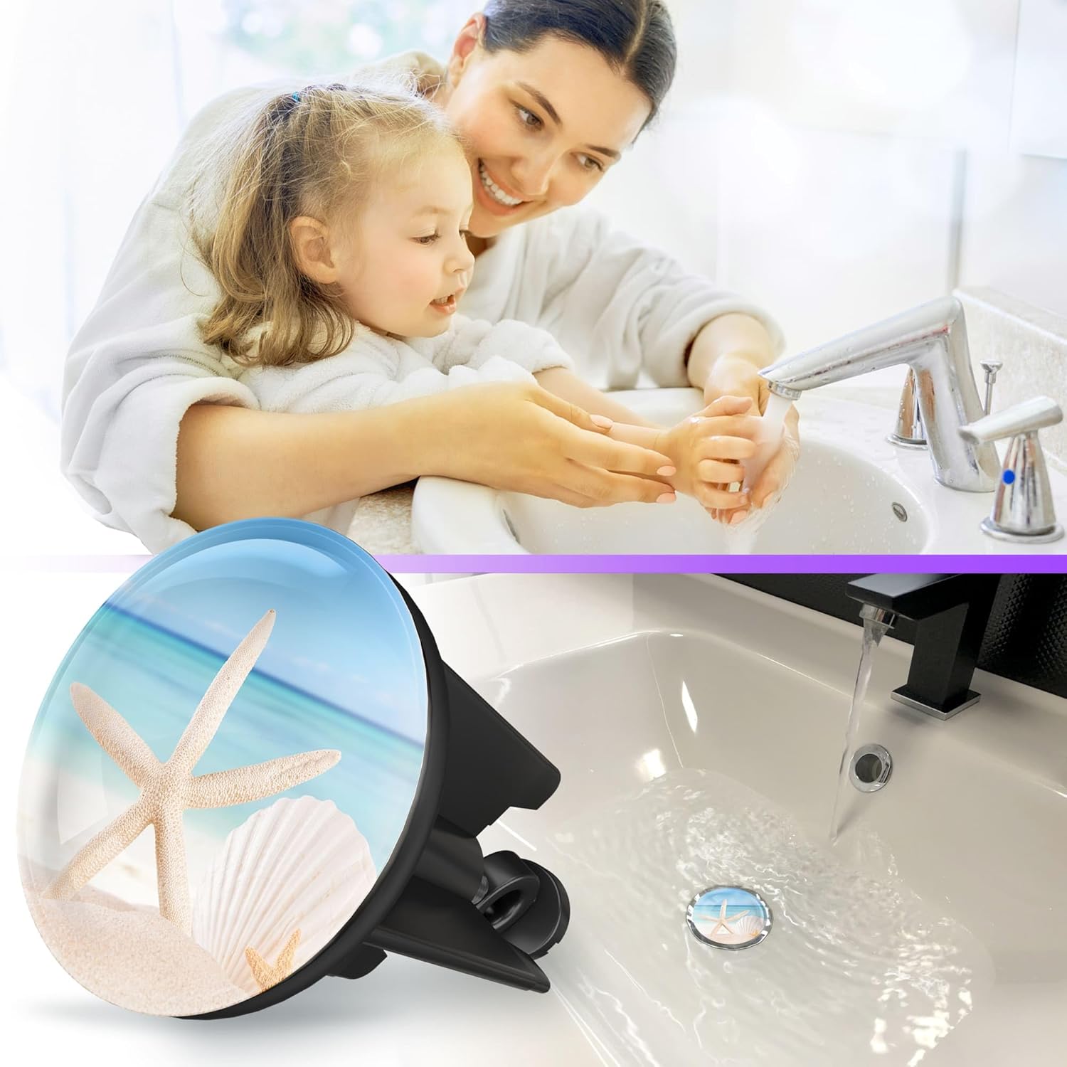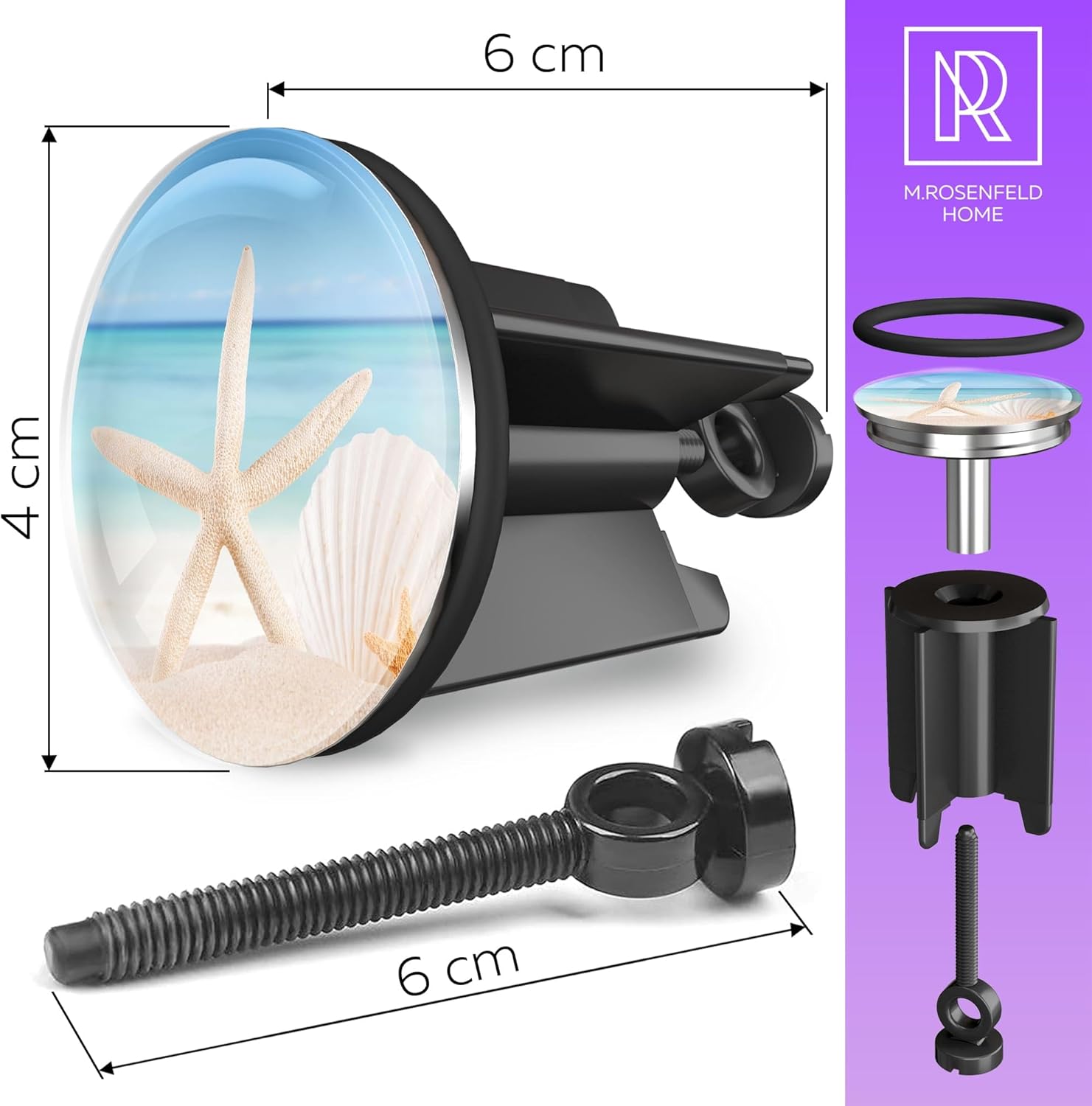 Универсален тапа за мивка 40 мм с мотив морска звезда - Хромирана тапа за оттичане с мотив морска звезда - Изработена от месинг, Универсална с гума за мивки и бидета в банята - Ексцентрична тапа