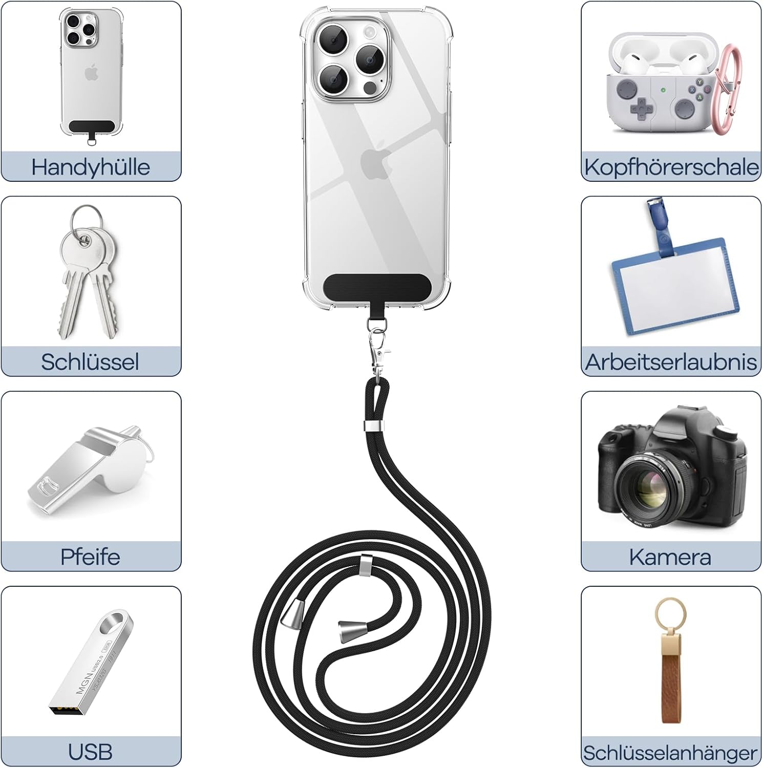 • Подходящ за всички смартфони: универсална каишка за мобилен телефон за всички мобилни телефони с пълен калъф от 4 до 6,7 инча. Включително за iPhone/ Samsung Galaxy/ Google/ LG/ Huawei/ Xiaomi/ и др. Забележка: Не се поддържат калъфи за телефони с половин капак.