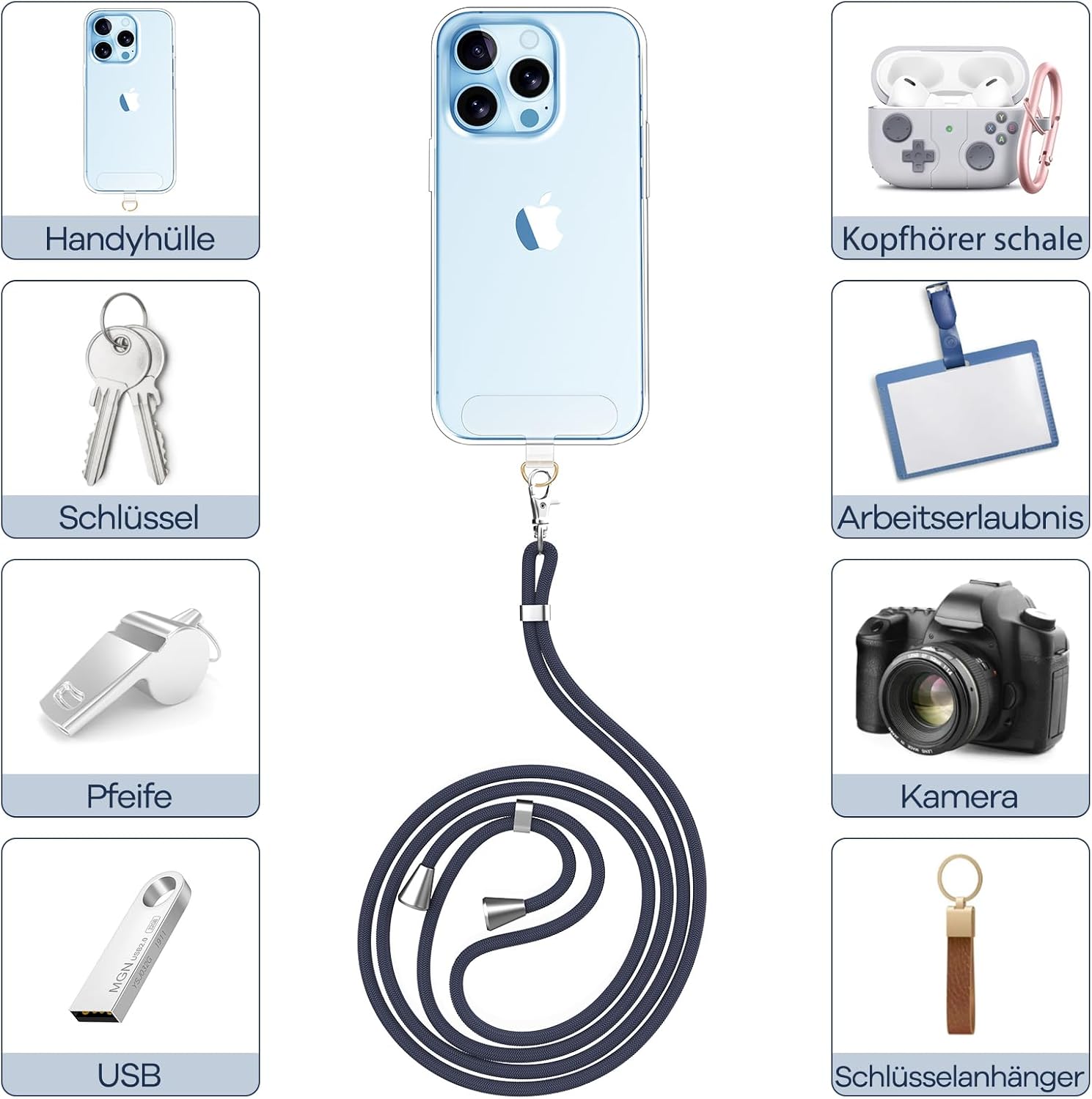 • Практична и стилна: тази универсална връзка за мобилен телефон през рамо може да се носи по четири начина: като връзка през рамо, като презрамка, като обикновена каишка и като каишка за китка. Връзката за мобилен телефон е съвместима с всички мобилни телефони, ключове, лични карти и др. Перфектна за всяка ситуация в живота, независимо дали е работа, свободно време, пазаруване, парти или спорт.