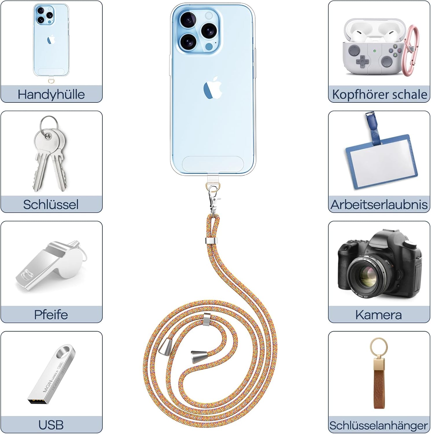 • Практична и стилна: тази универсална връзка за мобилен телефон през рамо може да се носи по четири начина: като връзка през рамо, като презрамка, като обикновена каишка и като каишка за китка. Връзката за мобилен телефон е съвместима с всички мобилни телефони, ключове, лични карти и др. Перфектна за всяка ситуация в живота, независимо дали е работа, свободно време, пазаруване, парти или спорт.