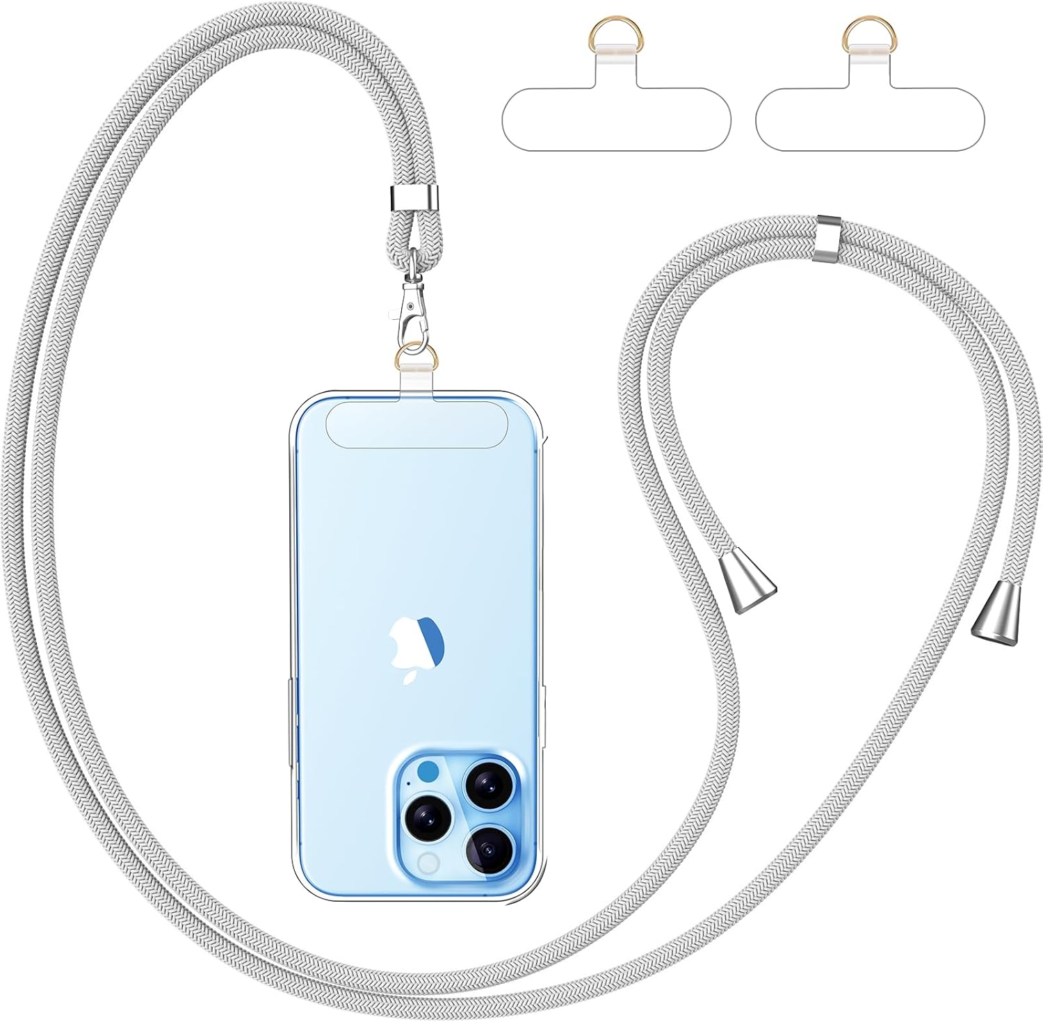 Универсална каишка за мобилен телефон, Каишка за мобилен телефон с 2 универсални лепенки, Каишка за мобилен телефон с калъф, Регулируема и подвижна, Светло сива + прозрачна
