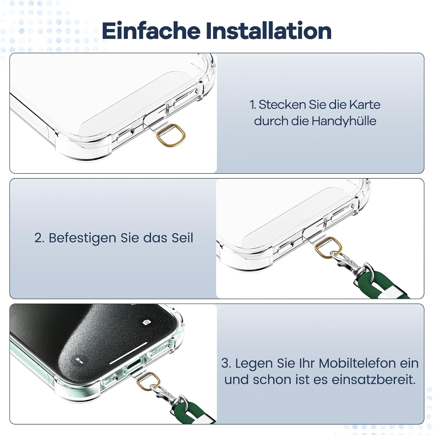 • Практична и стилна: тази универсална връзка за мобилен телефон през рамо може да се носи по четири начина: като връзка през рамо, като презрамка, като обикновена каишка и като каишка за китка. Връзката за мобилен телефон е съвместима с всички мобилни телефони, ключове, лични карти и др. Перфектна за всяка ситуация в живота, независимо дали е работа, свободно време, пазаруване, парти или спорт.