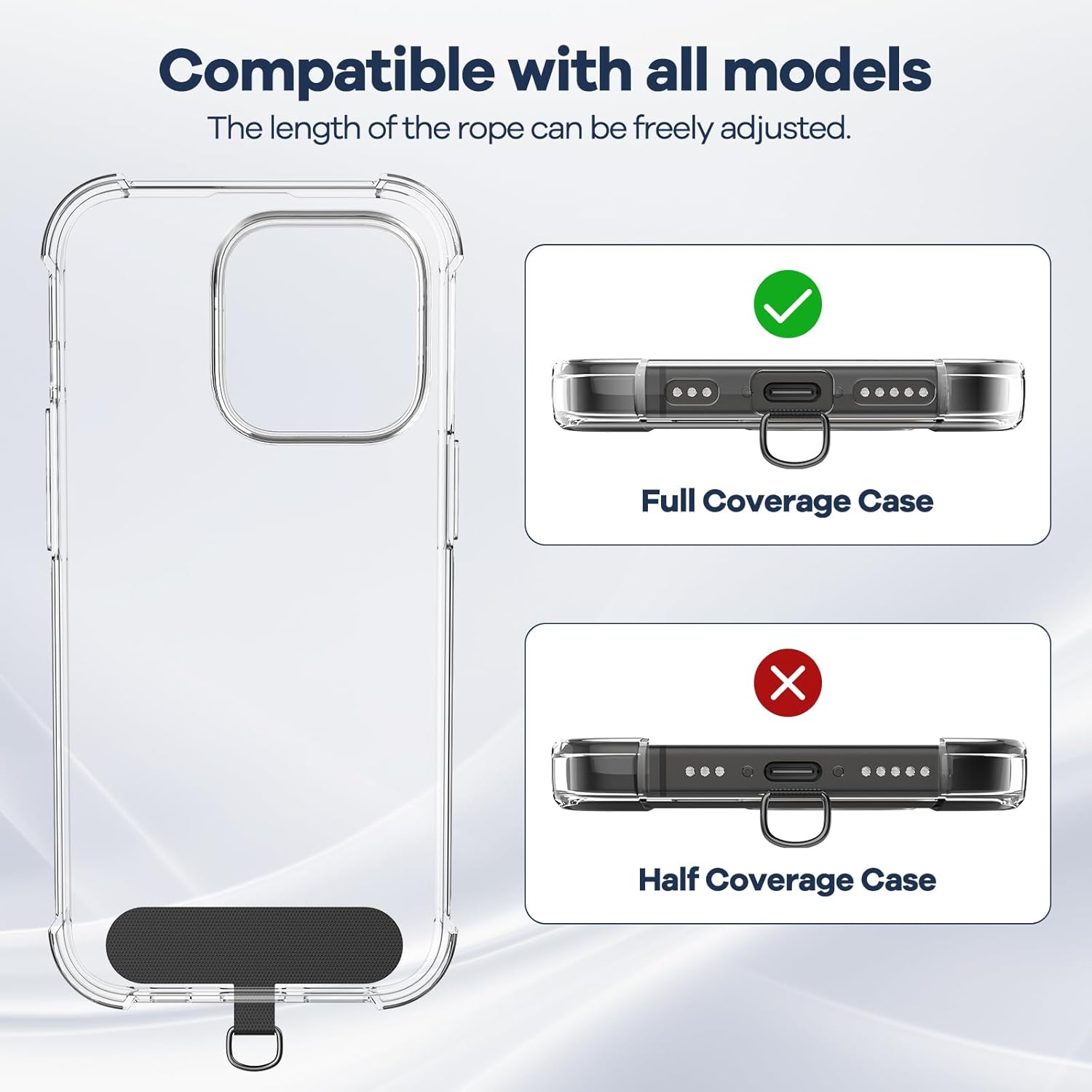• Подходящ за всички смартфони: универсална каишка за мобилен телефон за всички мобилни телефони с пълен калъф от 4 до 6,7 инча. Включително за iPhone/ Samsung Galaxy/ Google/ LG/ Huawei/ Xiaomi/ и др. Забележка: Не се поддържат калъфи за телефони с половин капак.