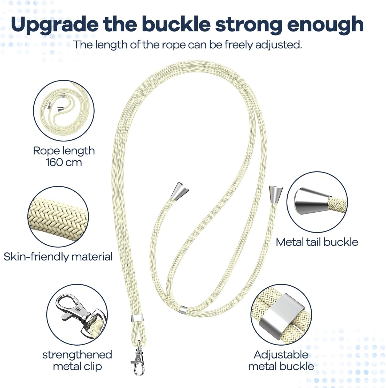 • Висококачествен материал: въжето е изтъкано от 100% полиестер, лентата е с дължина 1,6 метра и е регулируема, издръжлива и без мирис. Мекият полиестерен шнур осигурява комфорт на врата. Прибираща се дължина и подвижна катарама, можете да го използвате както желаете.
