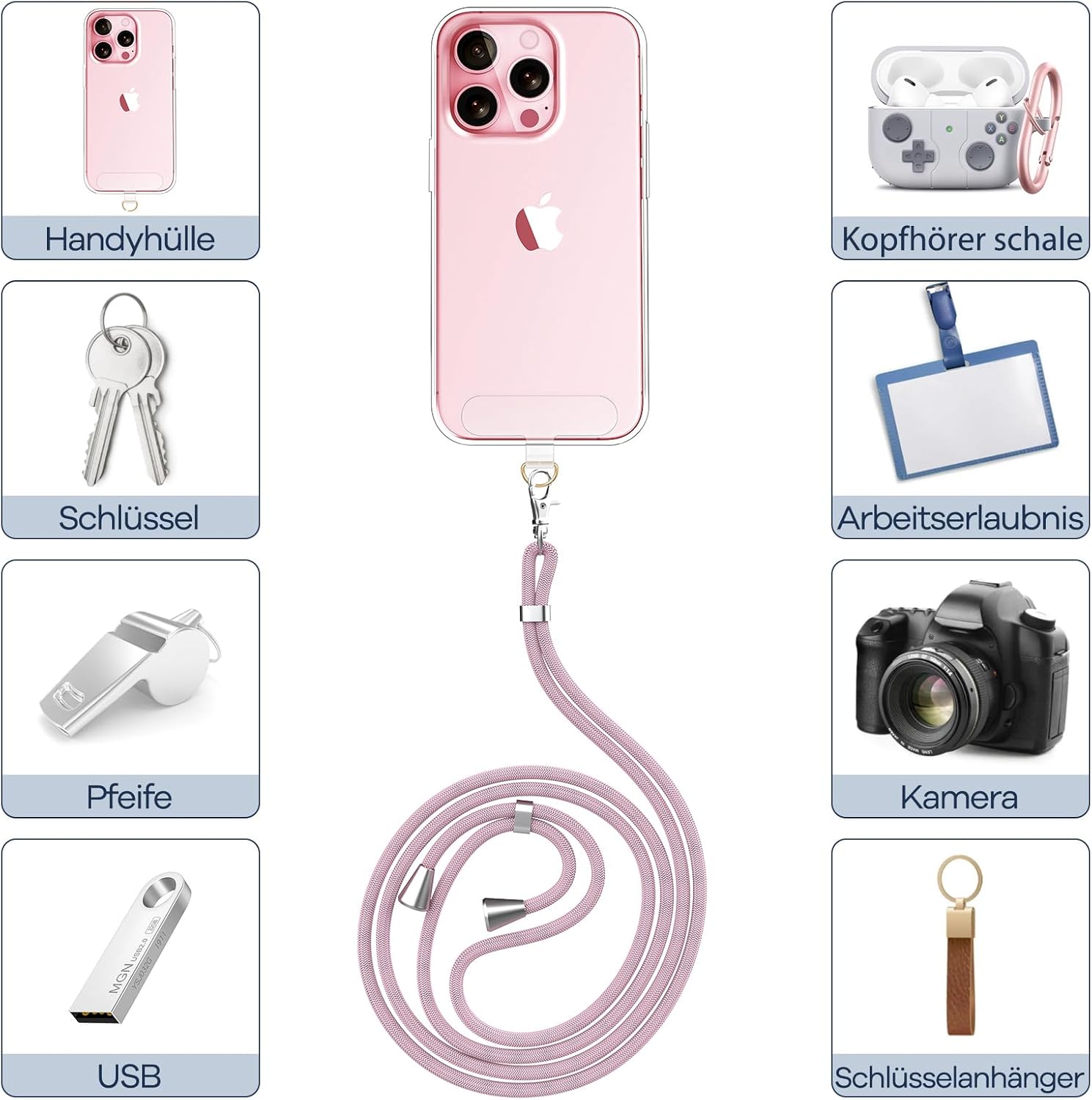 • Практична и стилна: тази универсална връзка за мобилен телефон през рамо може да се носи по четири начина: като връзка през рамо, като презрамка, като обикновена каишка и като каишка за китка. Връзката за мобилен телефон е съвместима с всички мобилни телефони, ключове, лични карти и др. Перфектна за всяка ситуация в живота, независимо дали е работа, свободно време, пазаруване, парти или спорт.
