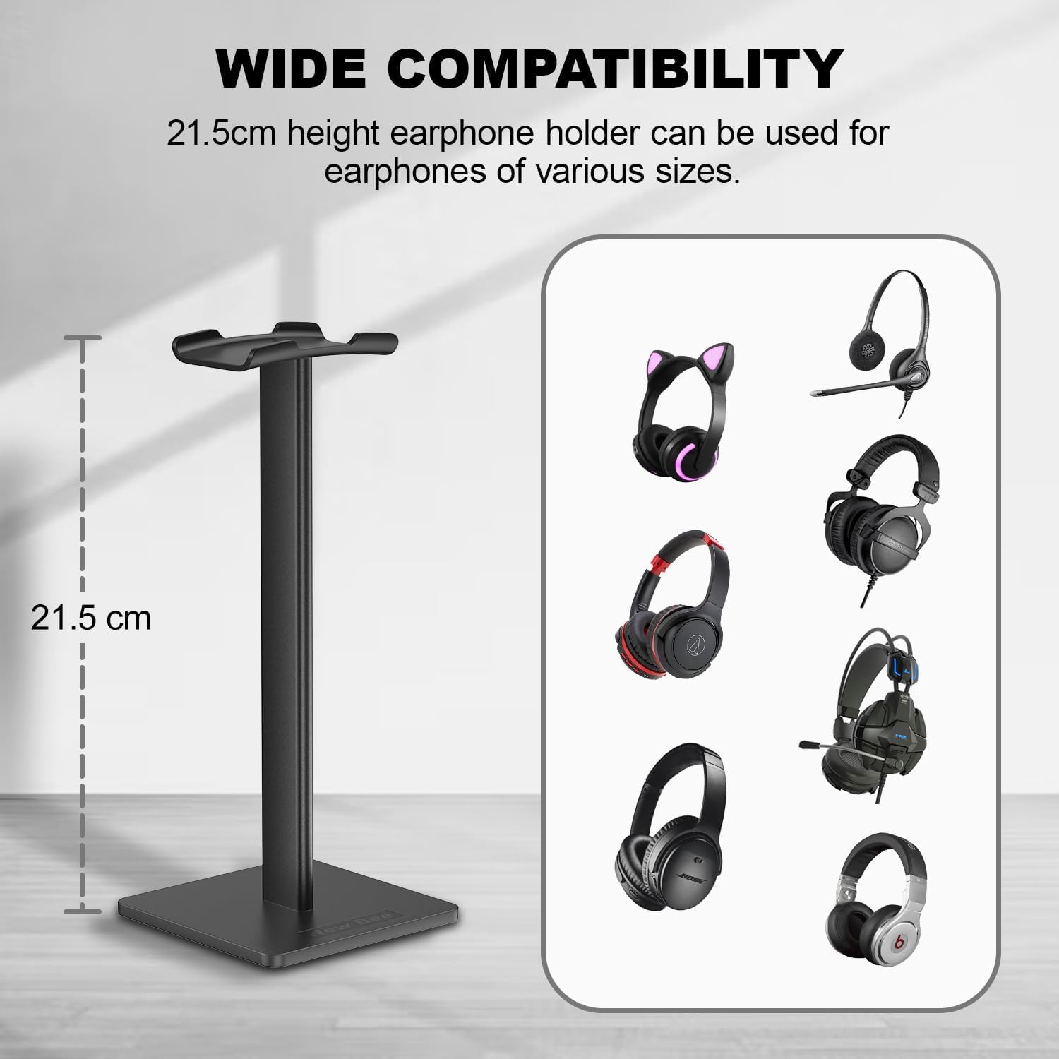 • ЗДРАВА И СИГУРНА Централната стойка от алуминиева сплав е здрава и тънка; гумените стабилизатори отдолу захващат повърхността и държат цялата стойка здраво закрепена, докато държат слушалките ви; Меката и защитна гума отгоре предотвратява надрасквания или повреди с омекотяването си. Висококачествен ABS и TPU гумен материал, безопасен и издръжлив.