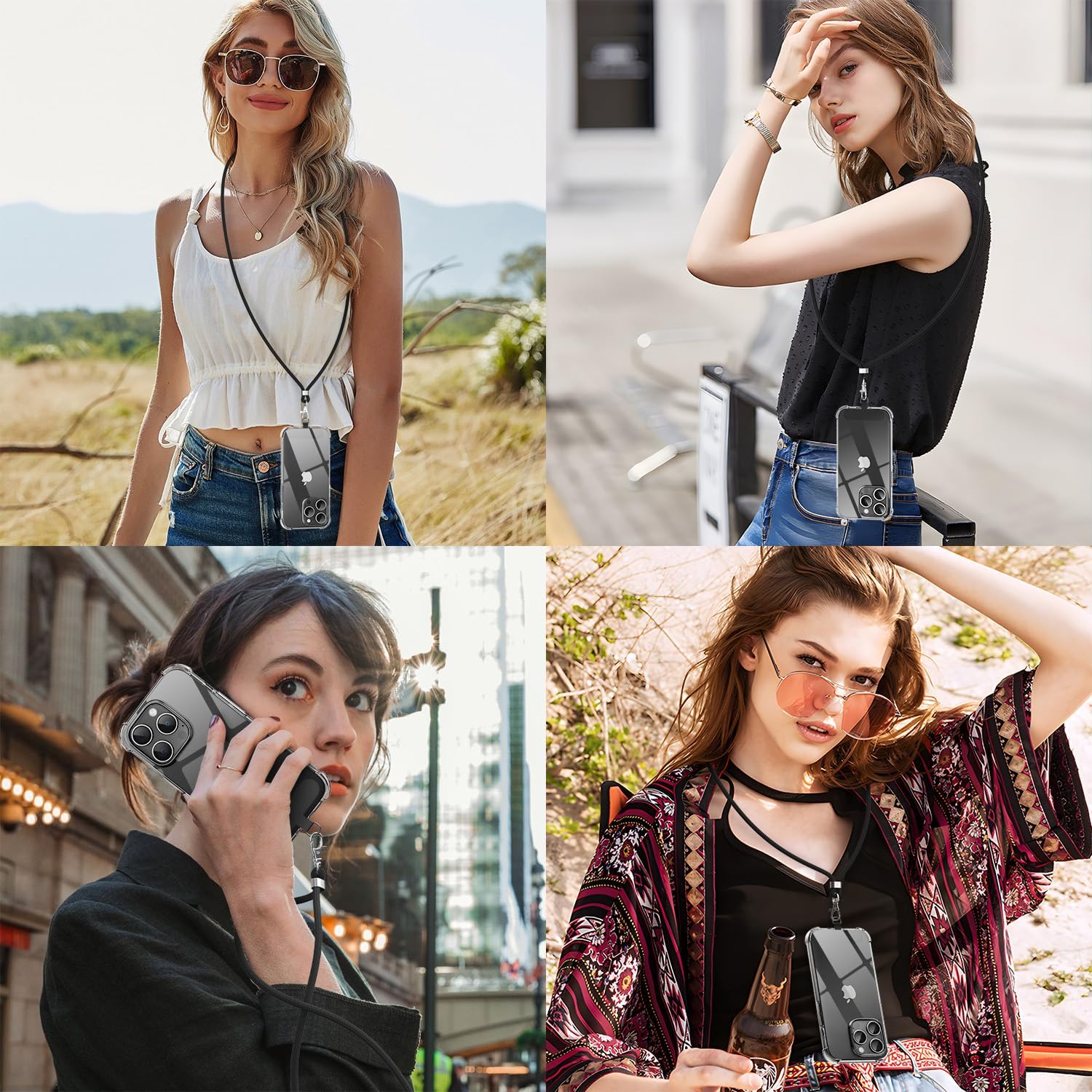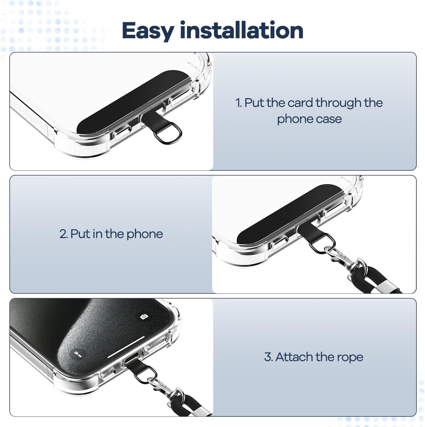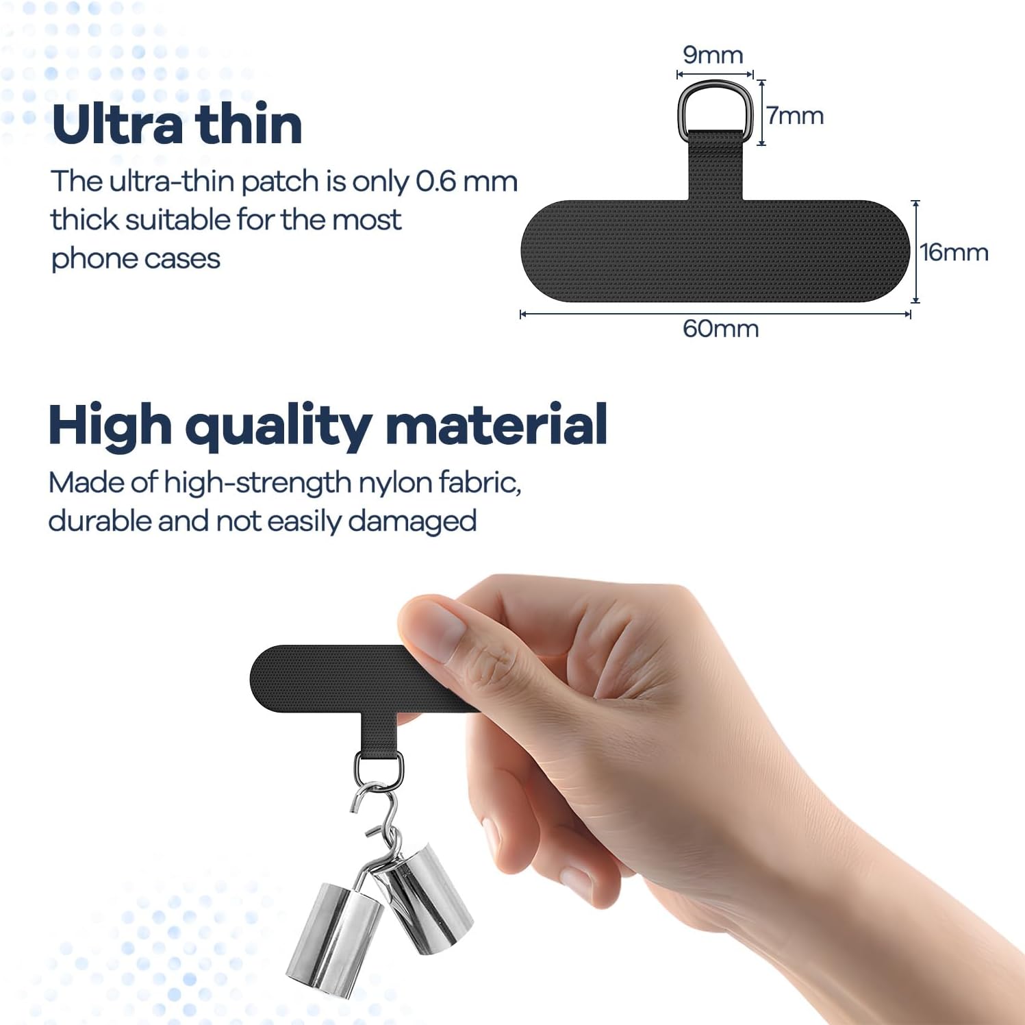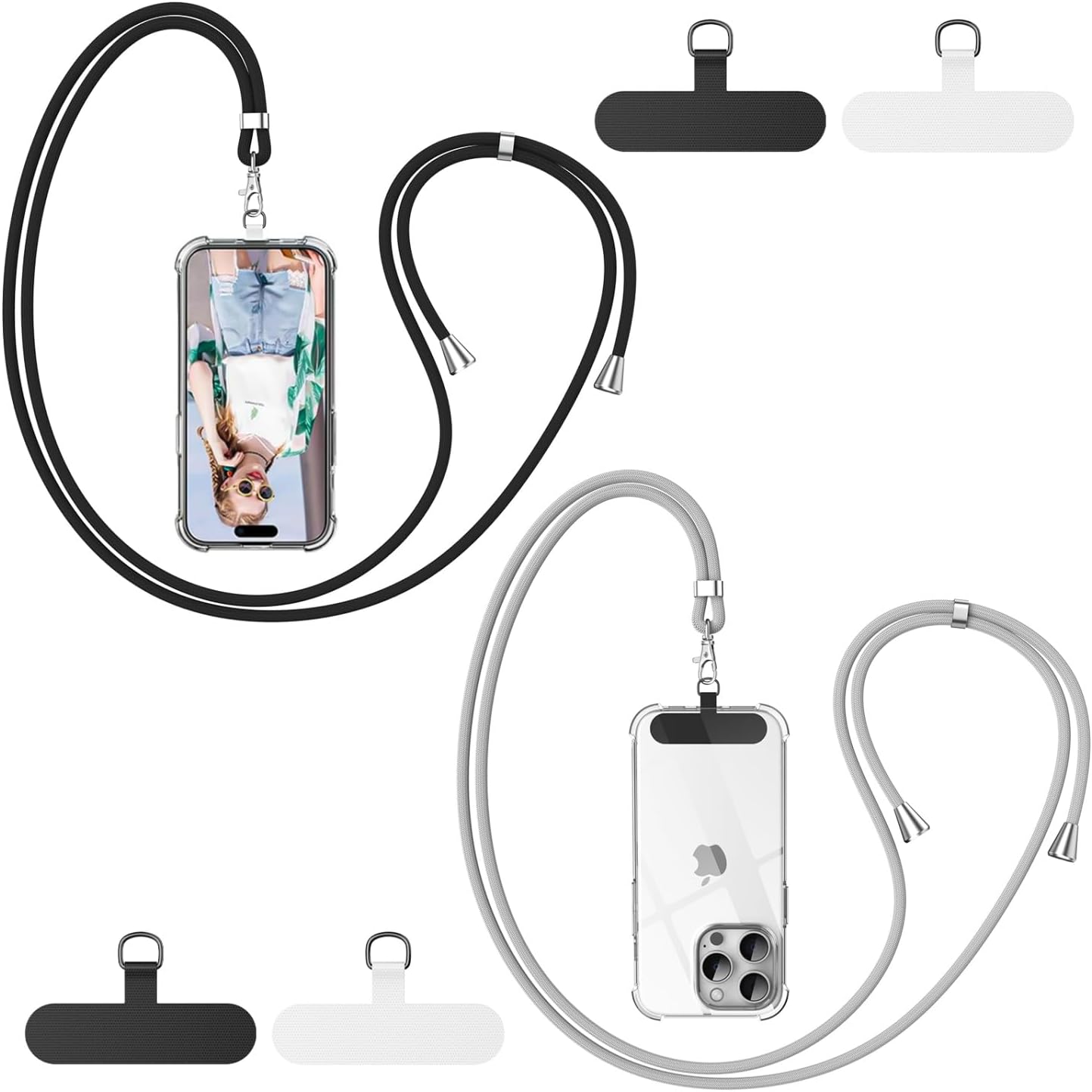 Универсална верижка за мобилен телефон, Каишка за мобилен телефон, Подходяща за всички смартфони, Комплект от 2 верижки за мобилен телефон и 4 универсални подложки, Каишка за мобилен телефон, която може да се комбинира с всеки калъф