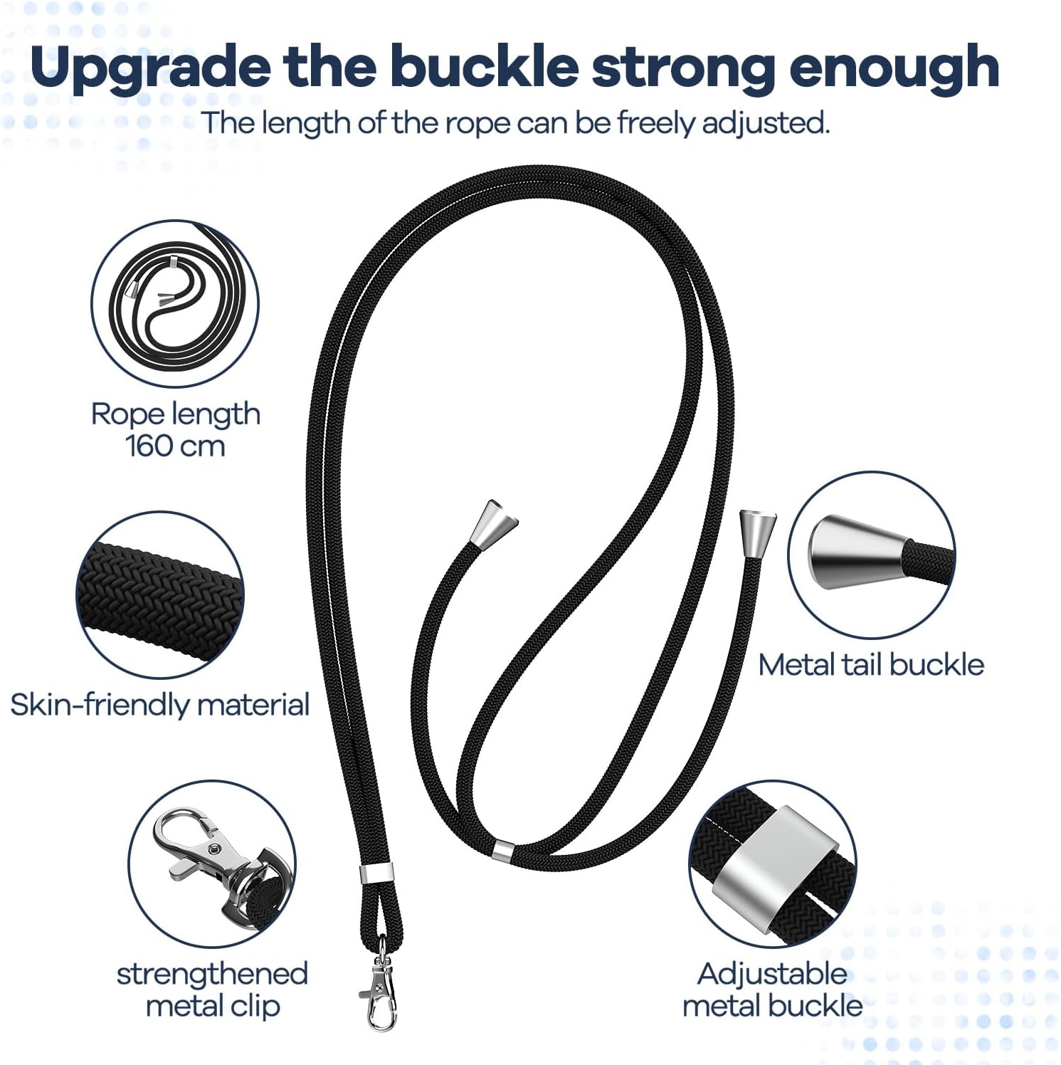 • Висококачествен материал: въжето е изтъкано от 100% полиестер, лентата е с дължина 1,6 метра и е регулируема, издръжлива и без мирис. Мекият полиестерен шнур осигурява комфорт на врата. Прибираща се дължина и подвижна катарама, можете да го използвате както желаете.