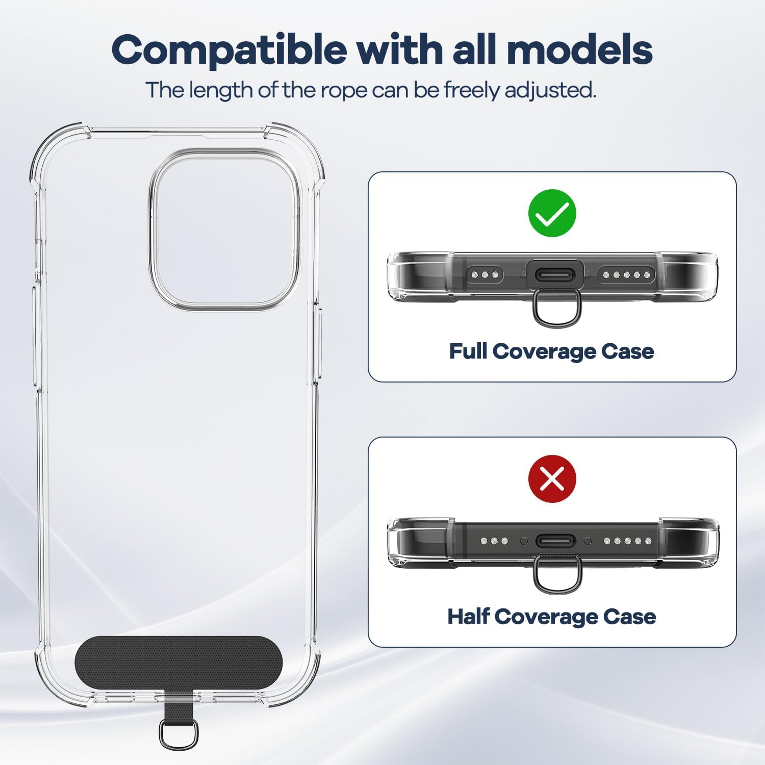 • Подходящ за всички смартфони: универсална каишка за мобилен телефон за всички мобилни телефони с пълен калъф от 4 до 6,7 инча. Включително за iPhone/ Samsung Galaxy/ Google/ LG/ Huawei/ Xiaomi/ и др. Забележка: Не се поддържат калъфи за телефони с половин капак.